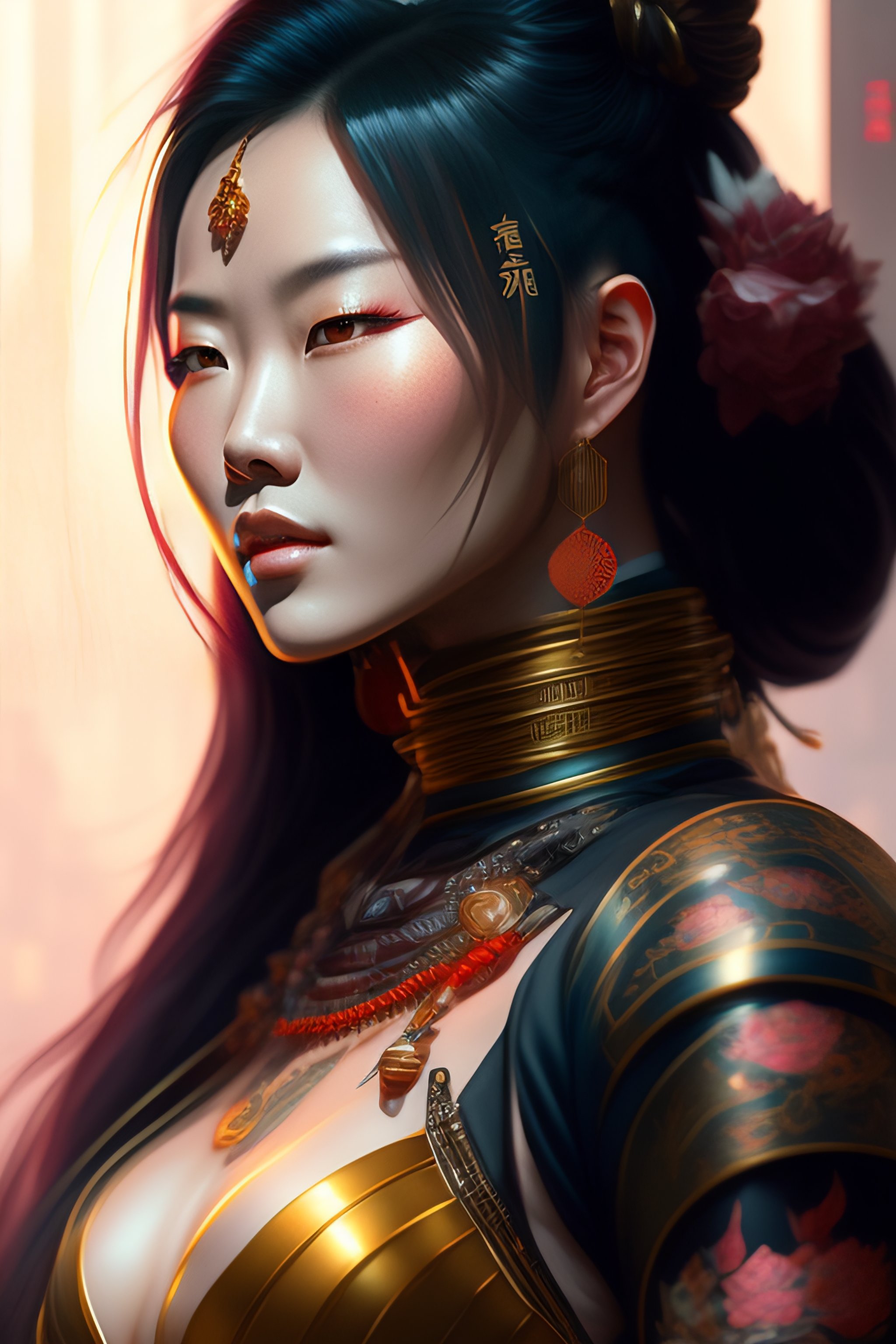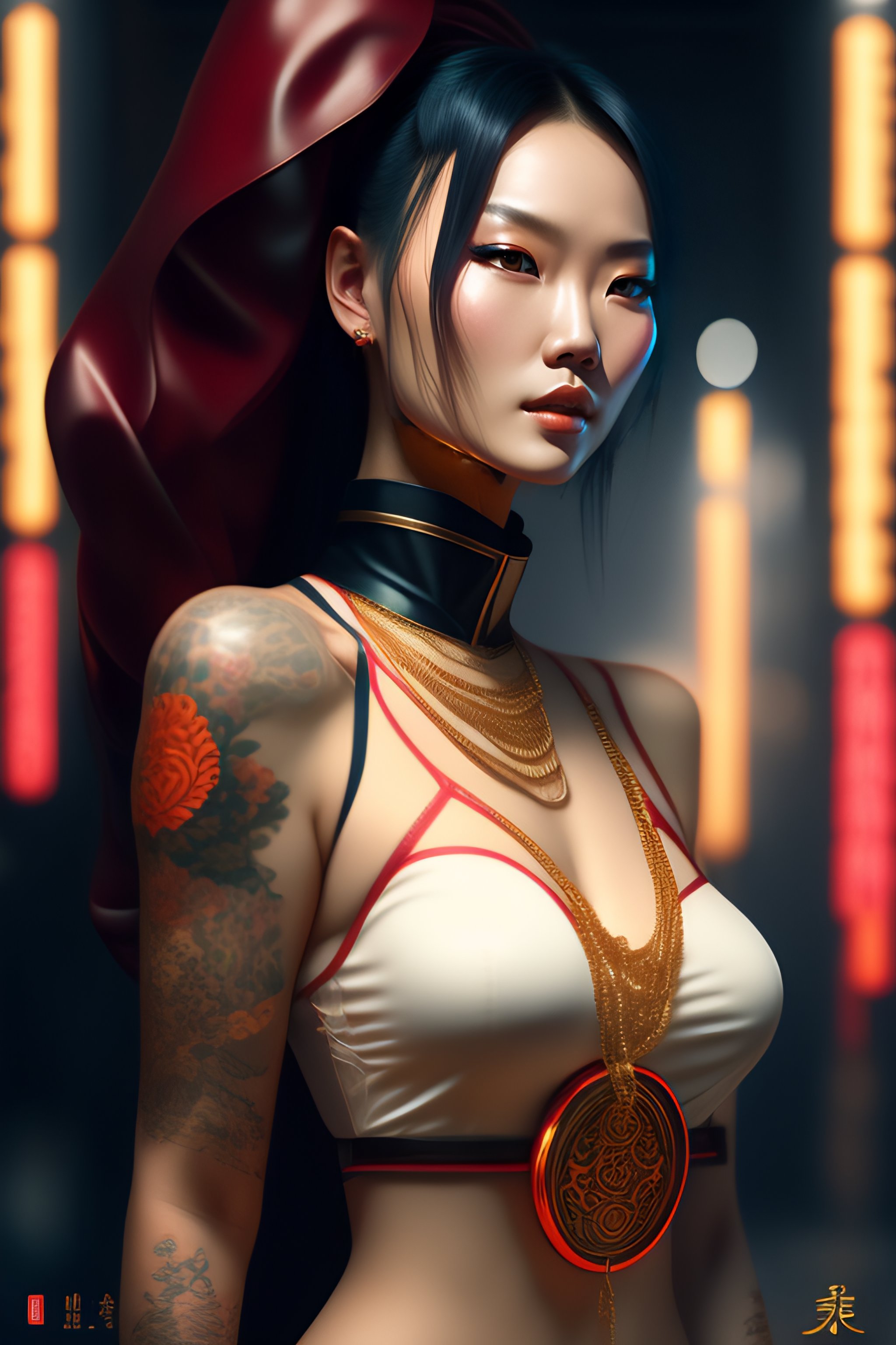 Portrait of a chinese cyberpunk machine, machine face, arms, upper half portrait, criminal, mafia, tattoos, small clothes, asian, fine china, wuxia, traditional chinese art intricate intense elegant 京 剧 highly detailed digital painting artstation concept art smooth sharp focus illustration, art by artgerm and greg rutkowski alphonse mucha 8 k
