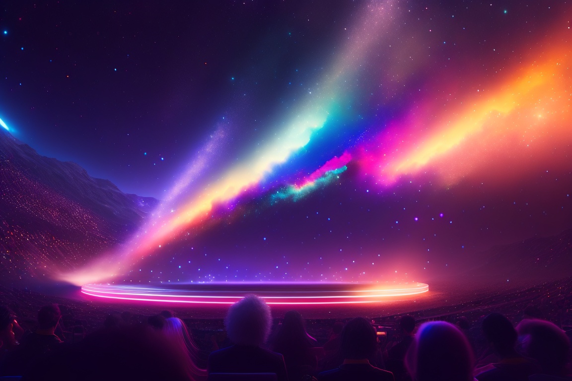 Illustrate the dynamic visual effects that accompany the music playback. show the particle systems, shimmering stardust, and color shifts that enhance the immersive experience. capture the moments where the visuals and music come together in perfect harmony, creating a mesmerizing audiovisual spectacle.