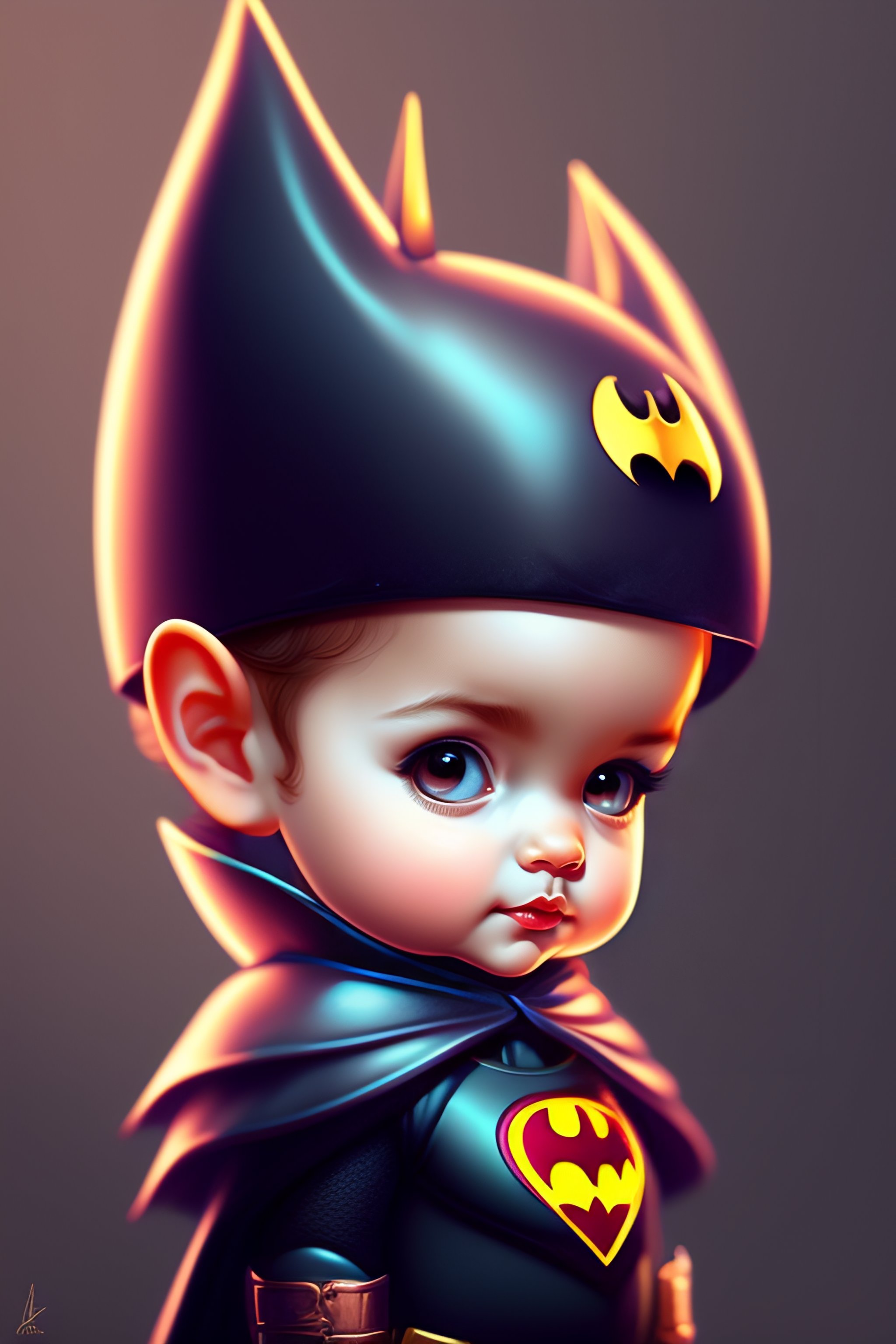 Cute and adorable cartoon batman baby, girl, fantasy, dreamlike, surrealism, super cute, trending on artstation