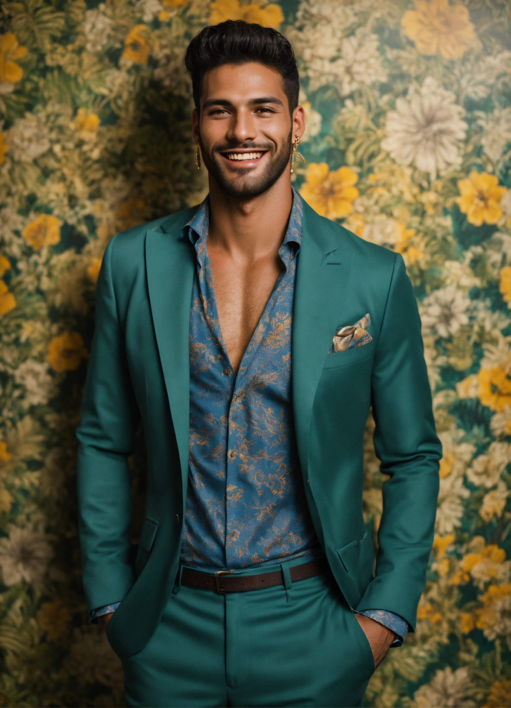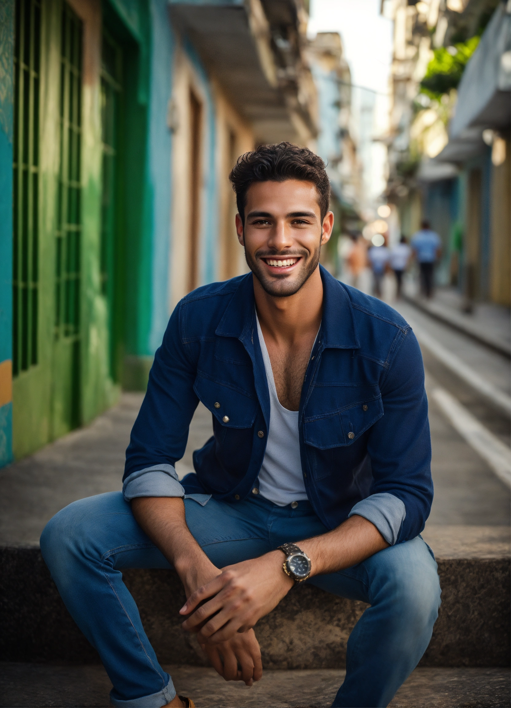 Photo essay of very happy handsome male brazilian model, forties vintage background in rio de janeiro, professional photo, 8k, ultra detailed