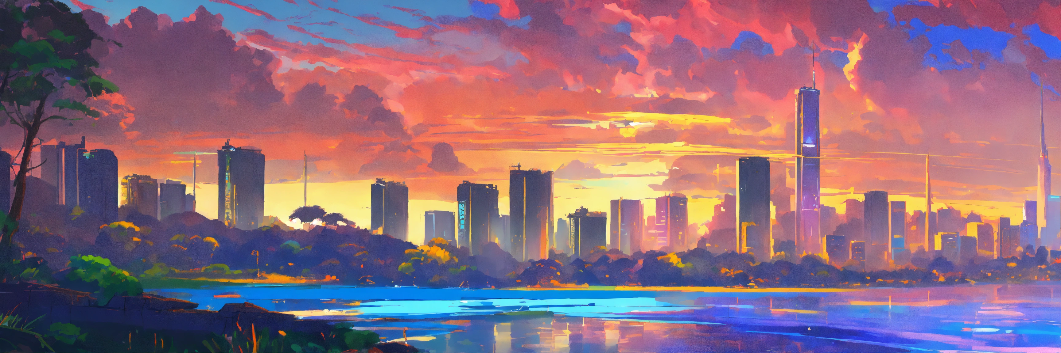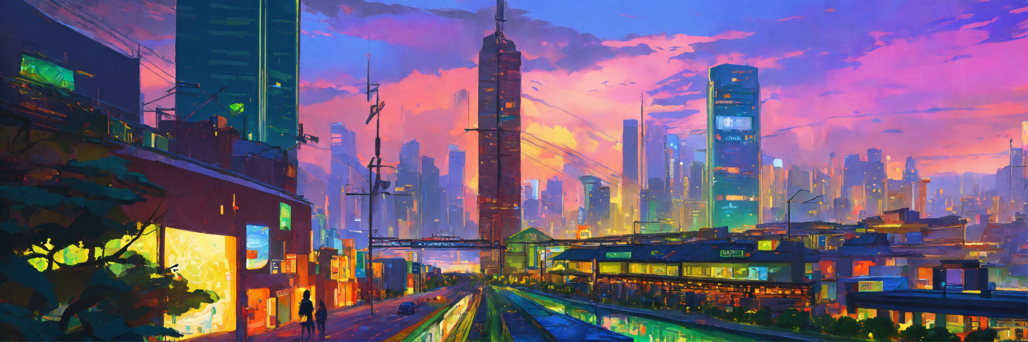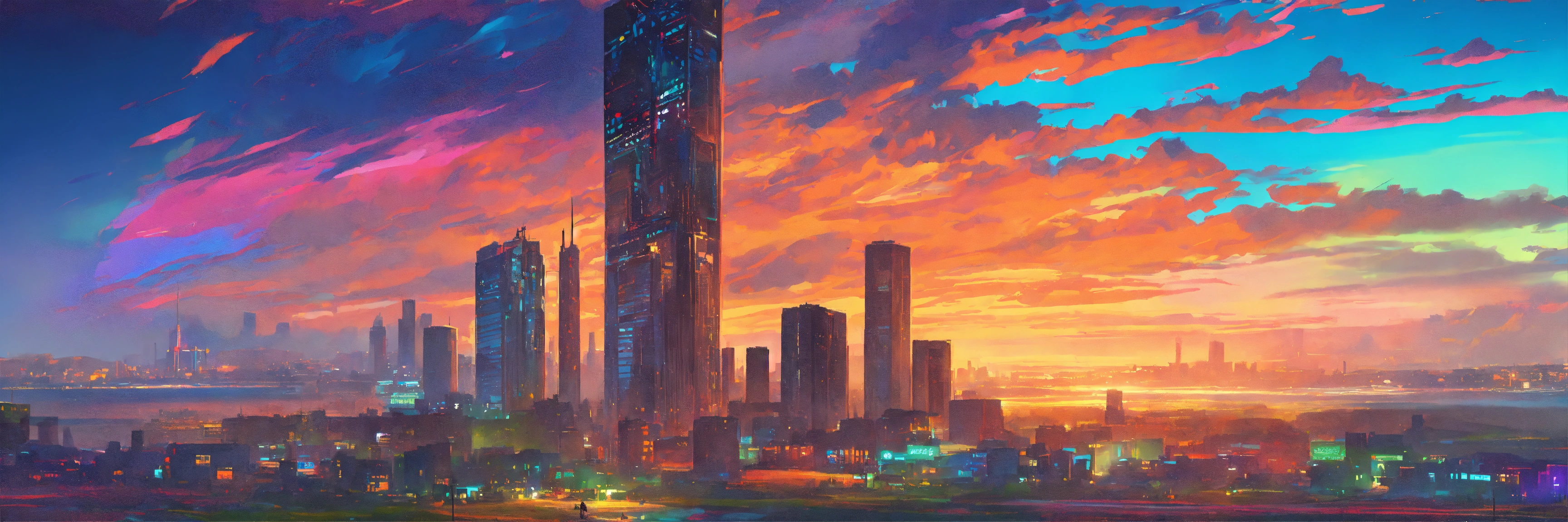2023, summer, african city, in a futurist city, and wild rending pixiv fanbox, acrylic palette knife, 4k, vibrant colors, devinart, trending on artstation