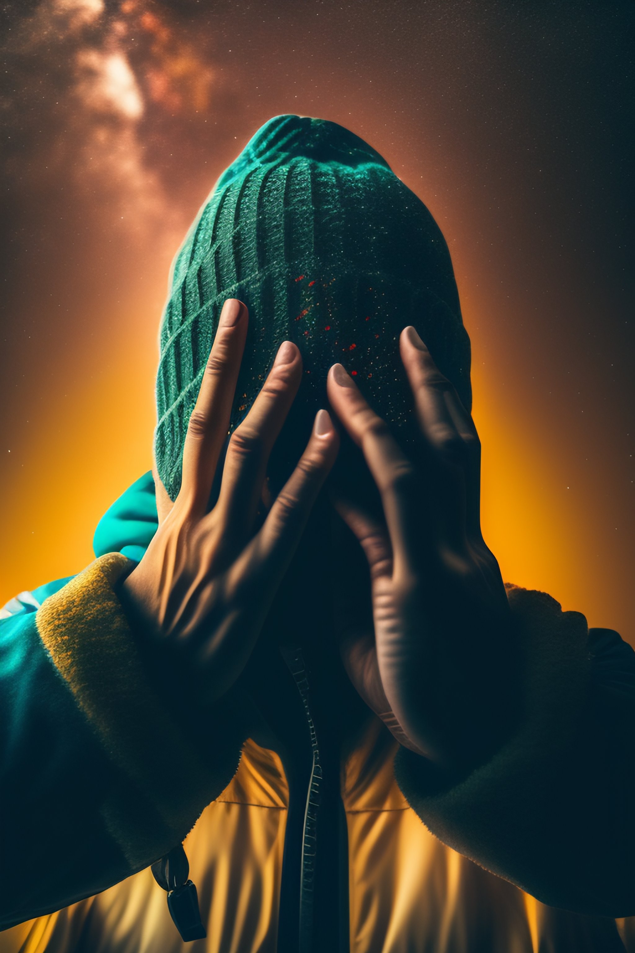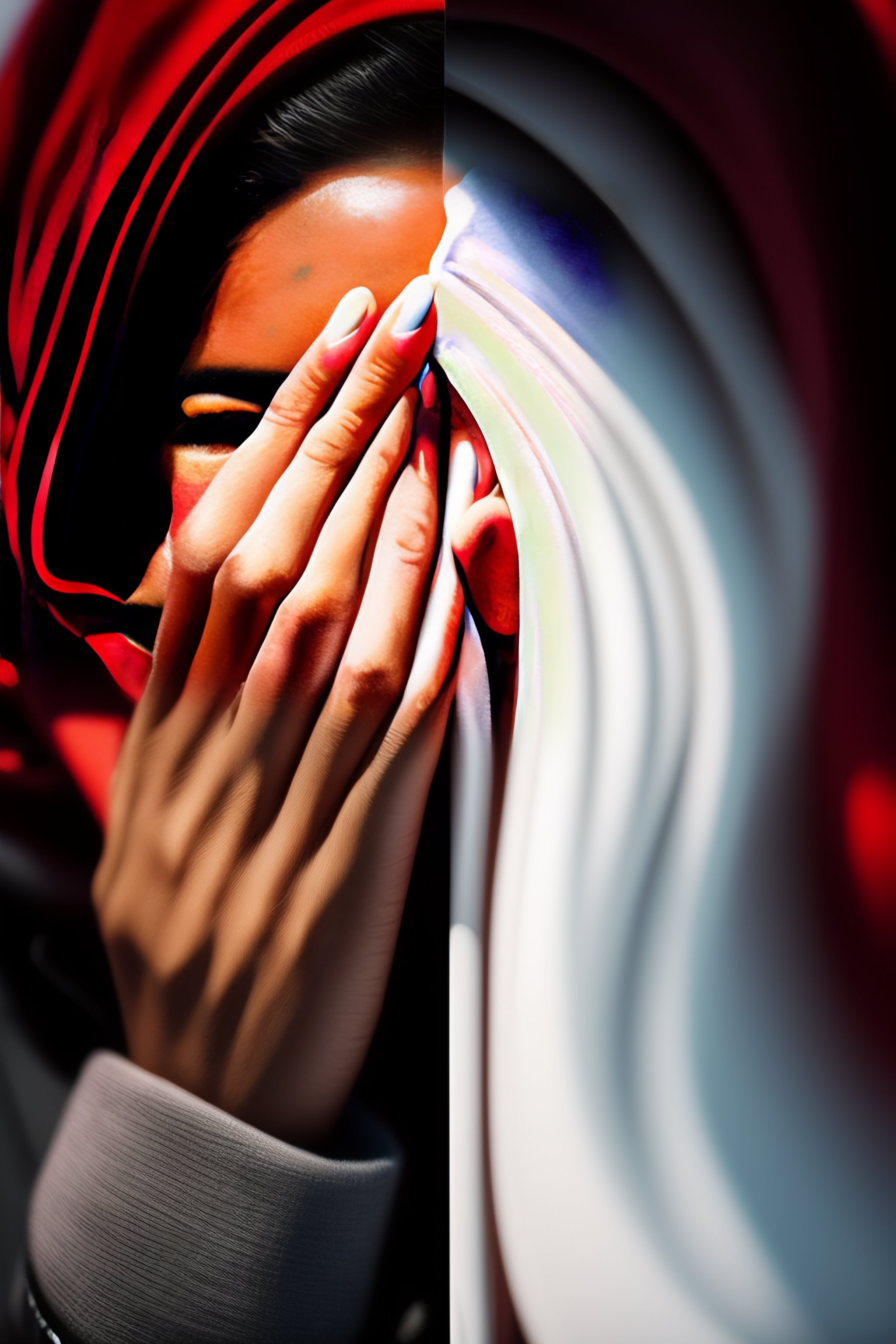 A person who conceals their face with their hand