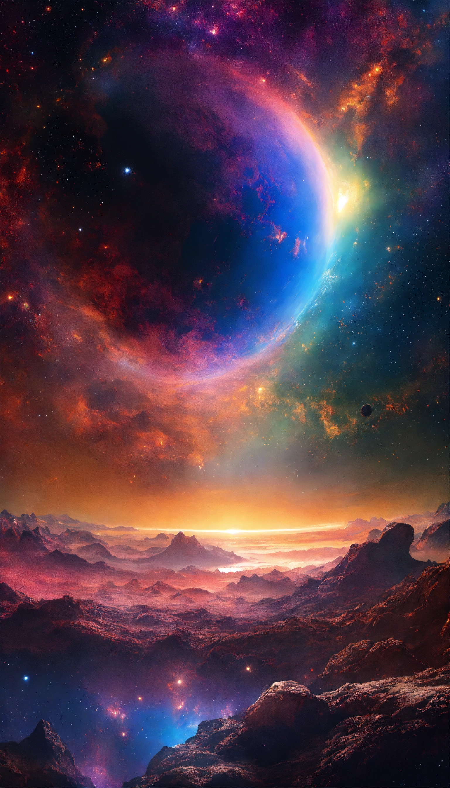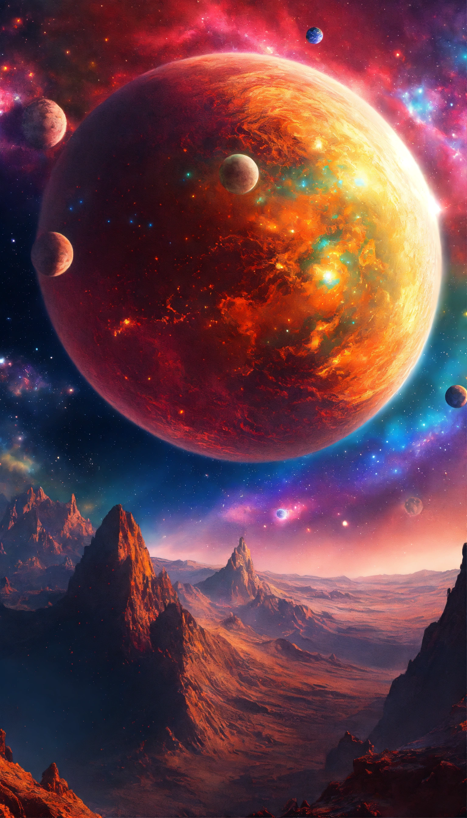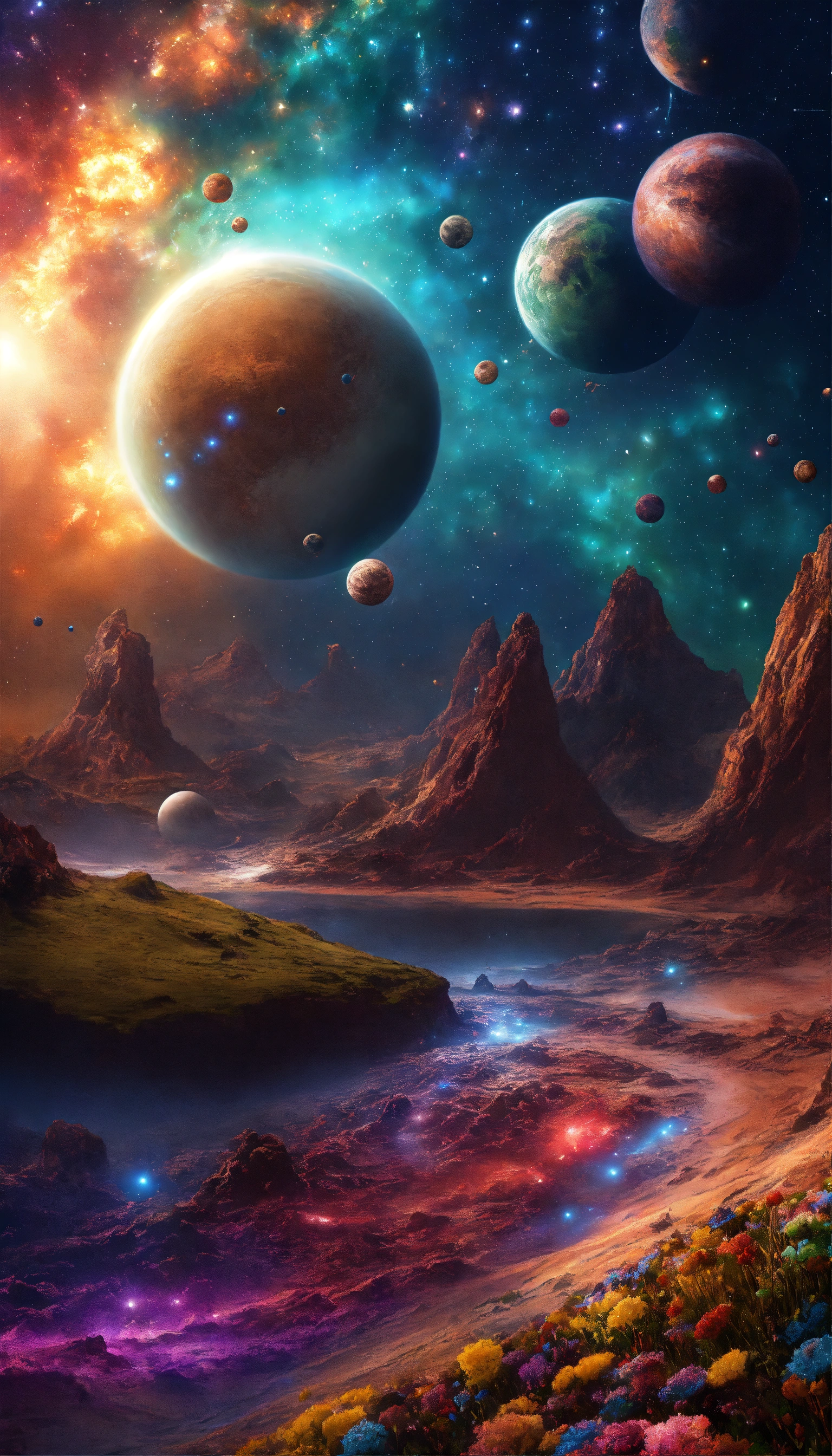 Crea una imagen de un vasto universo lleno de innumerables galaxias gemelas, con luana destacando en el fondo. muestra la diversidad de planetas en luana, con colores vibrantes y formas inusuales. destaca un planeta similar a la tierra llamado "duceterra" en medio de la galaxia.