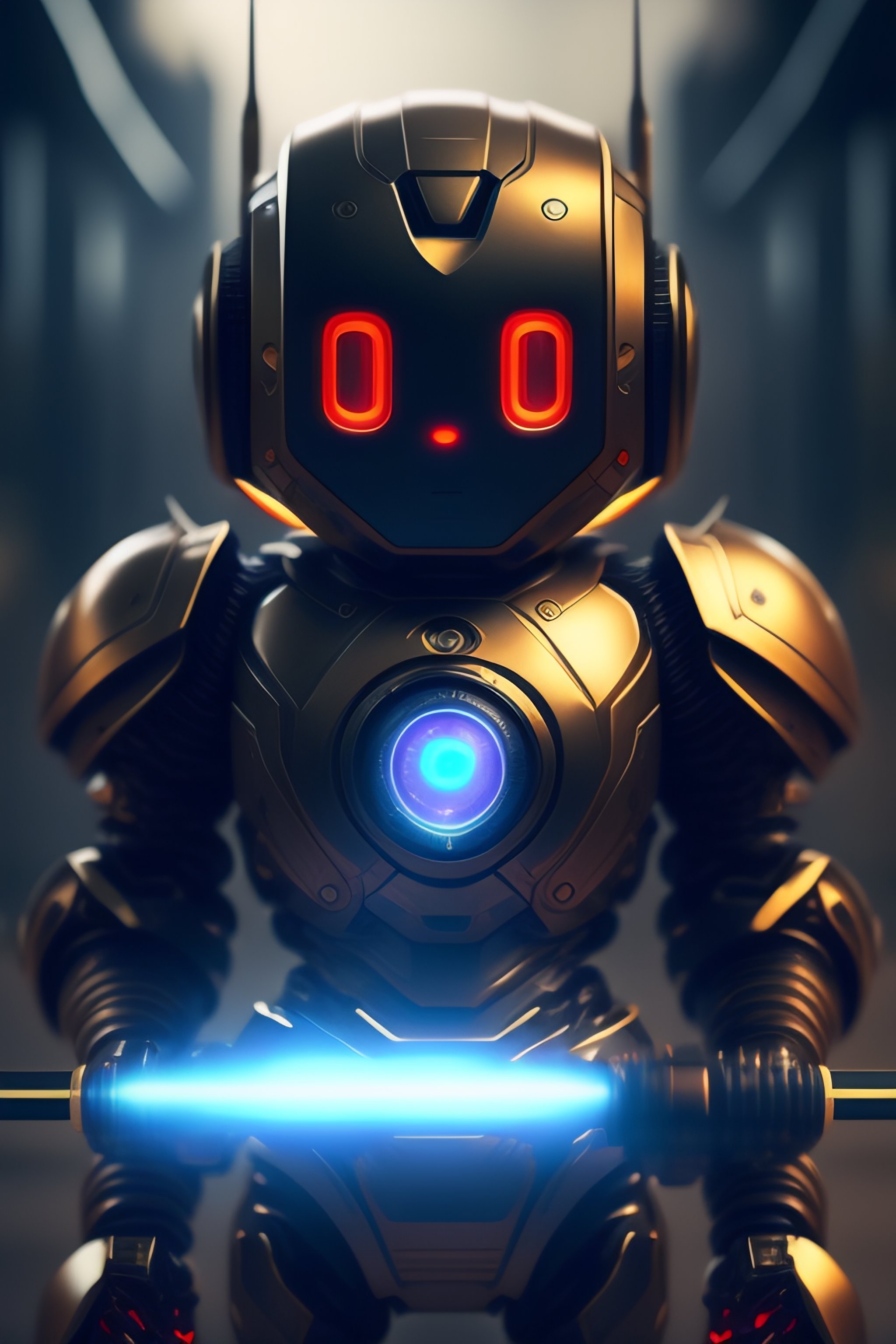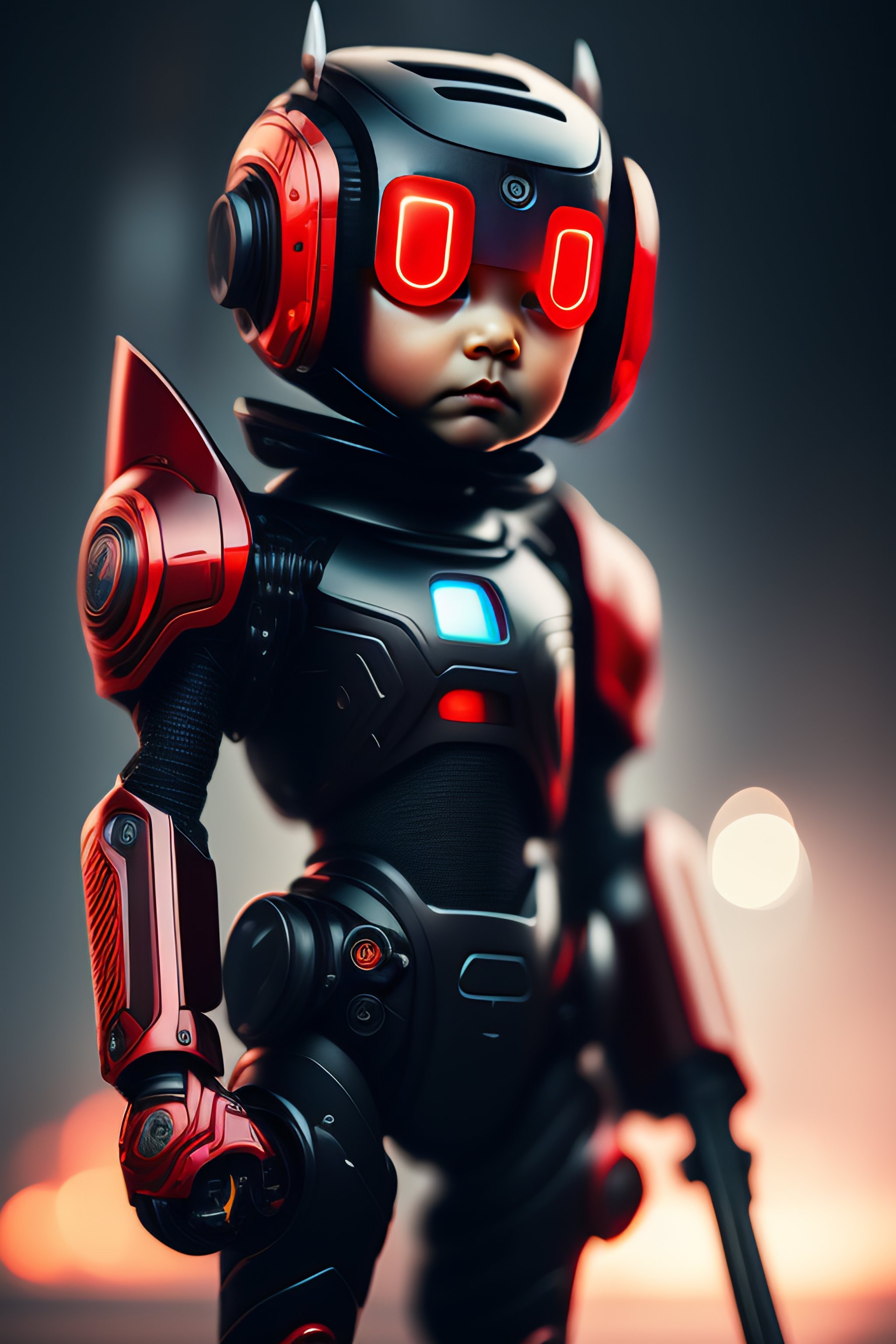 Robot boy holding weapon with a red eyes fully realistic 4k