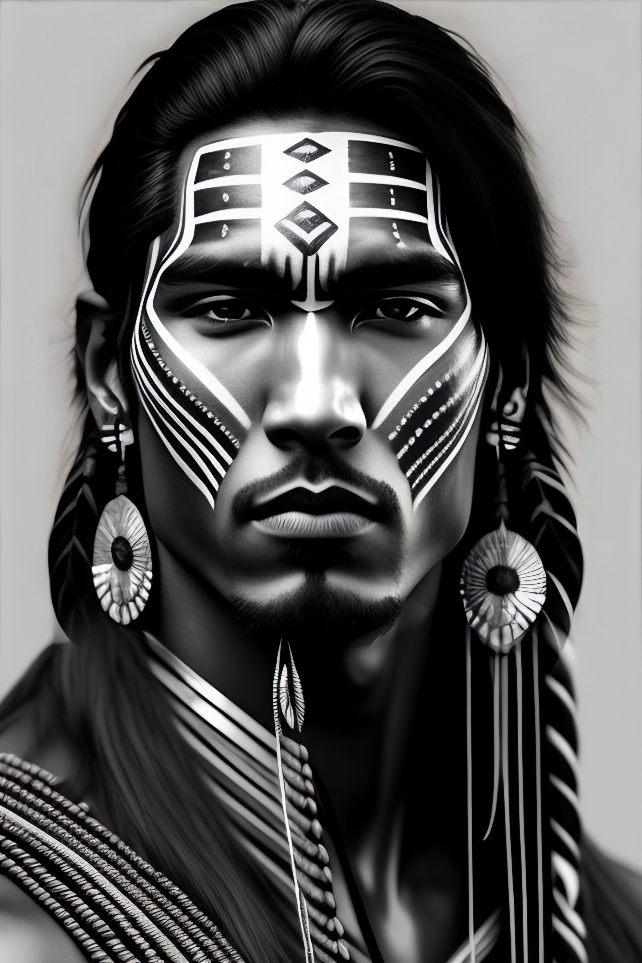 North american indian man in war paint !!! portrait based on doodles, scribbled lines, sketch by liz y ahmet, monochrome, concept art, millions lines, white background, ultra detailed portrait, 4k resolution”