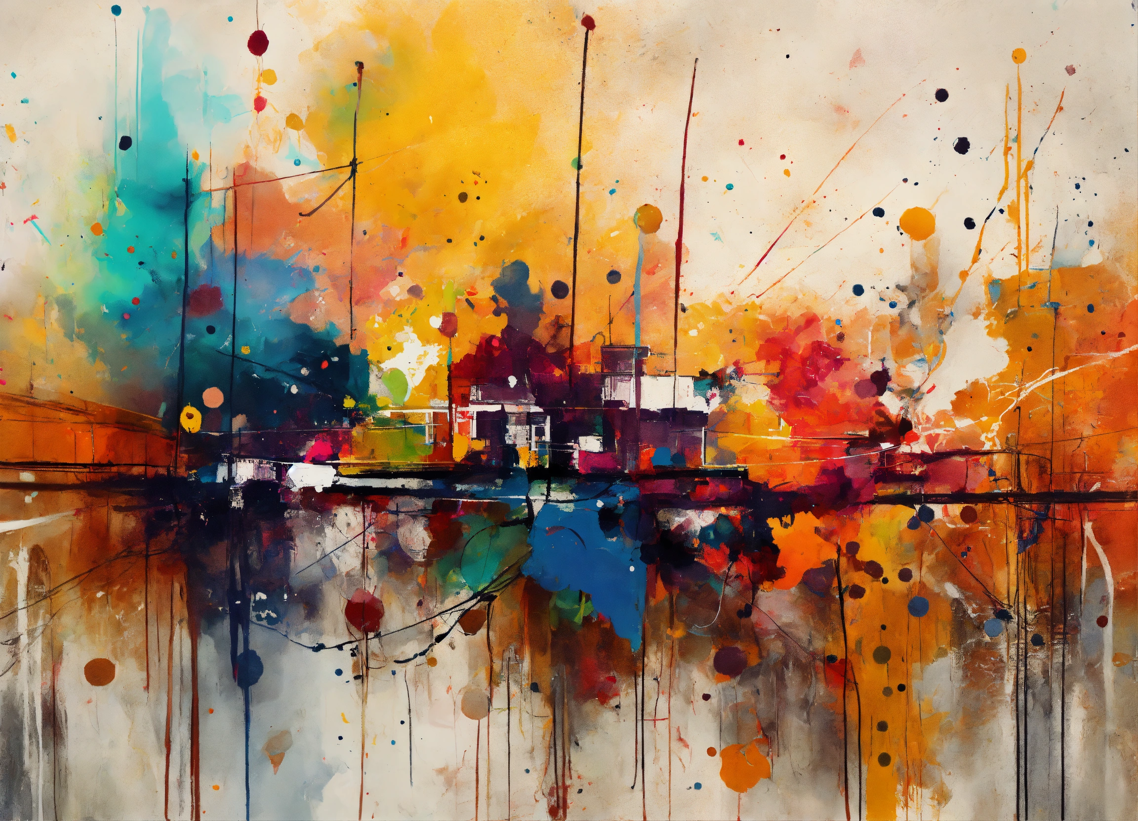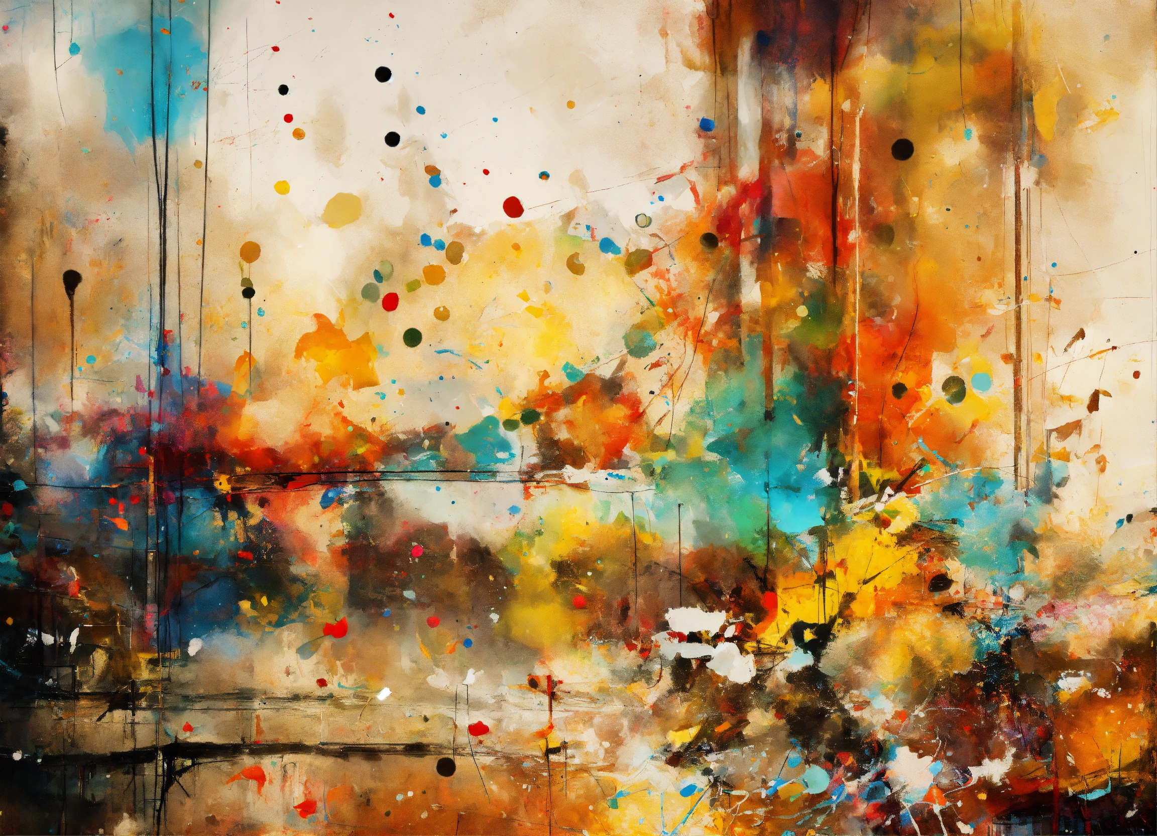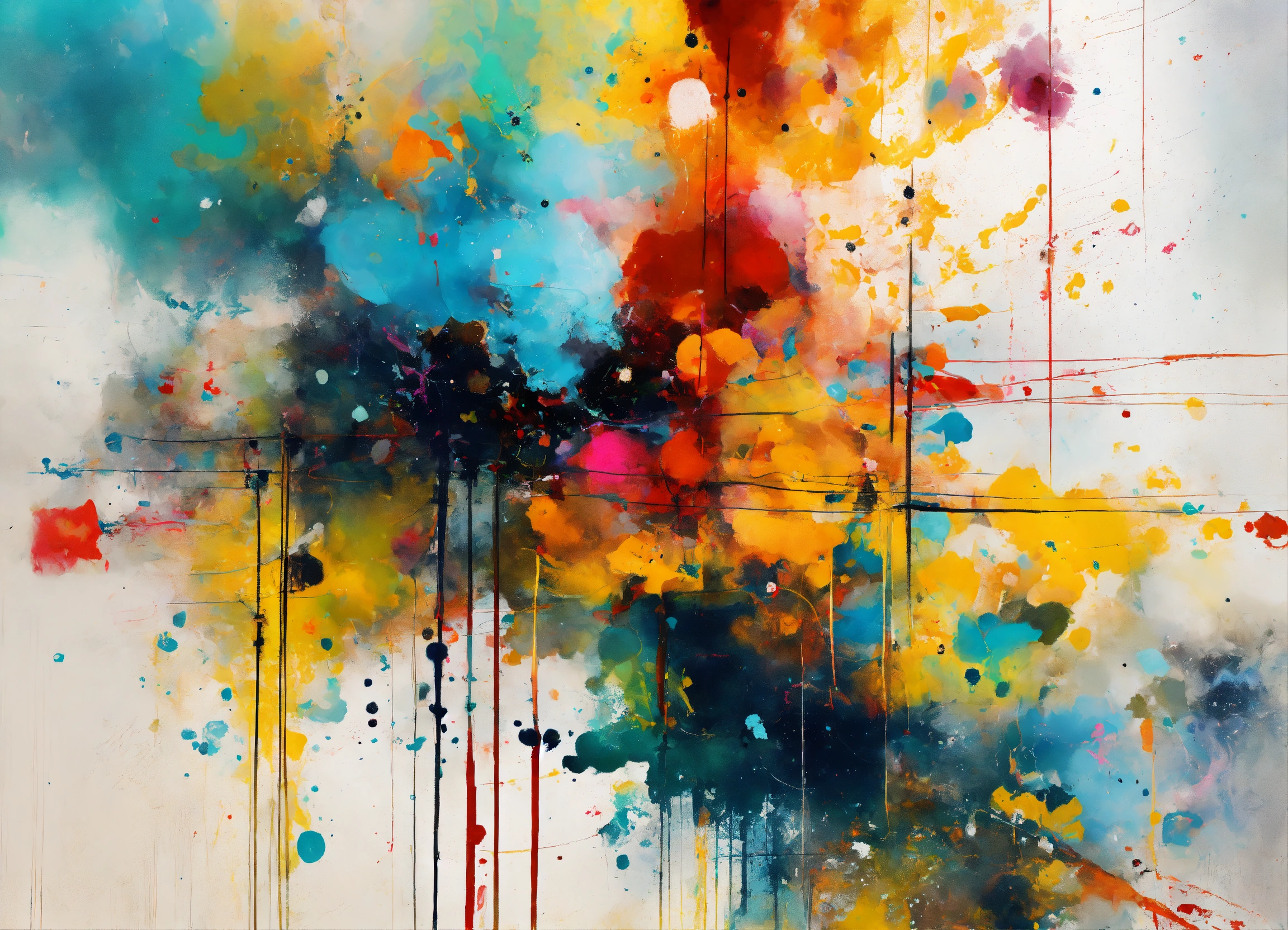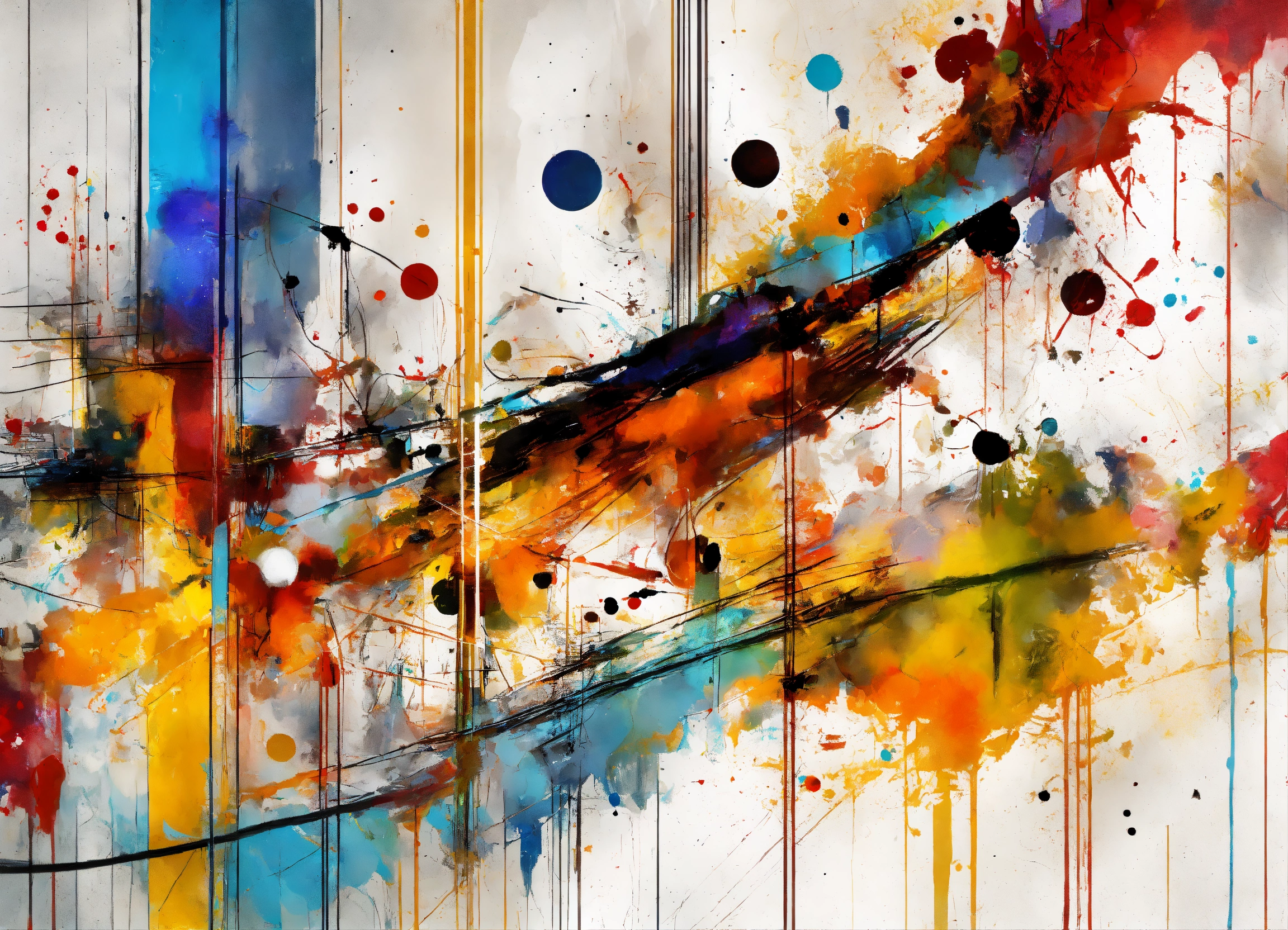 Street art on canvas, digitalmixed media, colored, painting splashes and abstract lines, white color background, layered, abstract elements