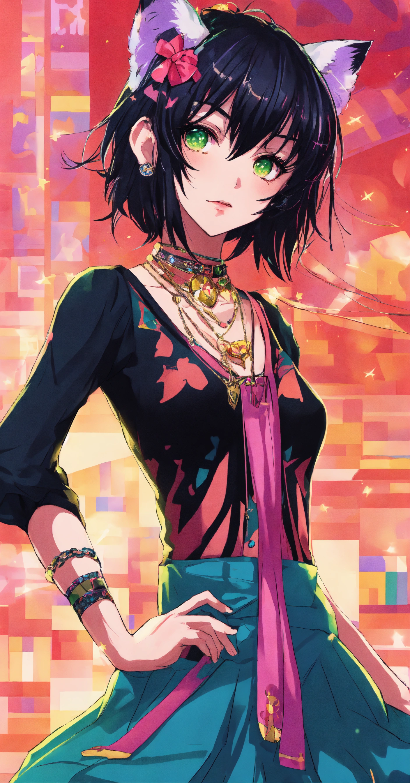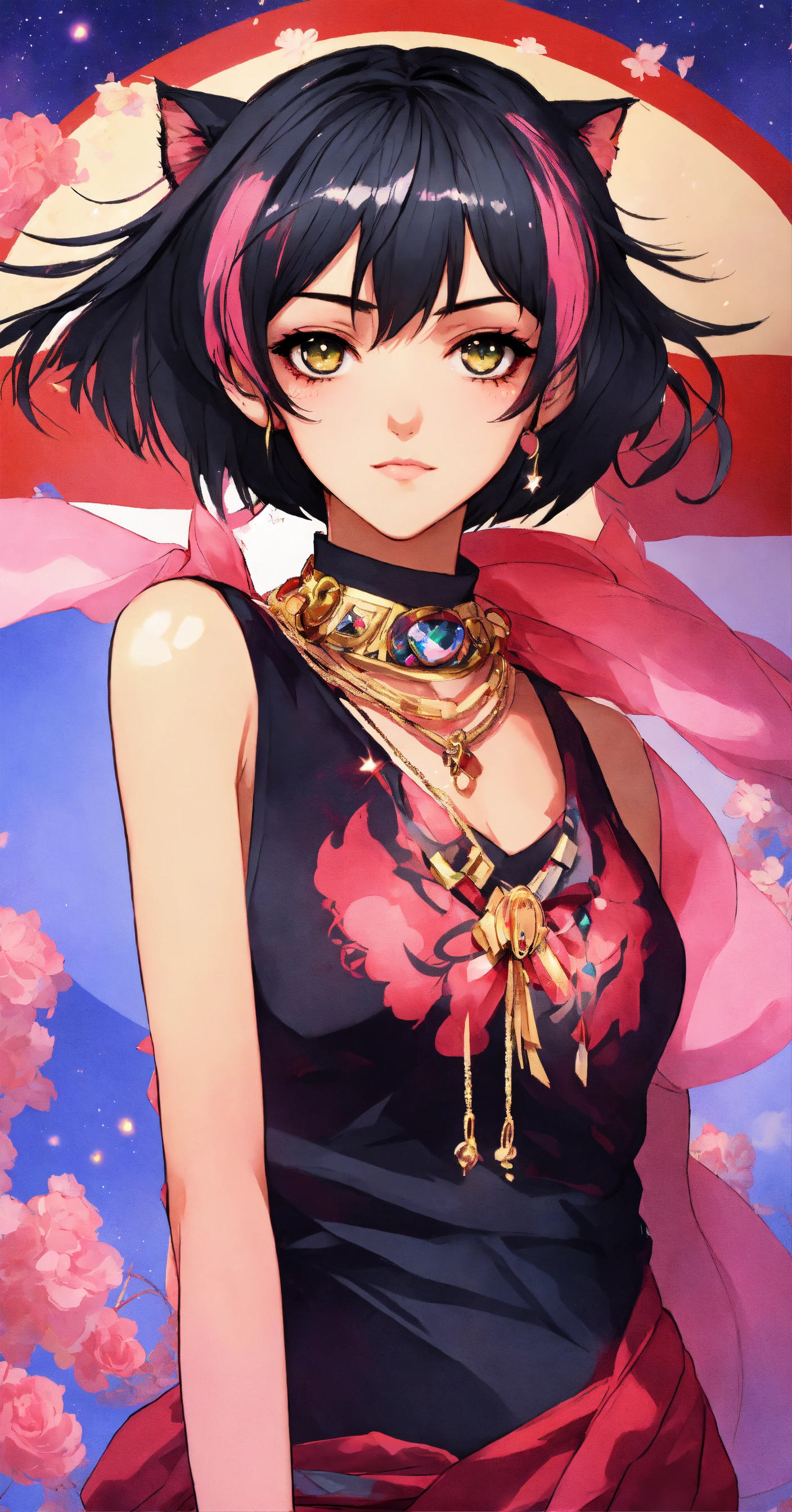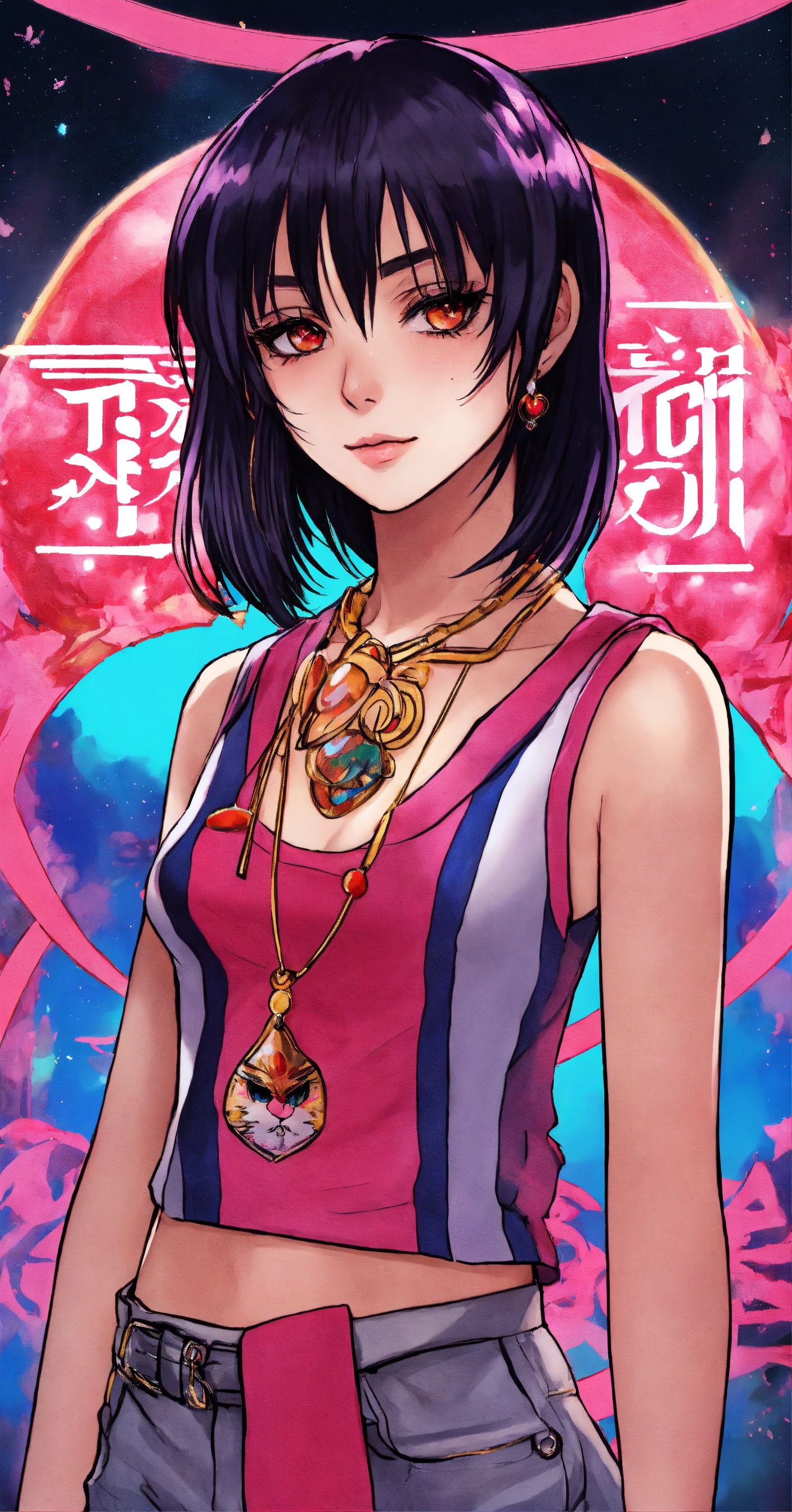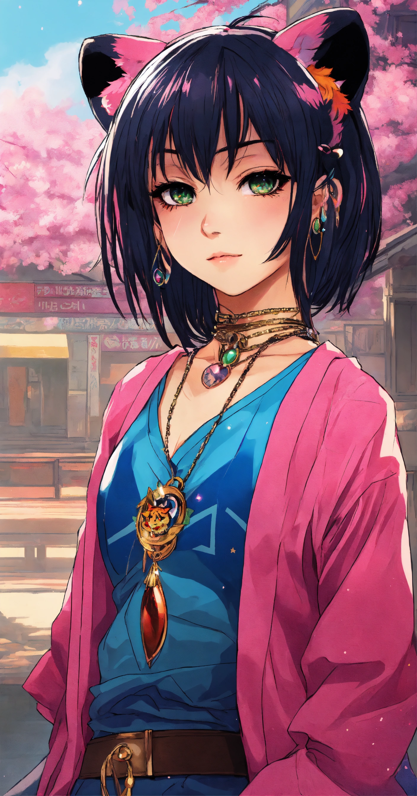 A magical transgender girl with emo cut black hair, bangs that completely hide the left eye, in magic girl tiger mode, with a necklace in the color of the transgender flag on her neck, in the style of the old manga "tokyo mew mew"