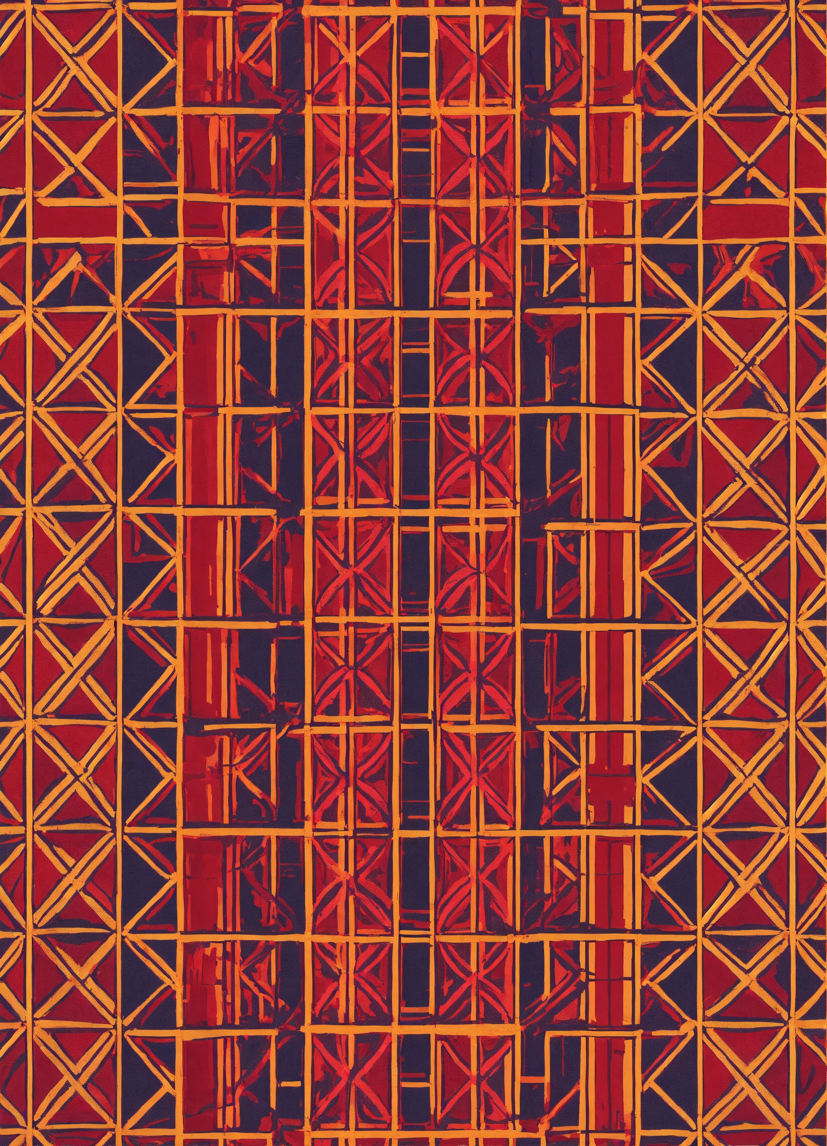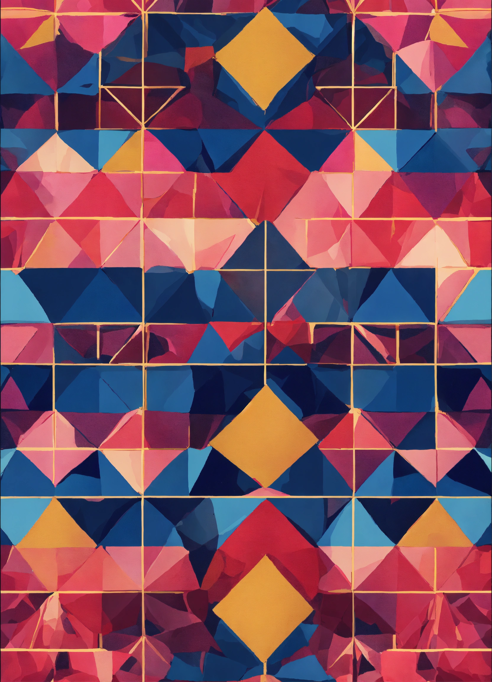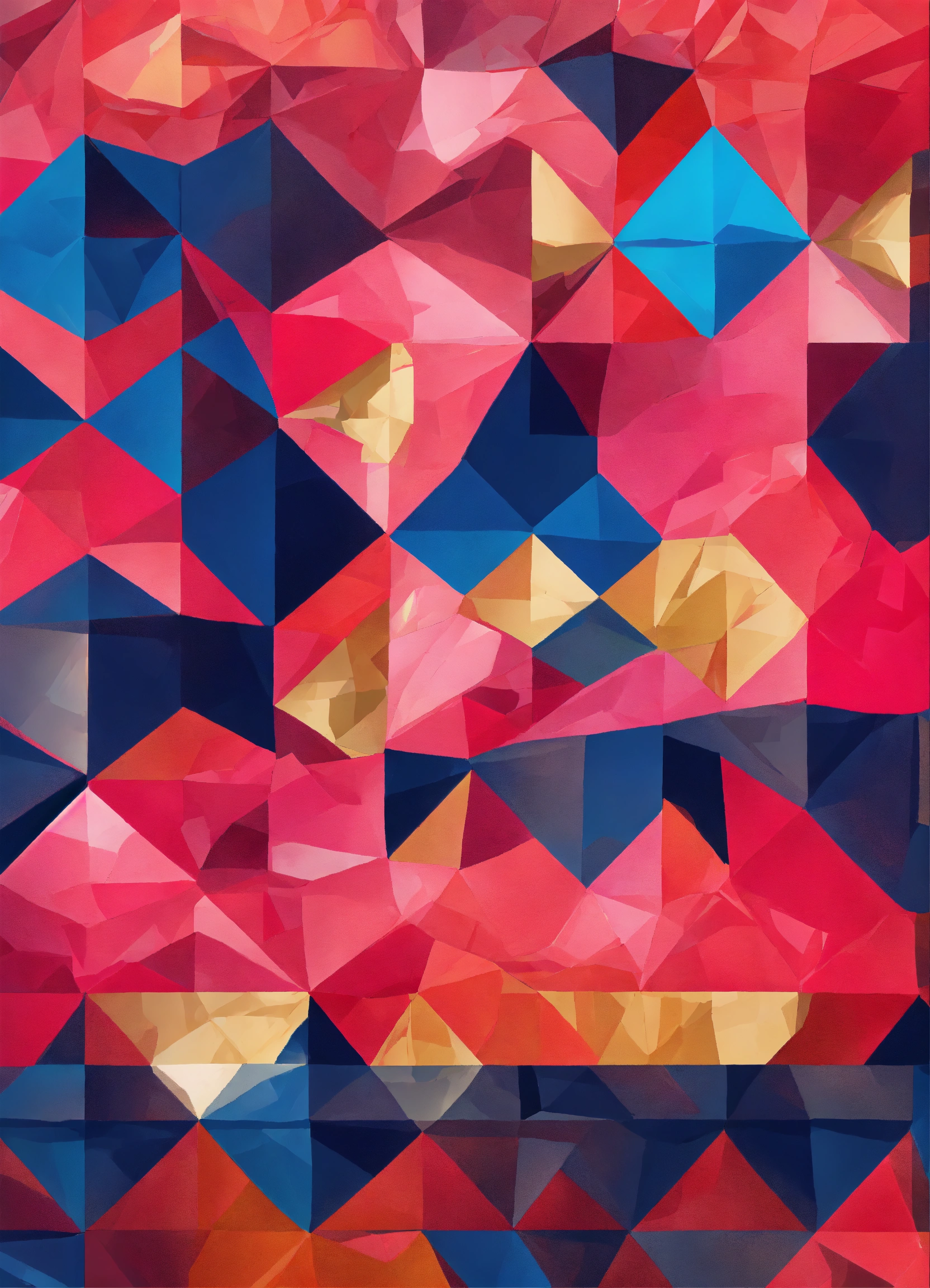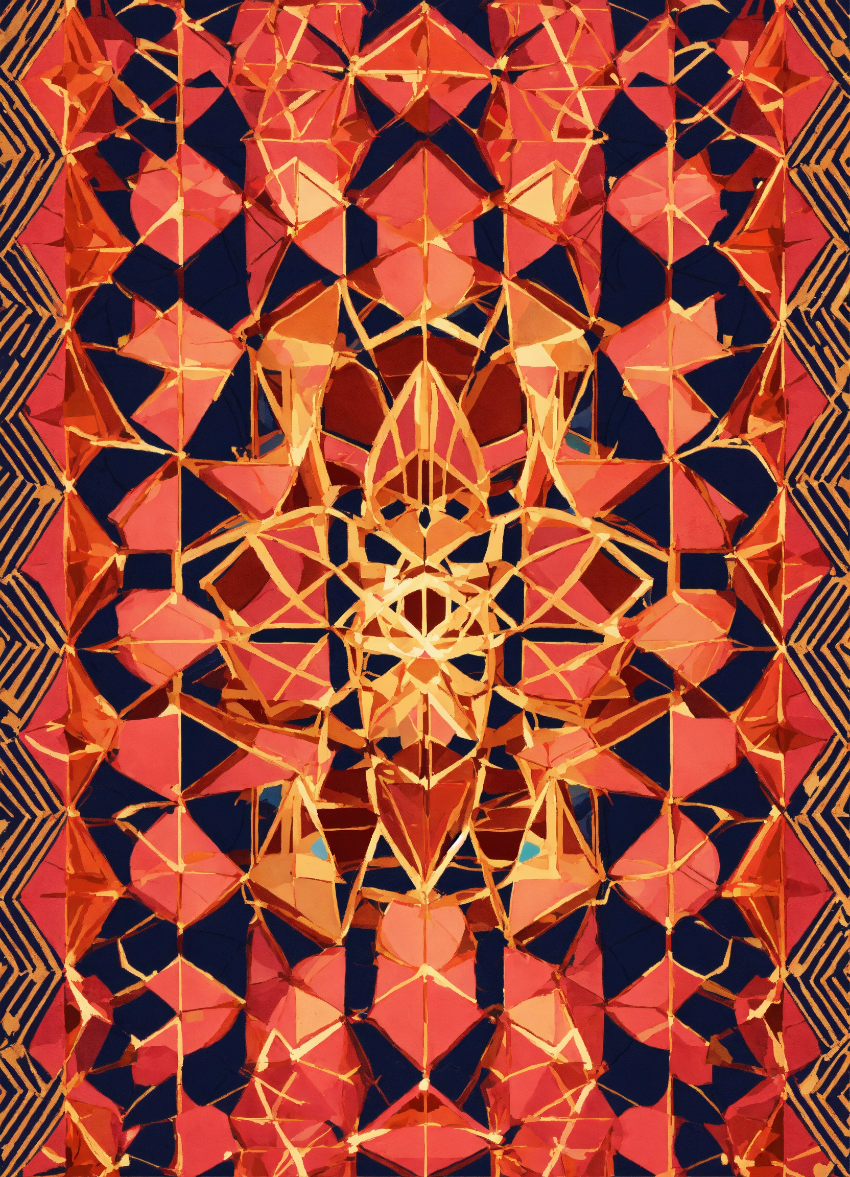 Abstract geometric vector pattern in industrial style. food symbol. garden of eden. background illustration graphic design. bright pink (#e8546a), indian red (#e85454), oxford blue(#001f3f), gold (#ffd700)