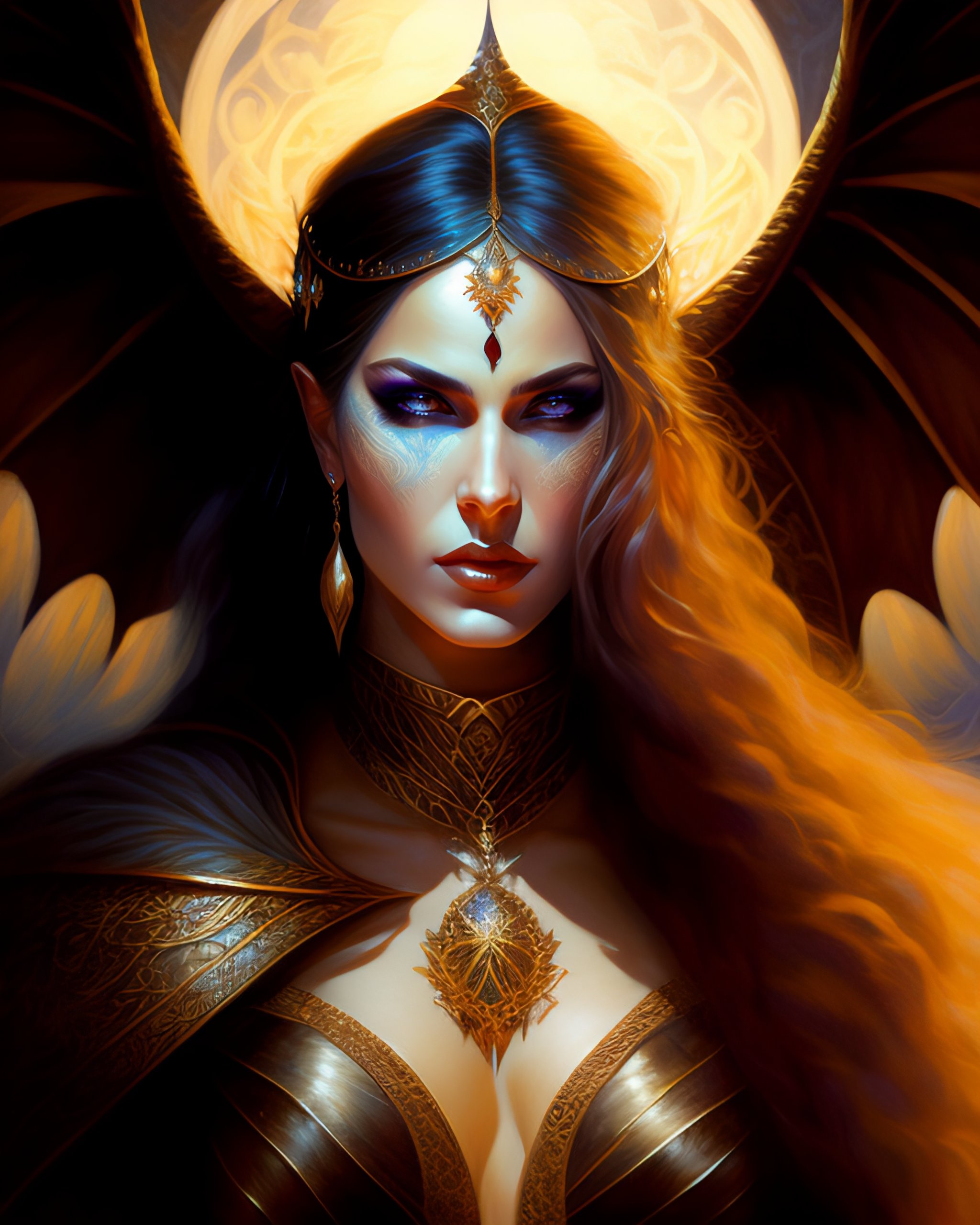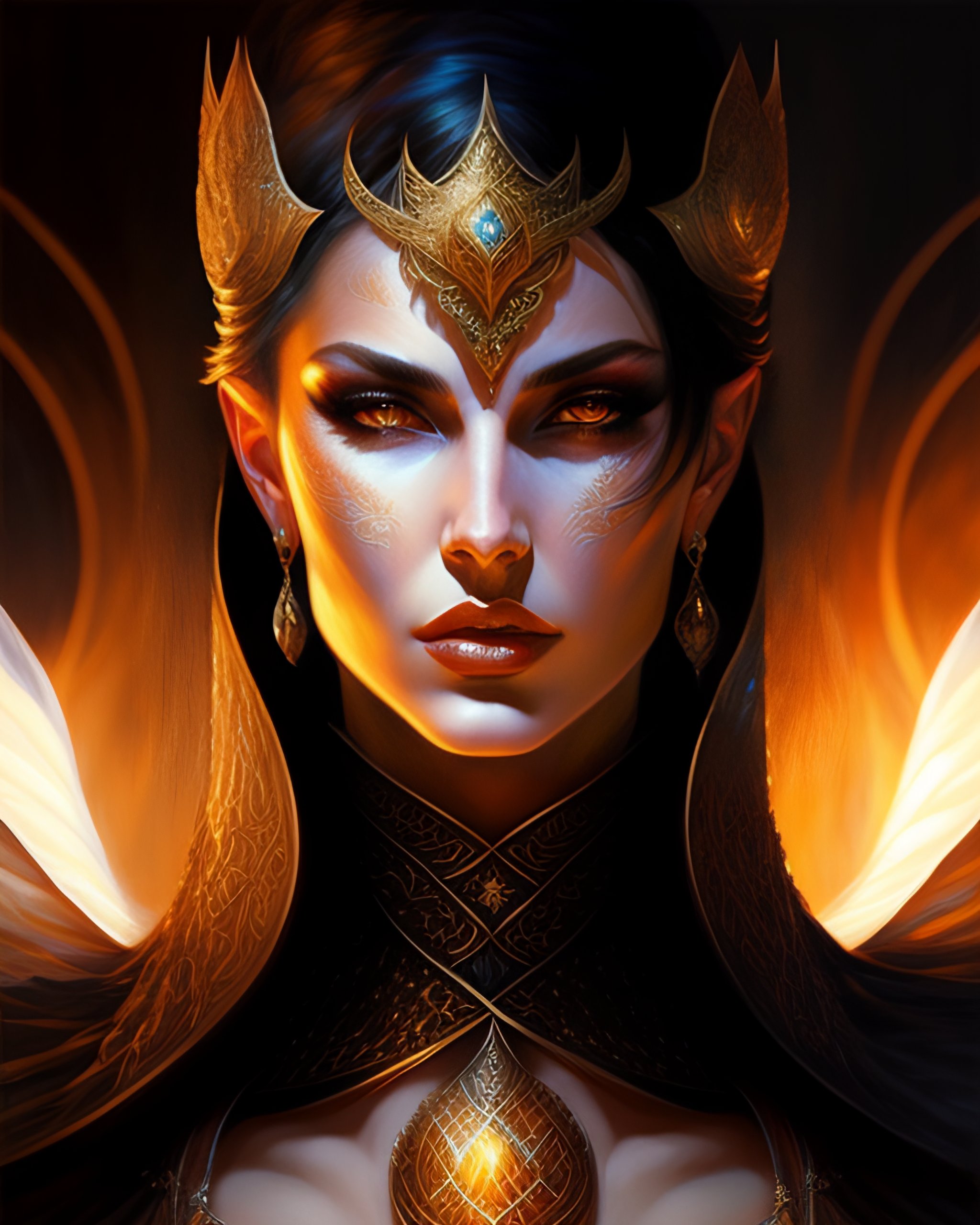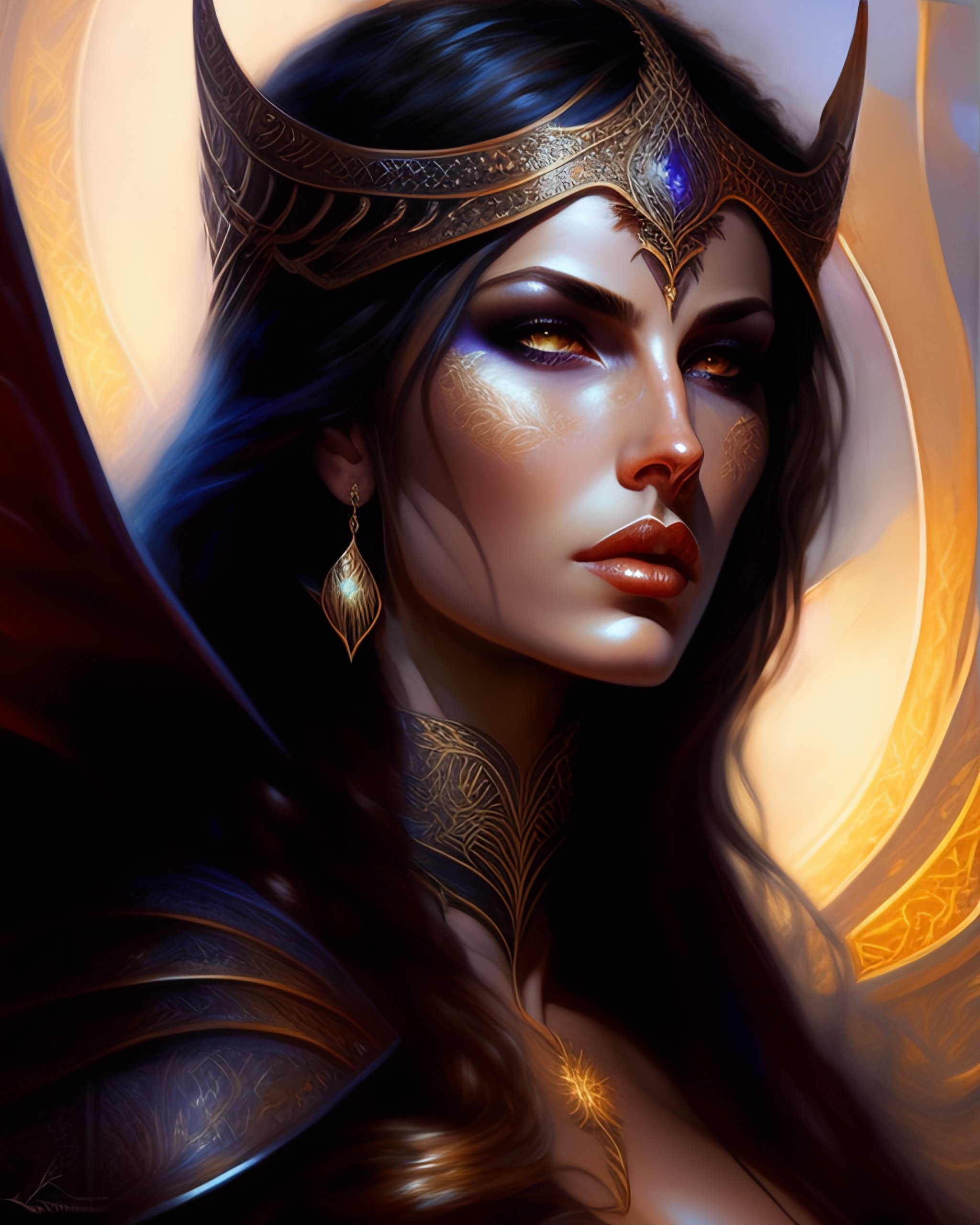 Dragon age style beautiful sorceress morrigan, intricate, elegant, dramatic backlighting, by artist karol bak