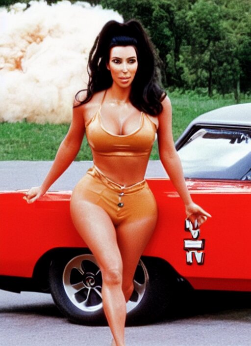 Film still of kim kardashian as daisy duke in the tv show dukes of hazzard