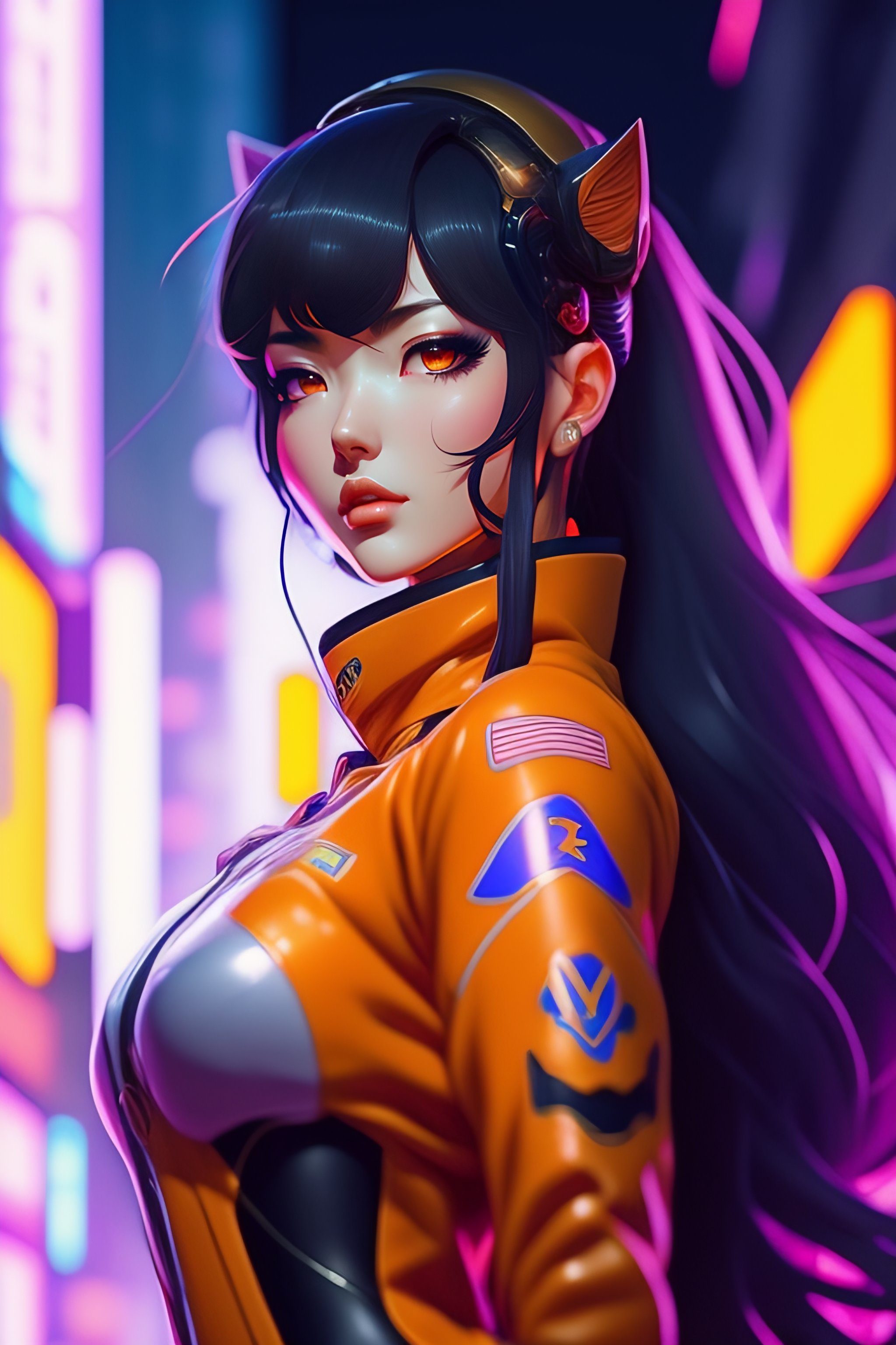 D. va from overwatch in a dramatic pose | | very very anime!!!, fine - face, realistic shaded perfect face, fine details. anime. realistic shaded lighting poster by ilya kuvshinov katsuhiro otomo ghost - in - the - shell, magali villeneuve, artgerm, jeremy lipkin and michael garmash and rob rey