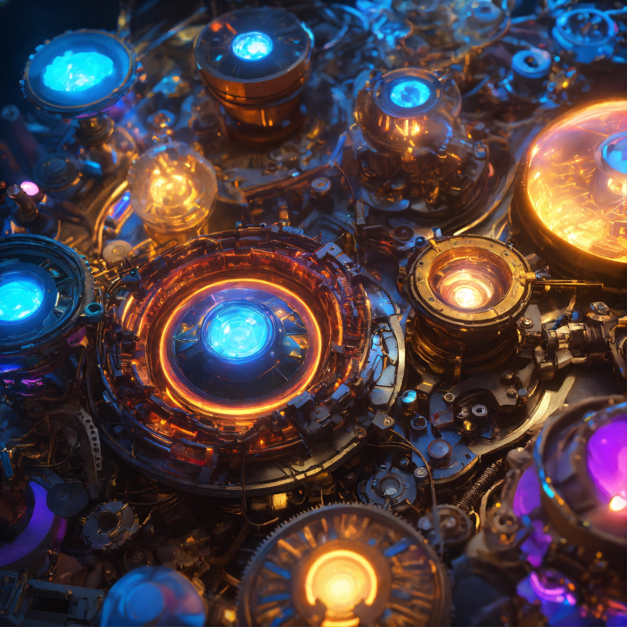 Reflective mechanical parts, post processing, in, hypermaximalist, hyper realistic, super detailed bioluminescence, plasma, neon, brimming with energy, electricity, power, colorful sci-fi steampunk, costumes and props, knolling, knolling layout, deconstruction, highly detailed, depth, lumen render, 8k