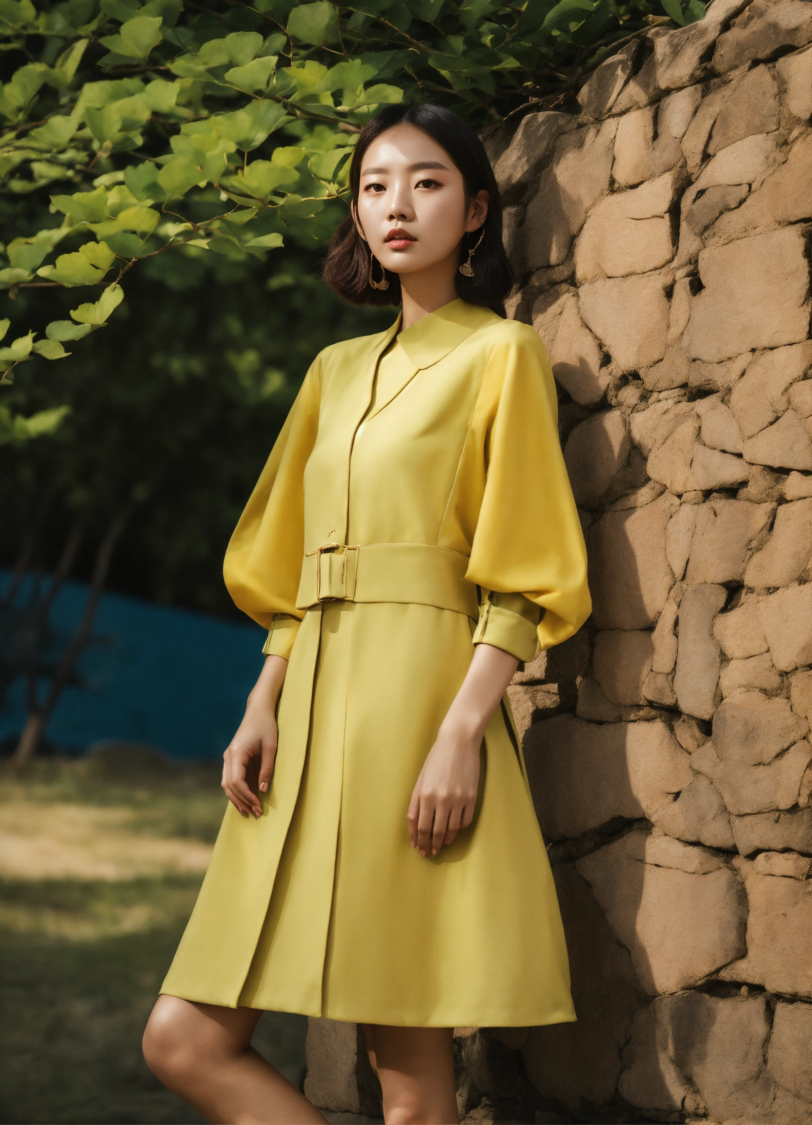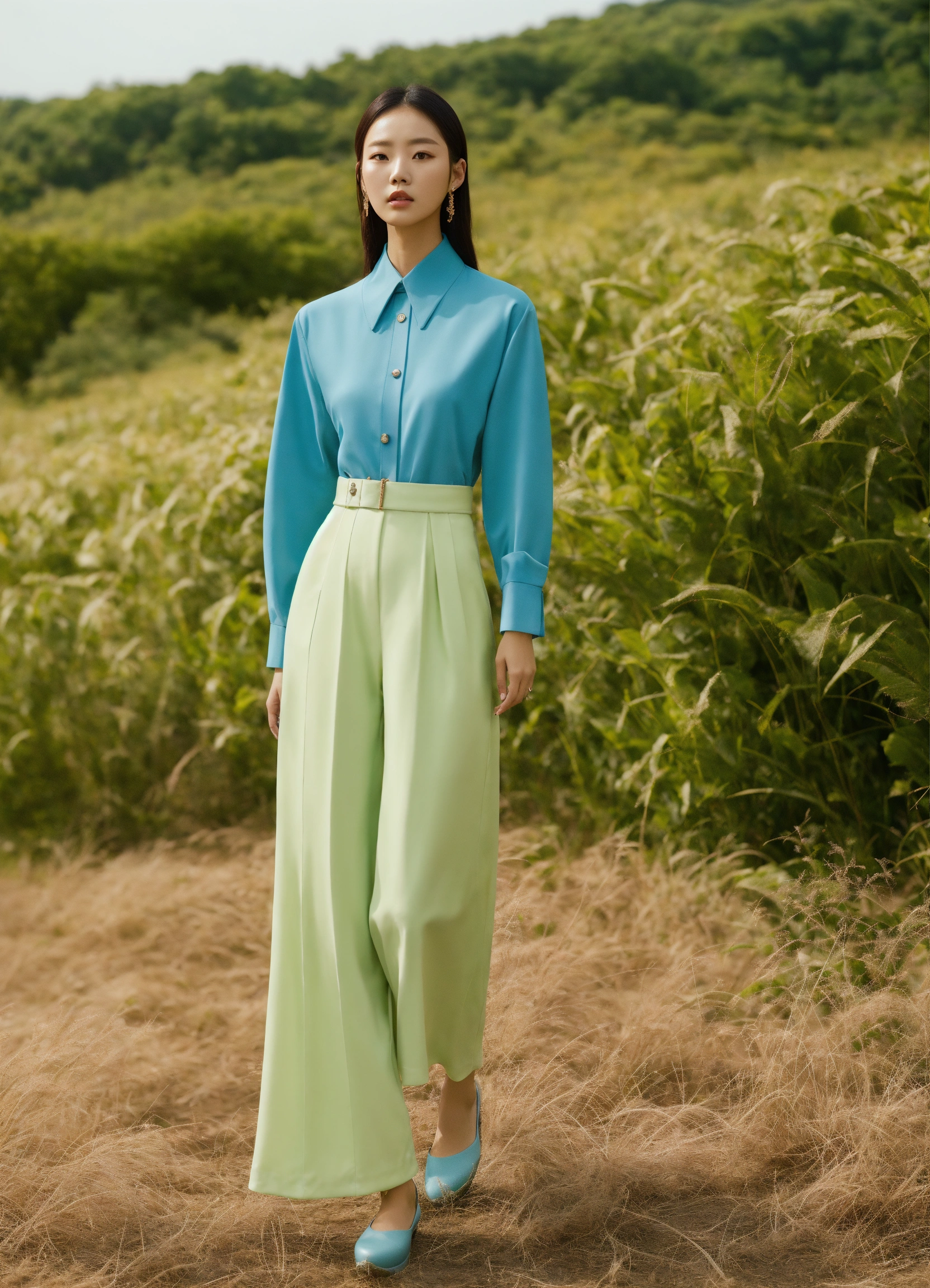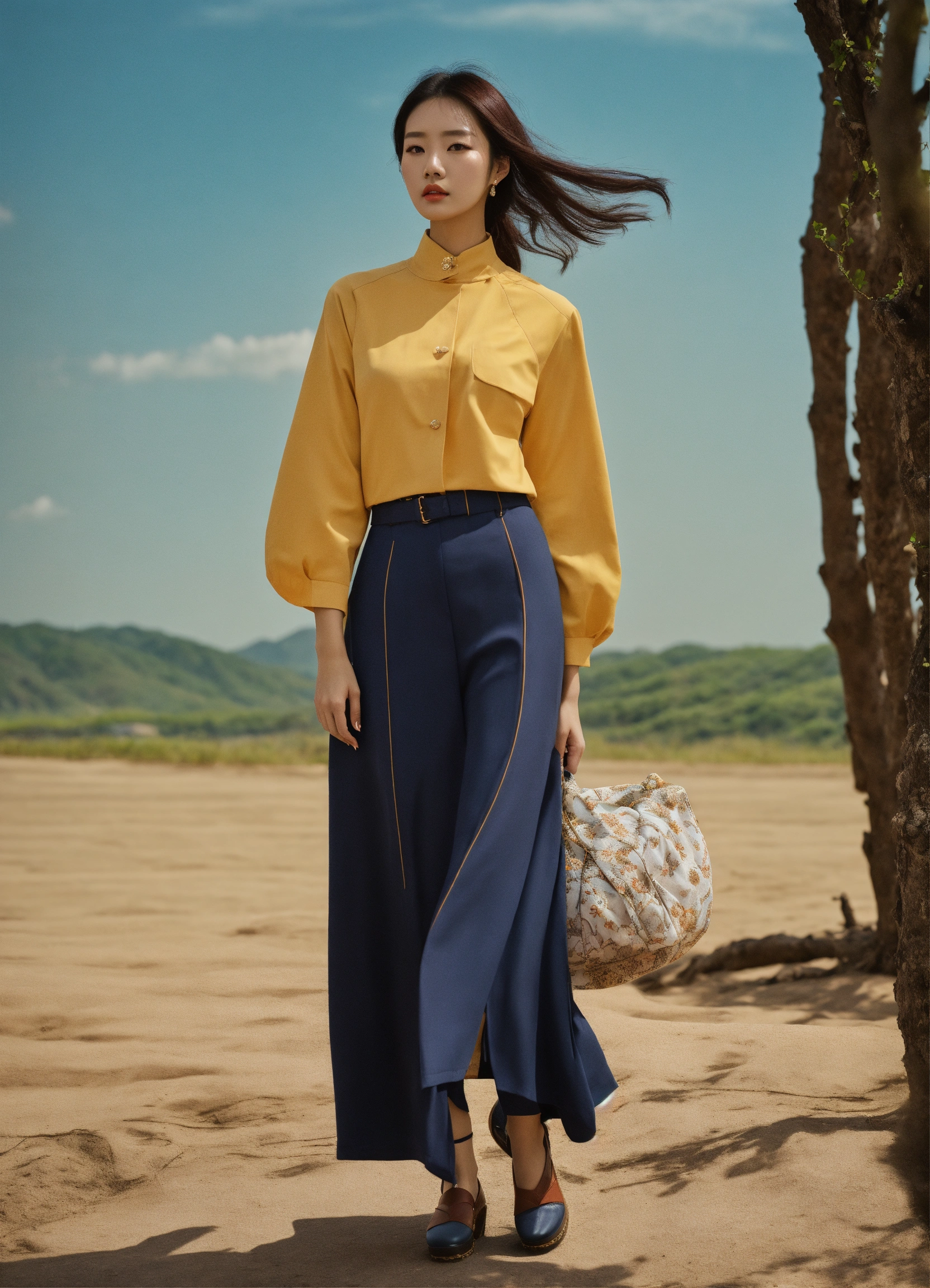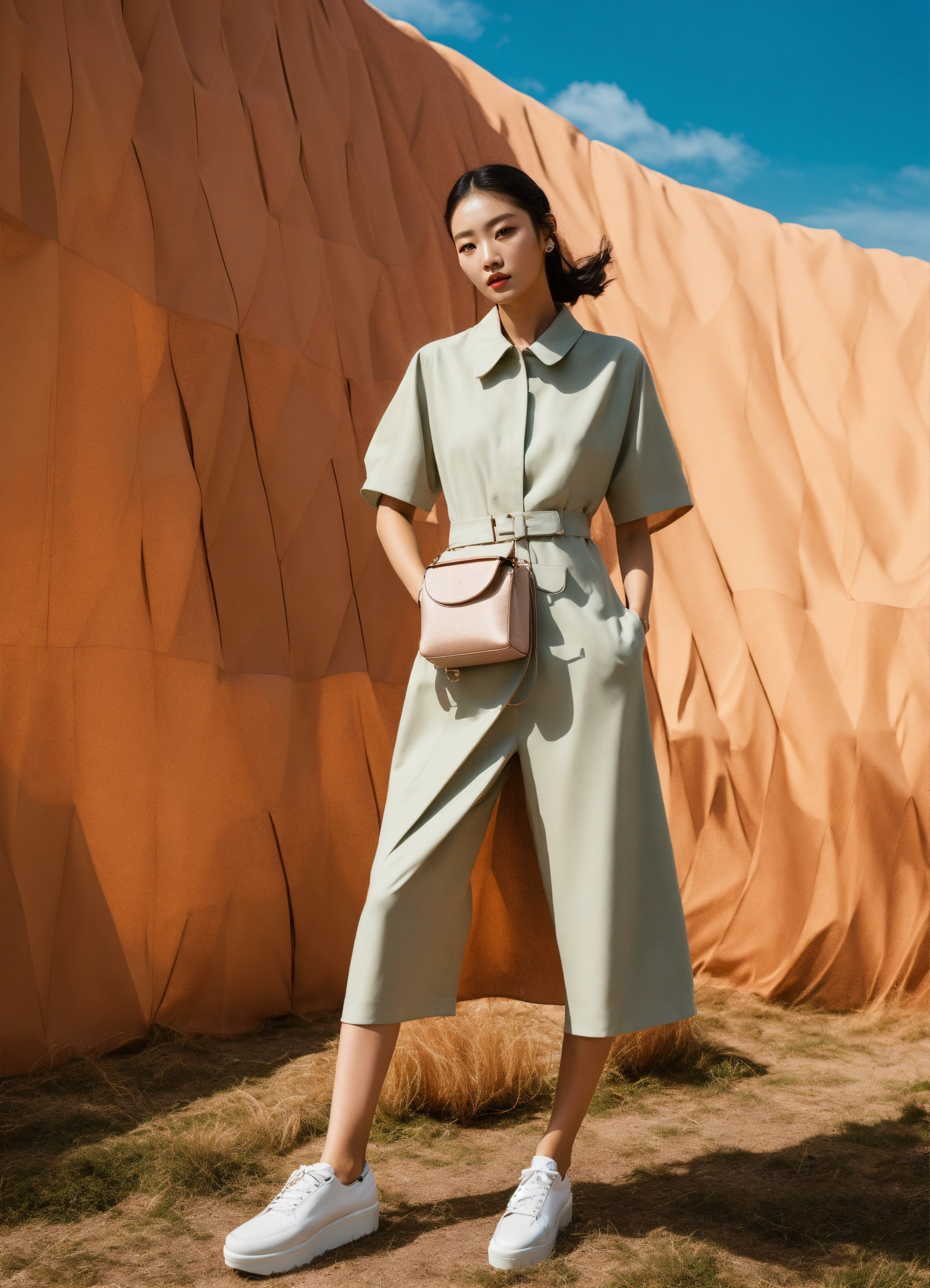 Ultra hd! editorial, fashion summer casual modest collection, korea style, textile, high end, female models, structured outfit, platform, iso 400, surrealistic, 8k, full frame, landscape