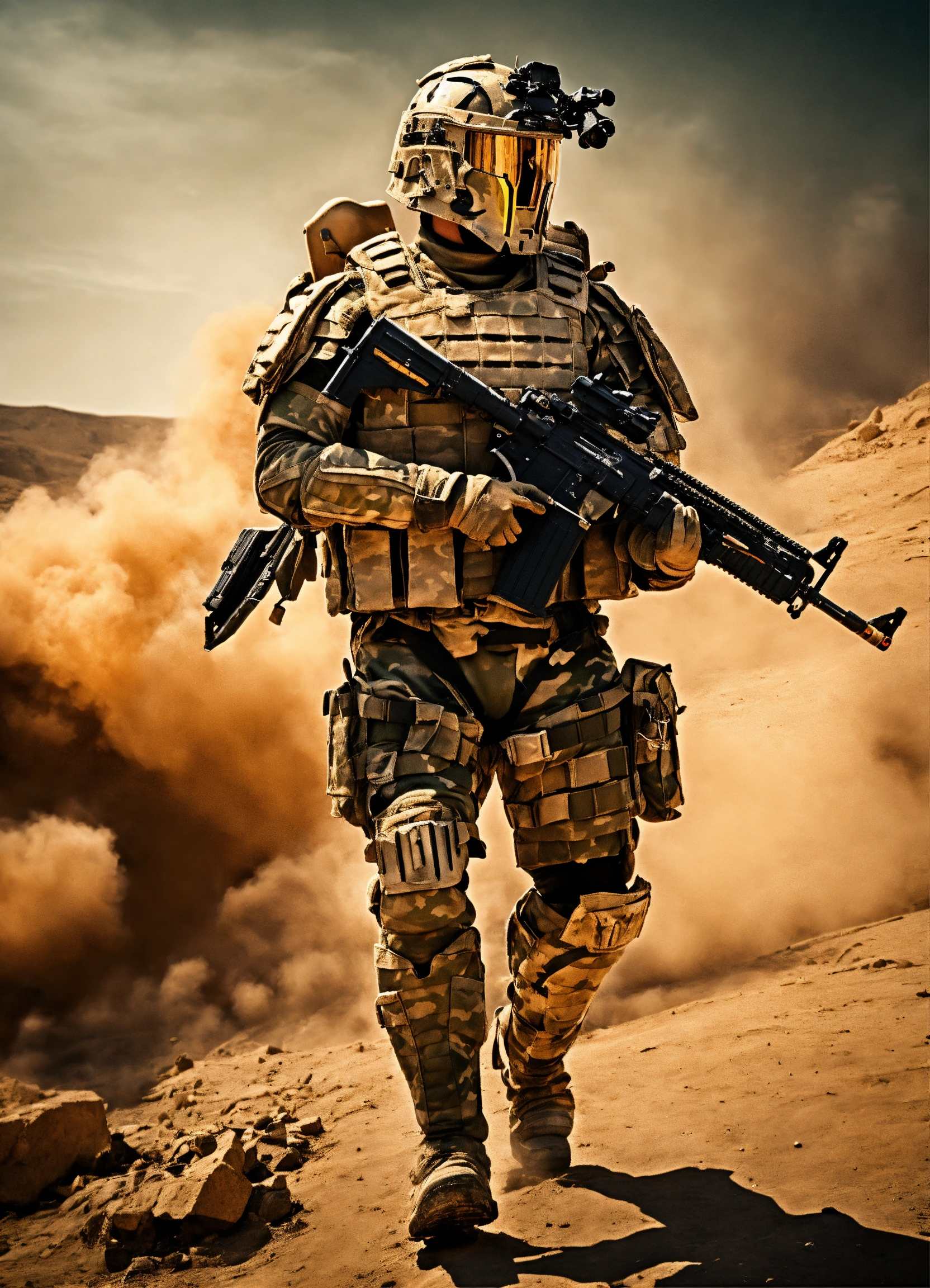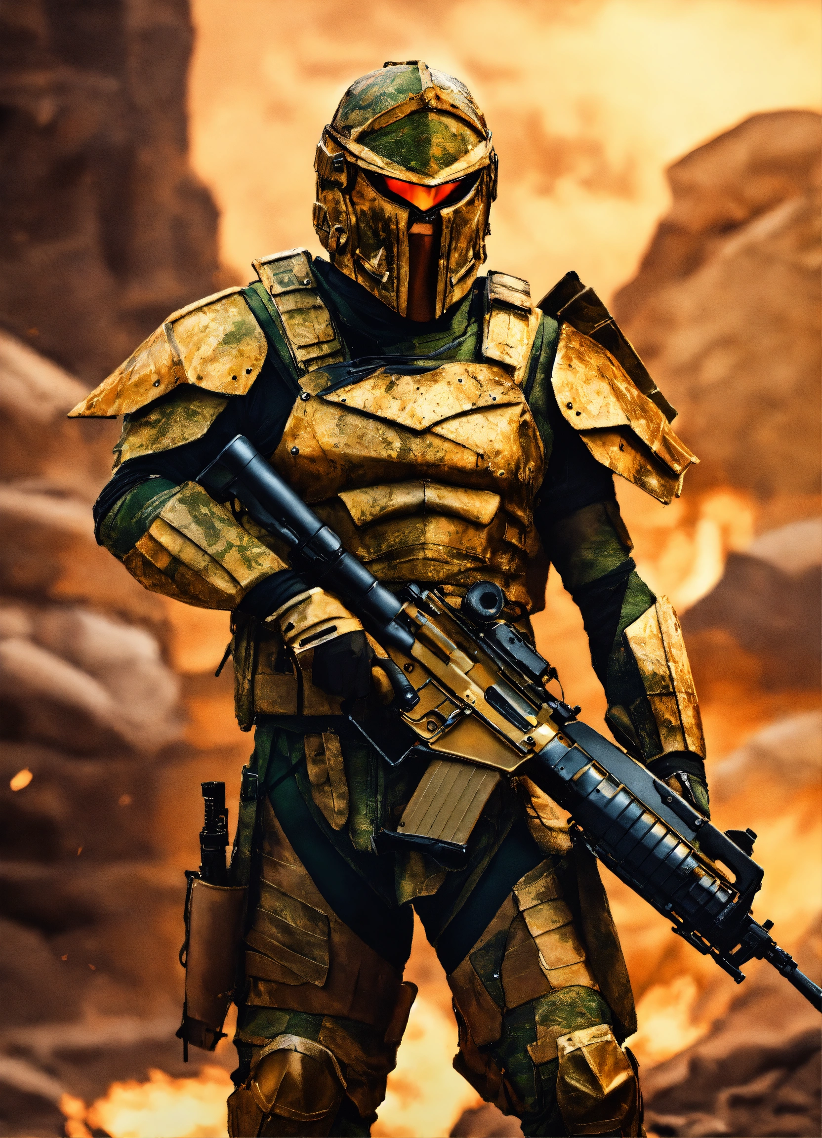 Post modern ancient spartan soldiers carrying assault rifles in camouflage armor