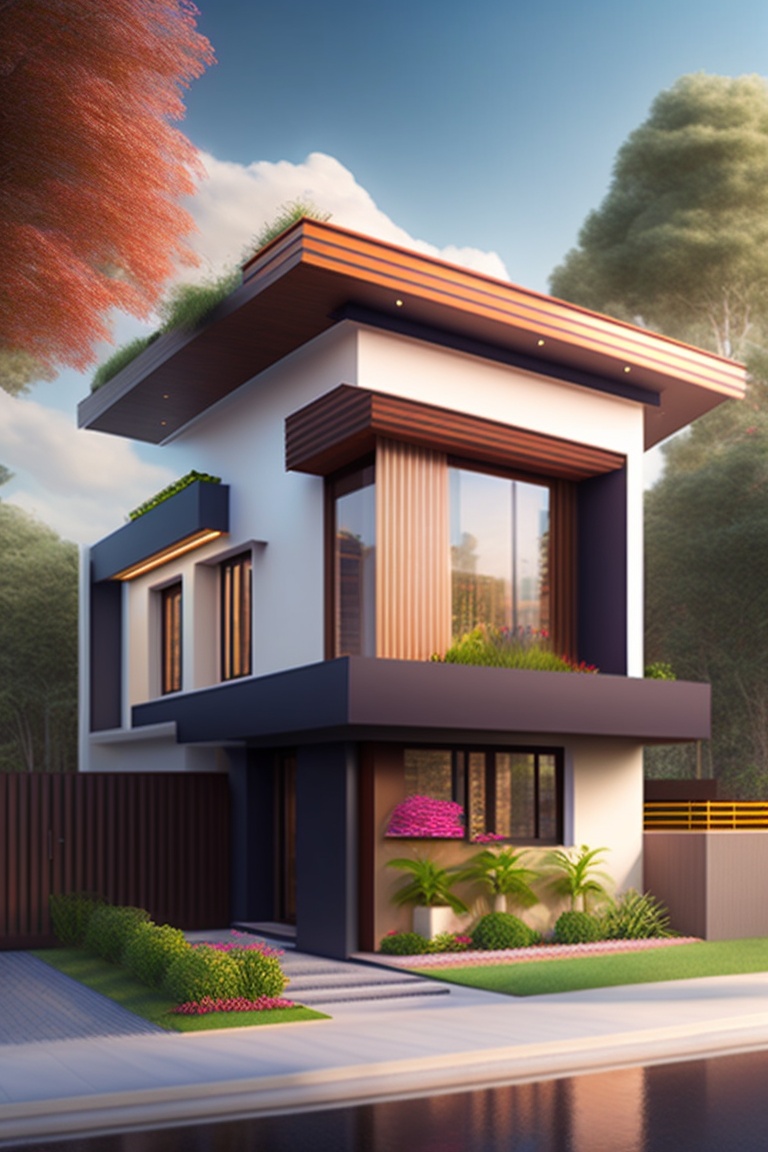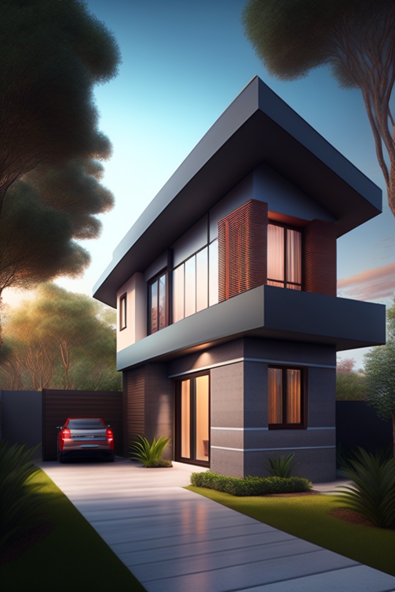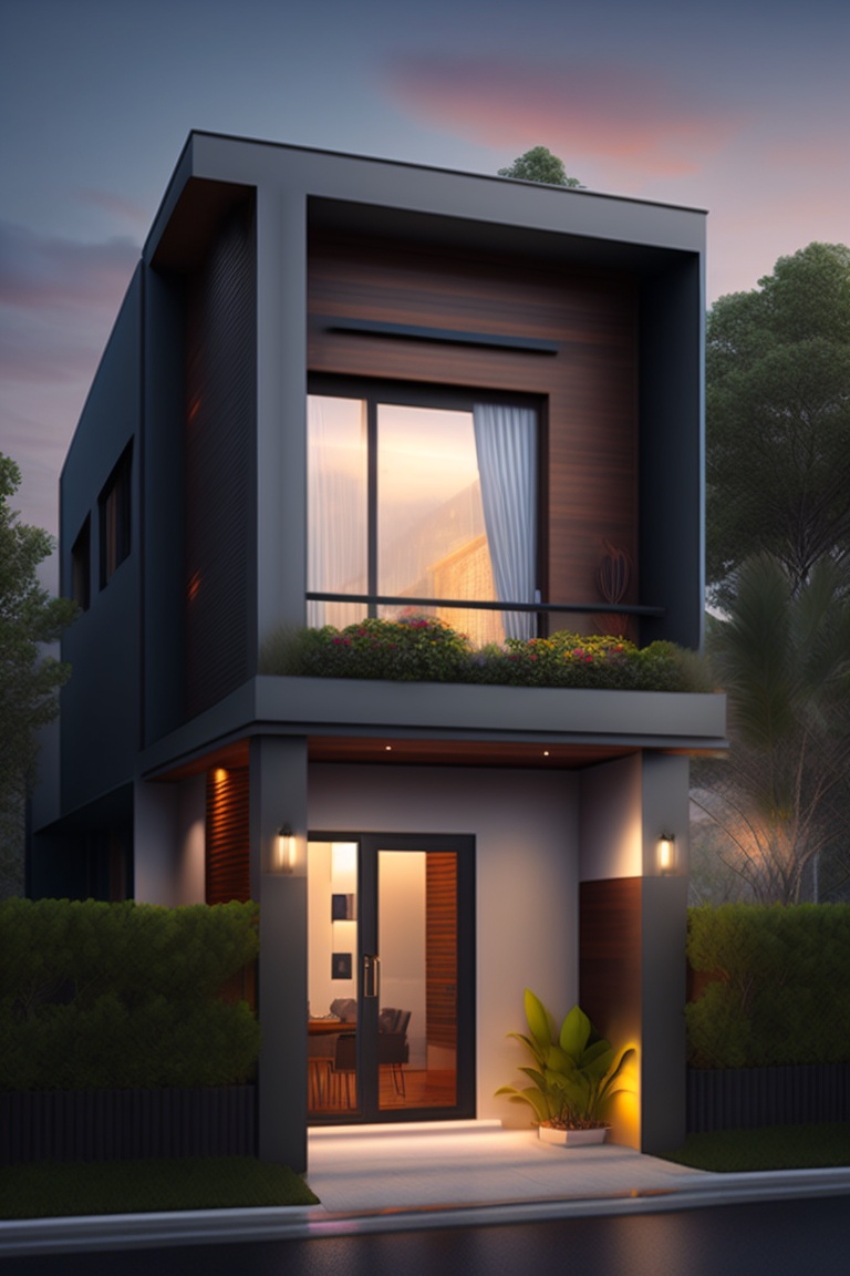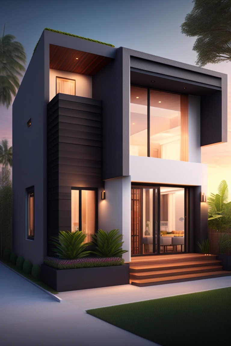 Contempory house 1 floor, 5 meters width x 6 meters lenght x 12 meters height, lenght wall only windows