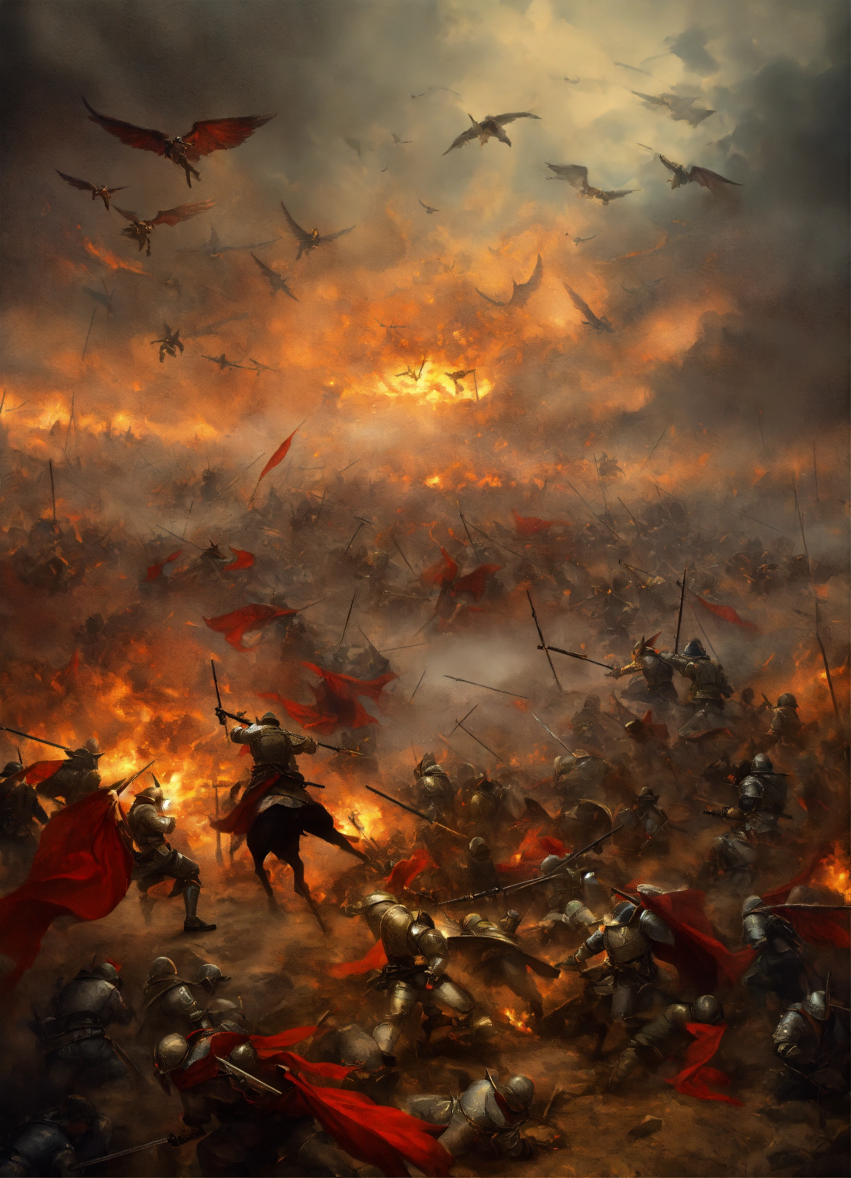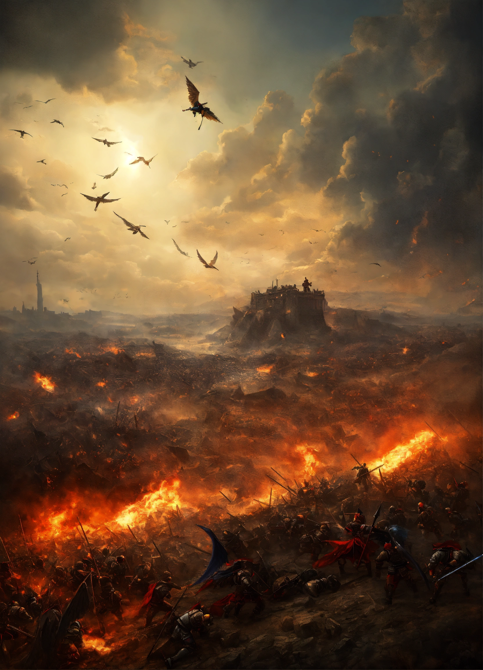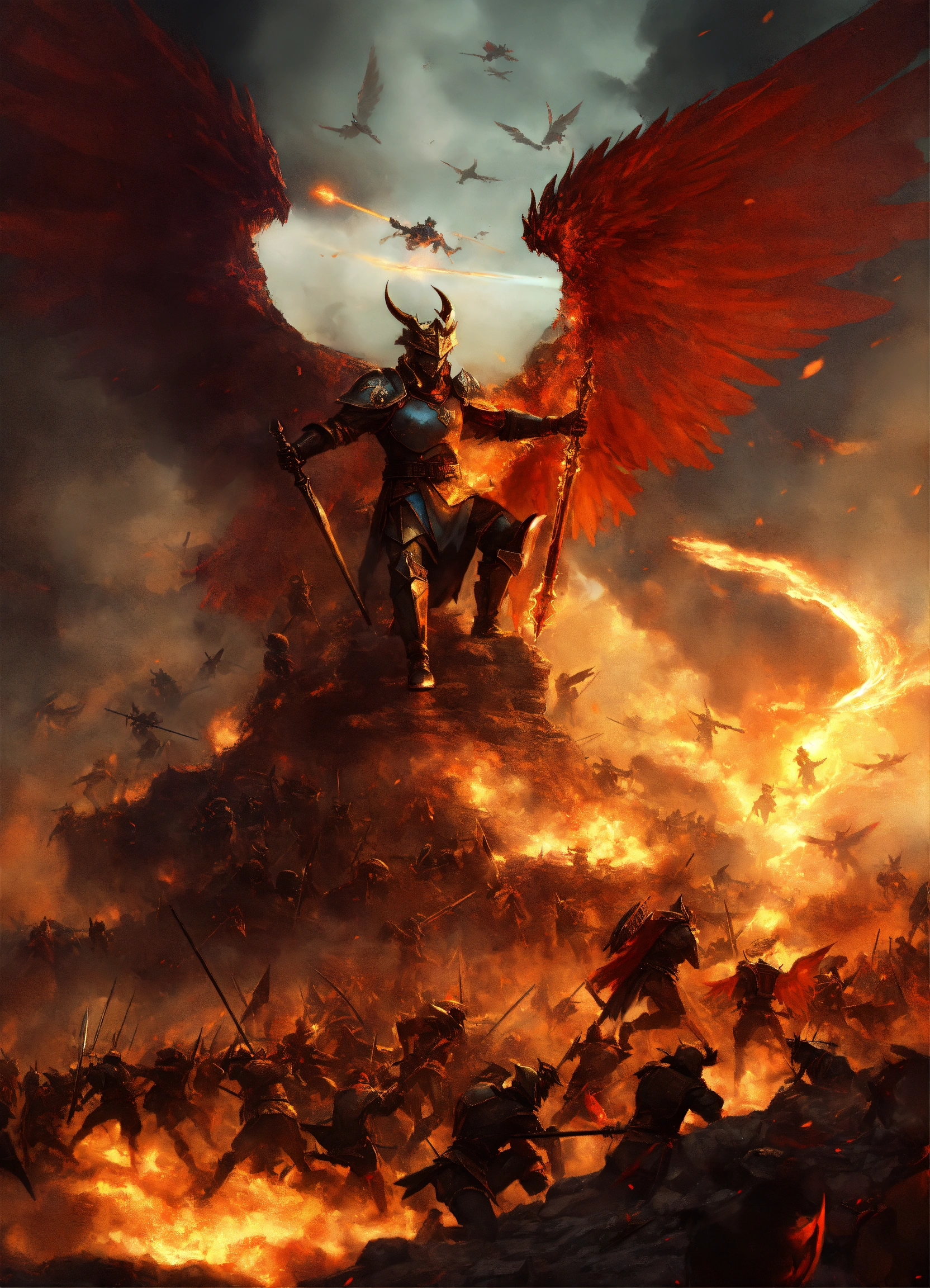 A battlefield where many angels and demons are fighting a war