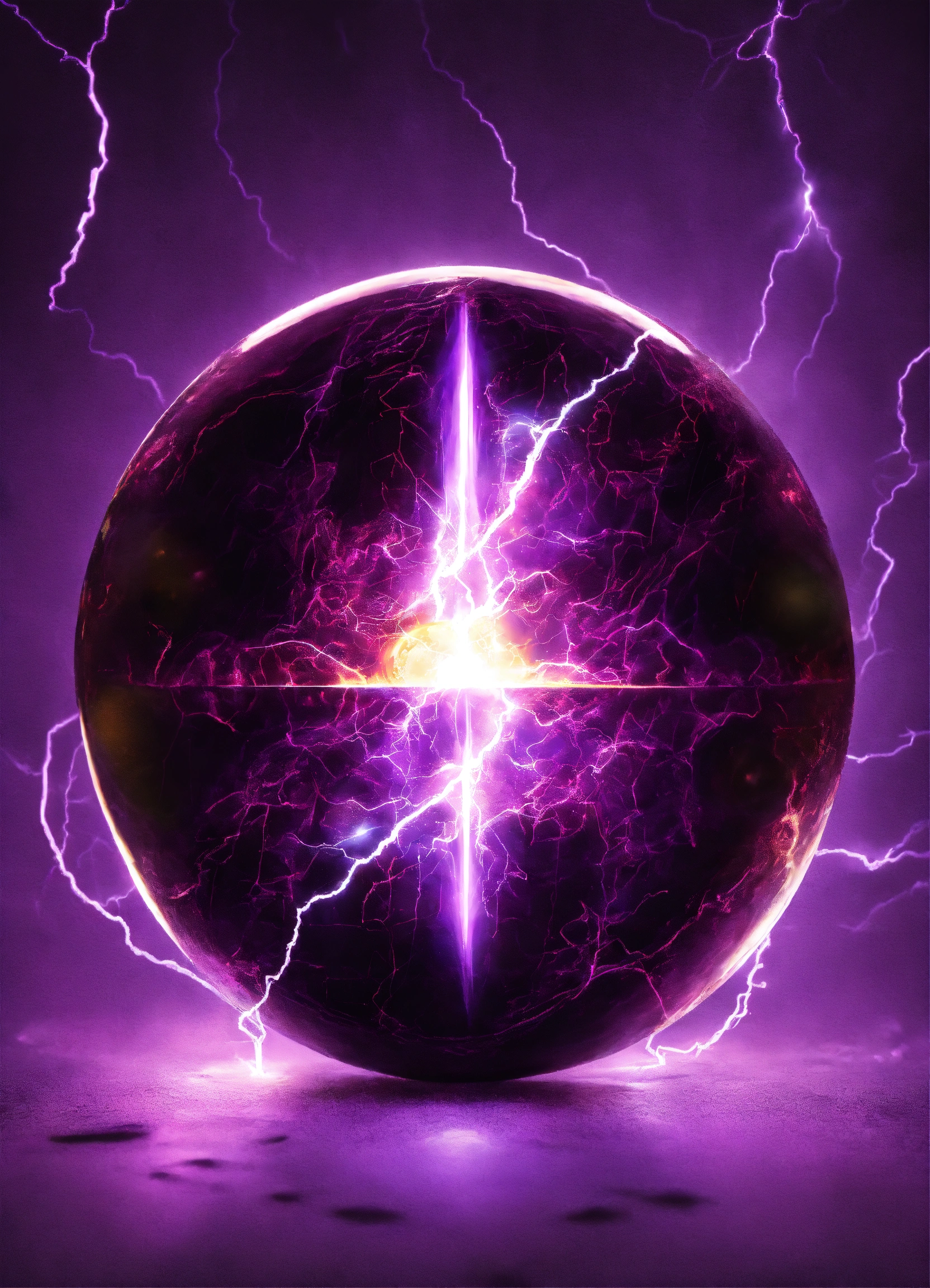 Purple magic lightning orb on white background