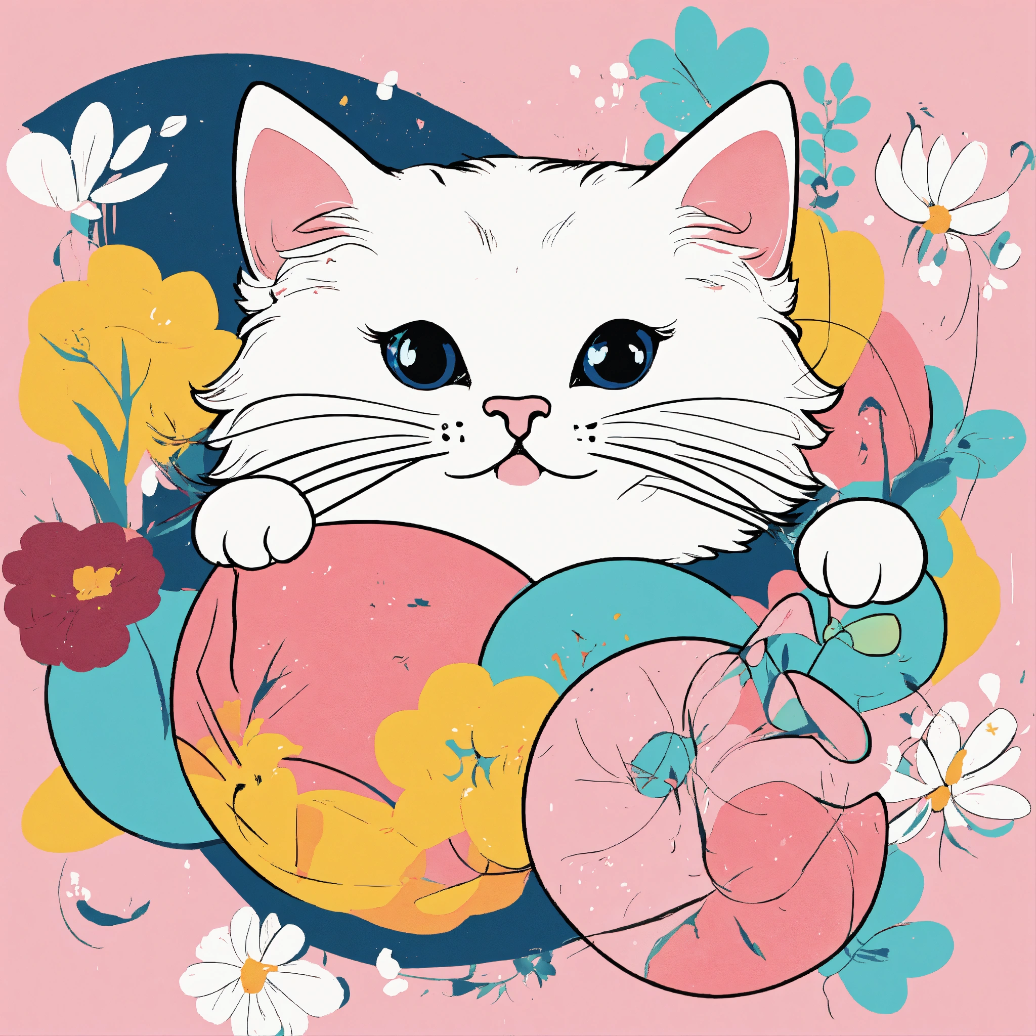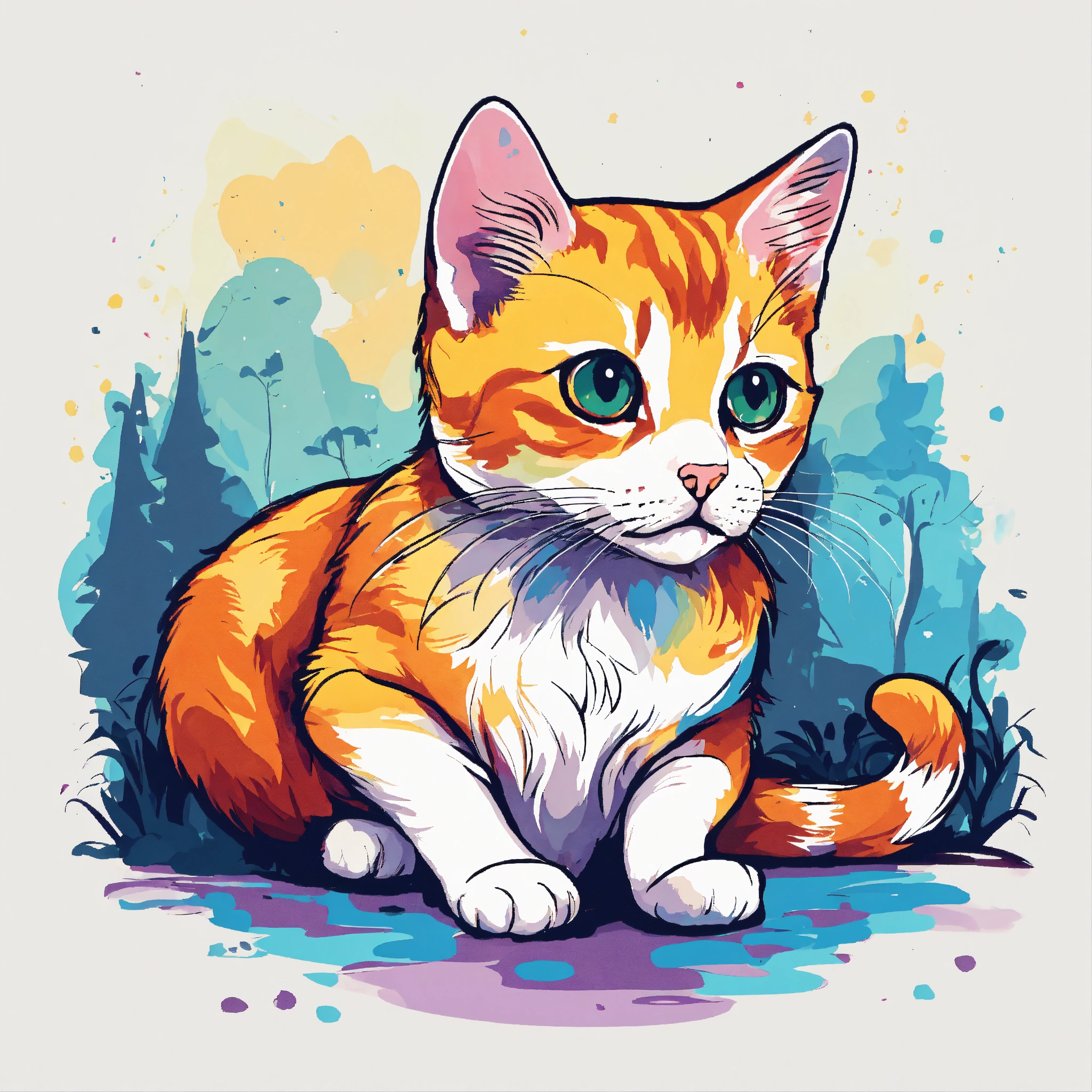 Cute cat tshirt design, vector graphic, colorful, adorable, cute cat, vector illustration, white background