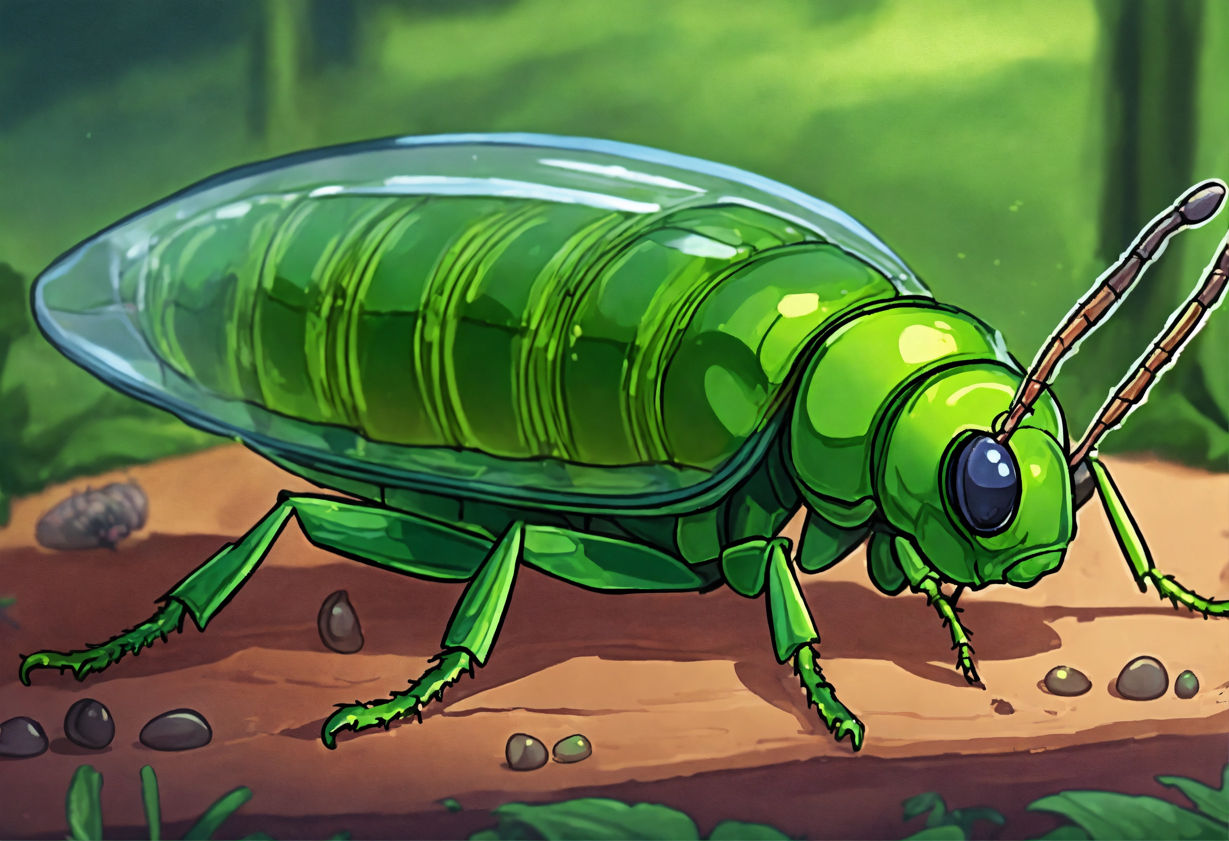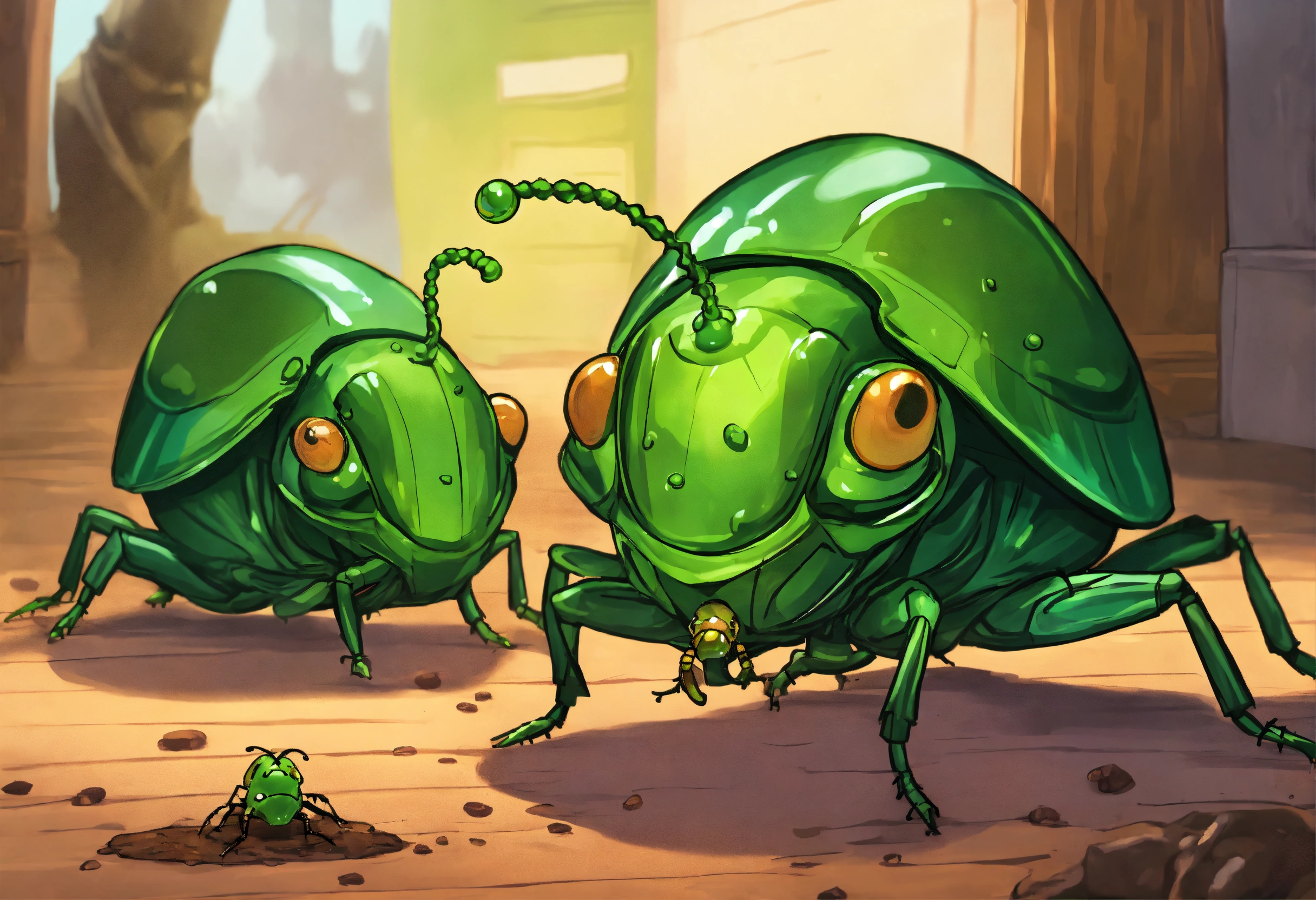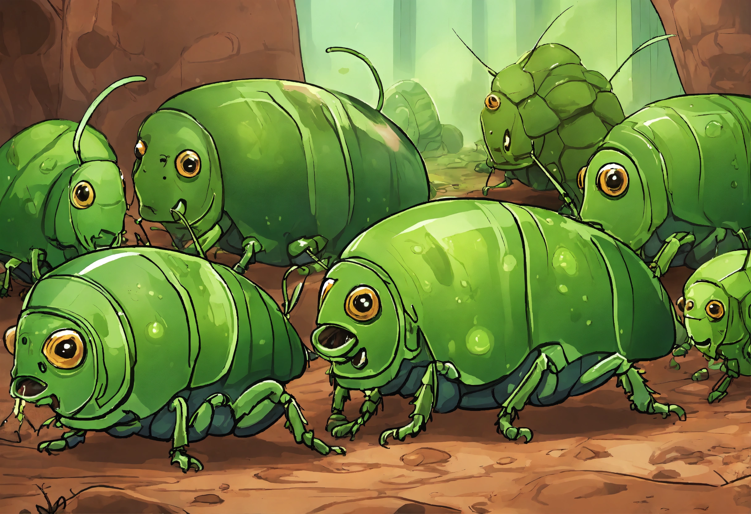 Green ooze covering cockroaches, as they start growing in size and gaining human-like features. cartoon