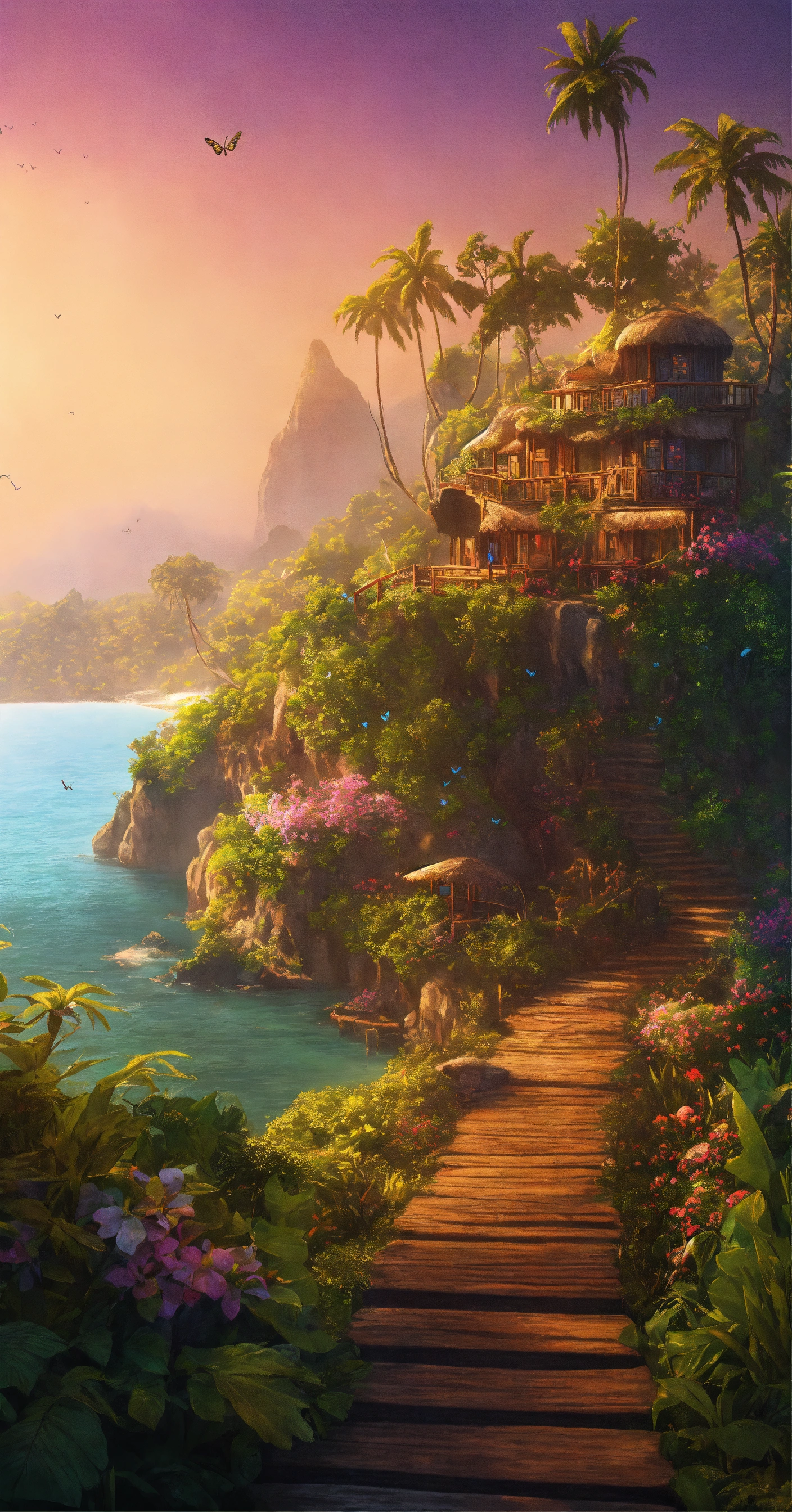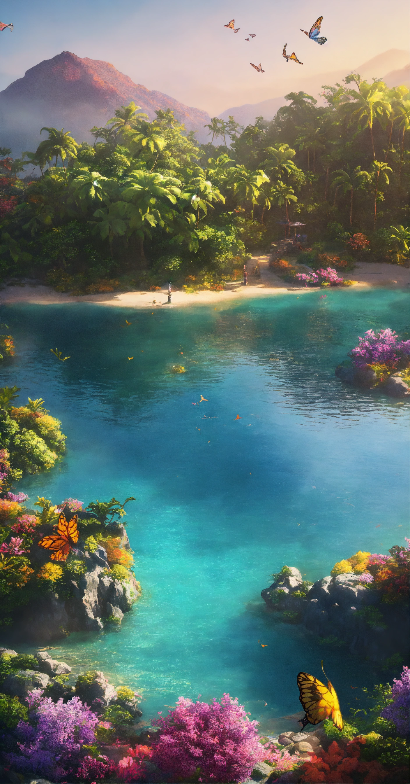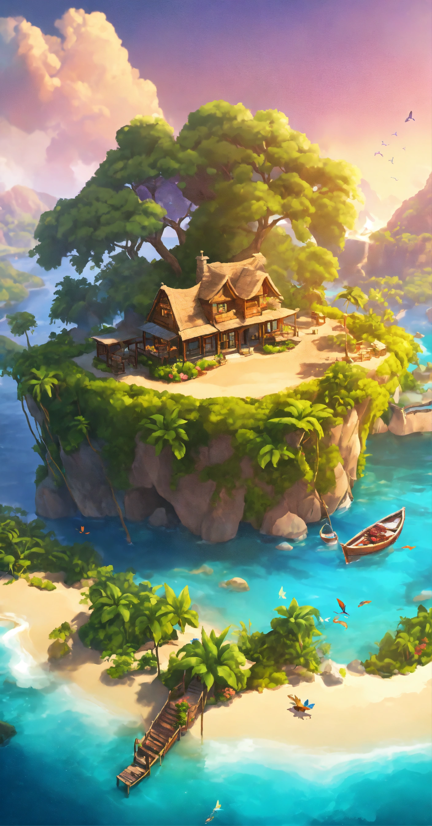 Island design determine island shape and size. let this island be unusual and magical. scenic elements imagine the landscapes and nature on the island. you can add forests, mountains, lakes, waterfalls or exotic vegetation. imagination elements add giant butterflies flying in the sky, talking trees, colorful birds or any fantasy creature you imagine to the island landscape. color palette choose a color palette for the island. pastel tones, vibrant colors or perhaps blues and purples for a dreamy atmosphere? light and shadows increase the depth of your image by manipulating the light and shadows on the island. main theme or expression determine the main theme or expression of your image. what does 'dream island' mean to you? cinematic, 8k