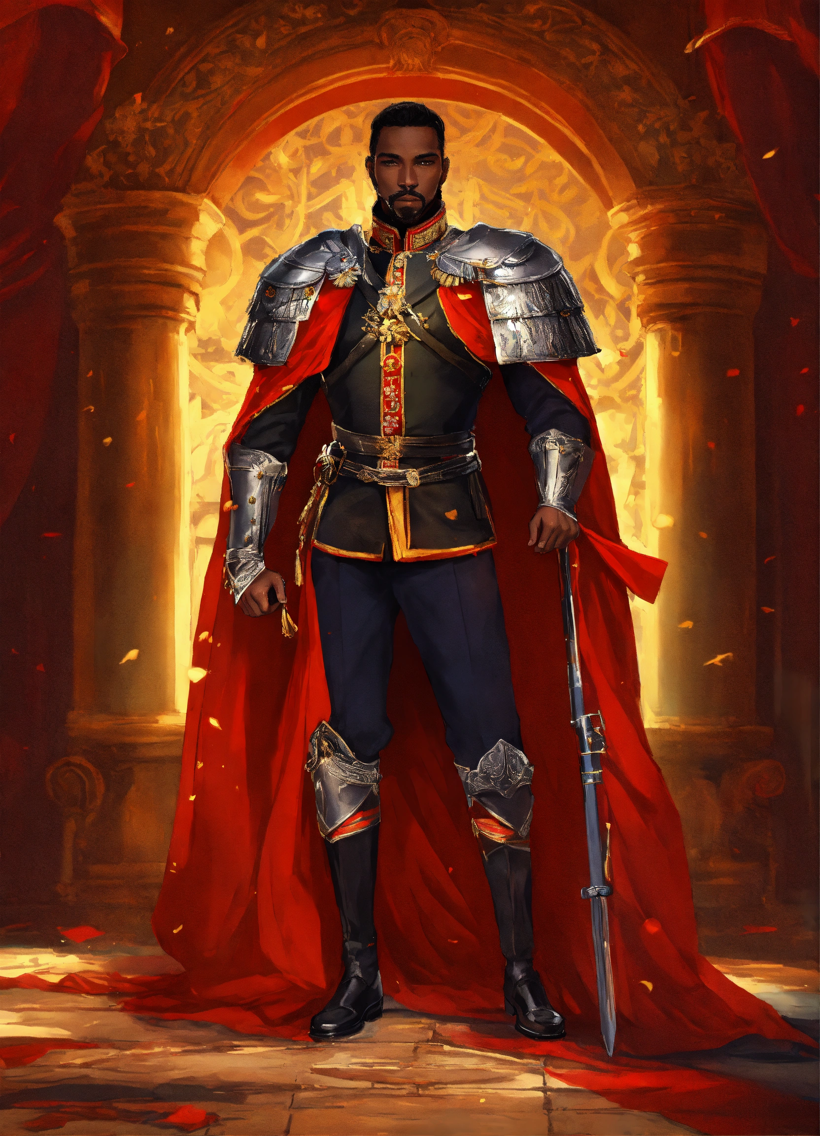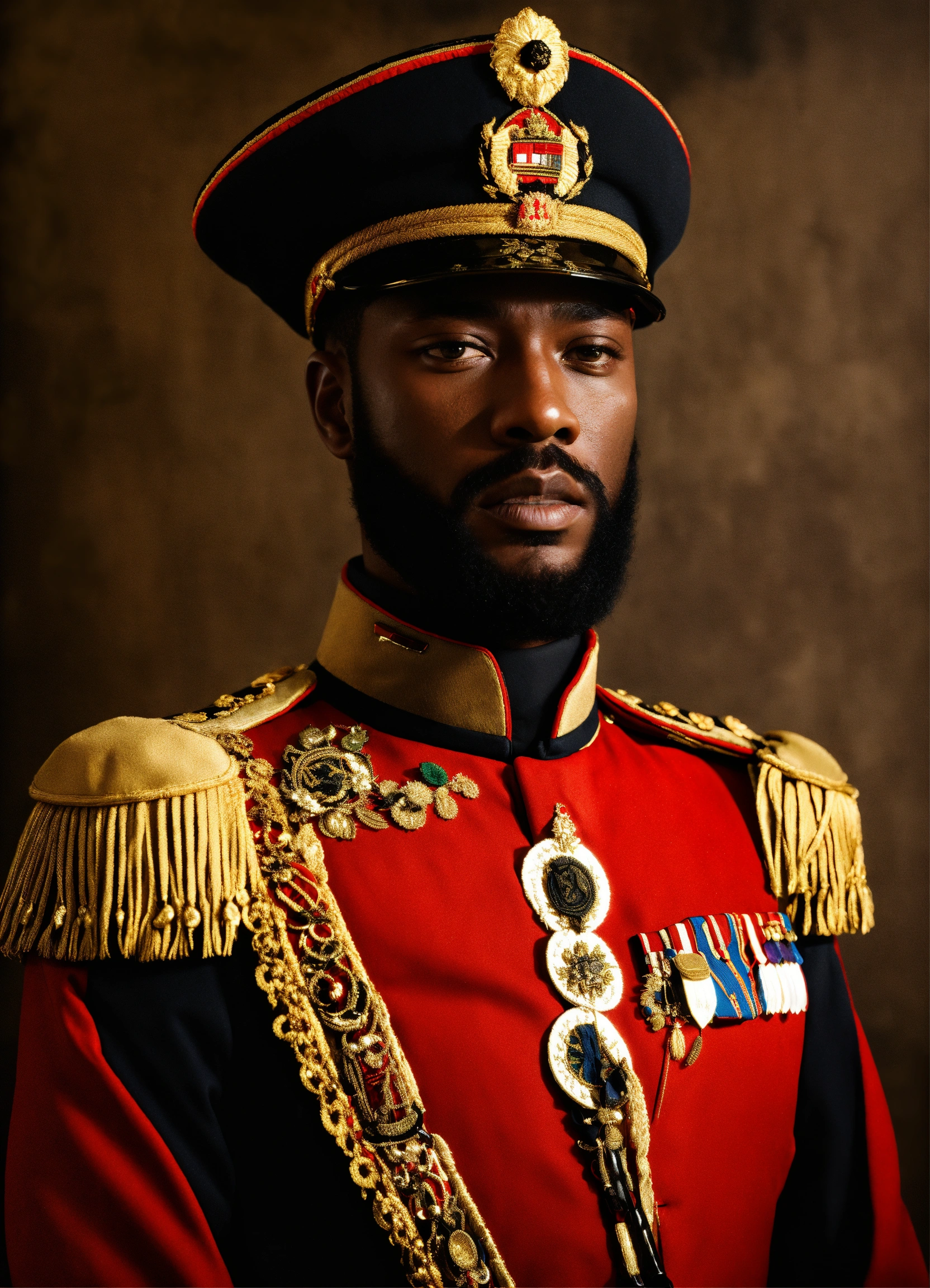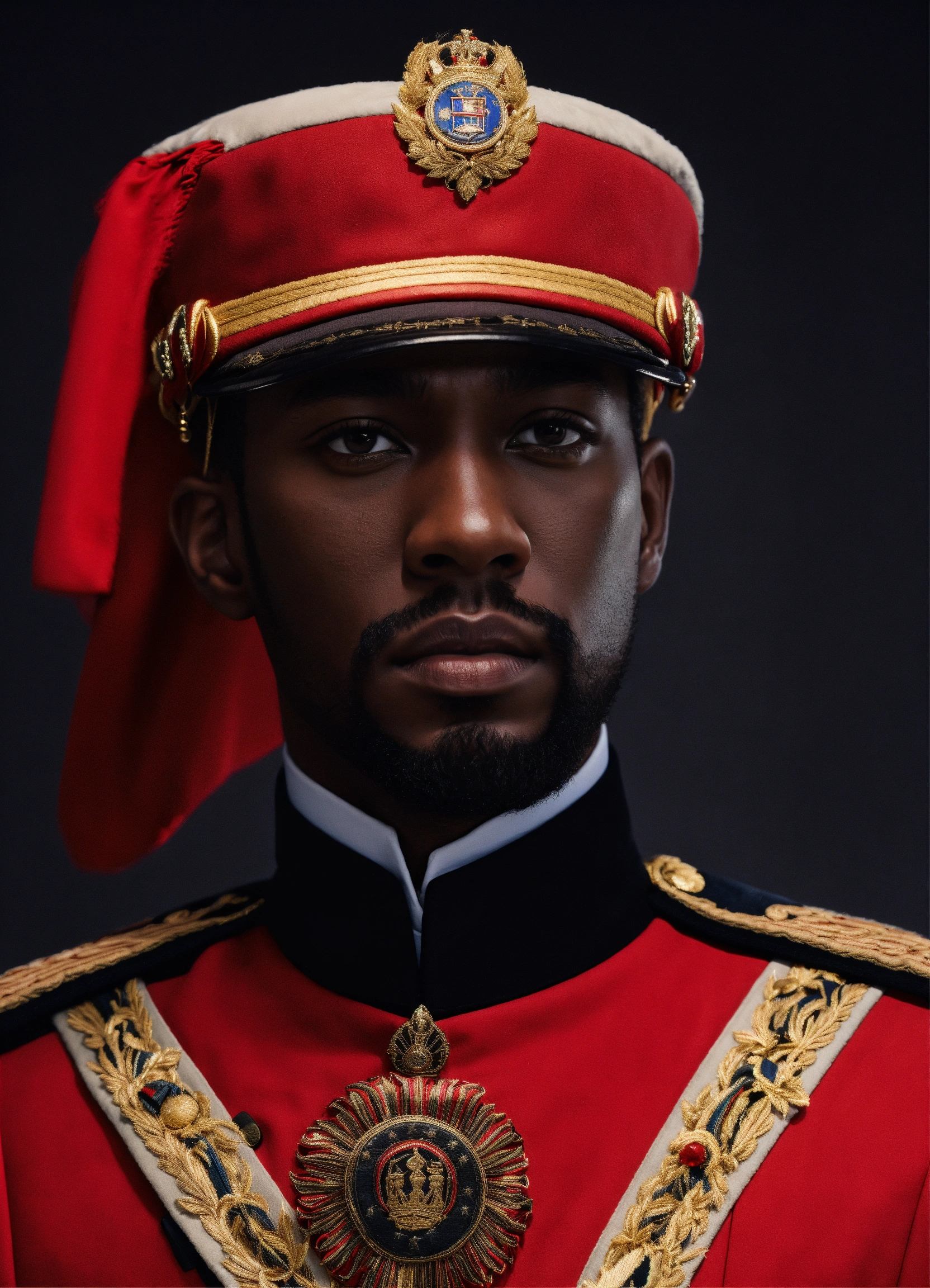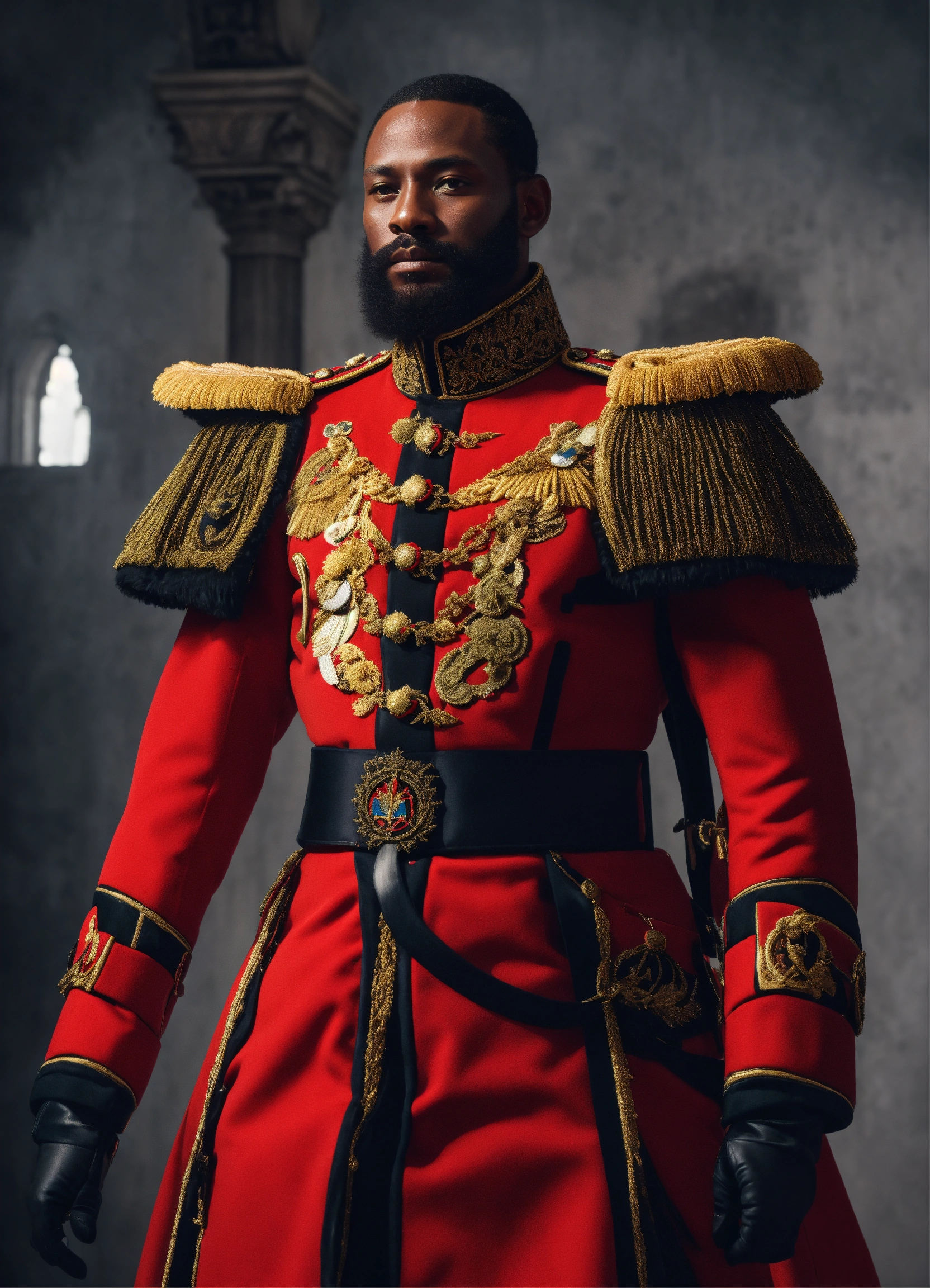 A black king red military uniform