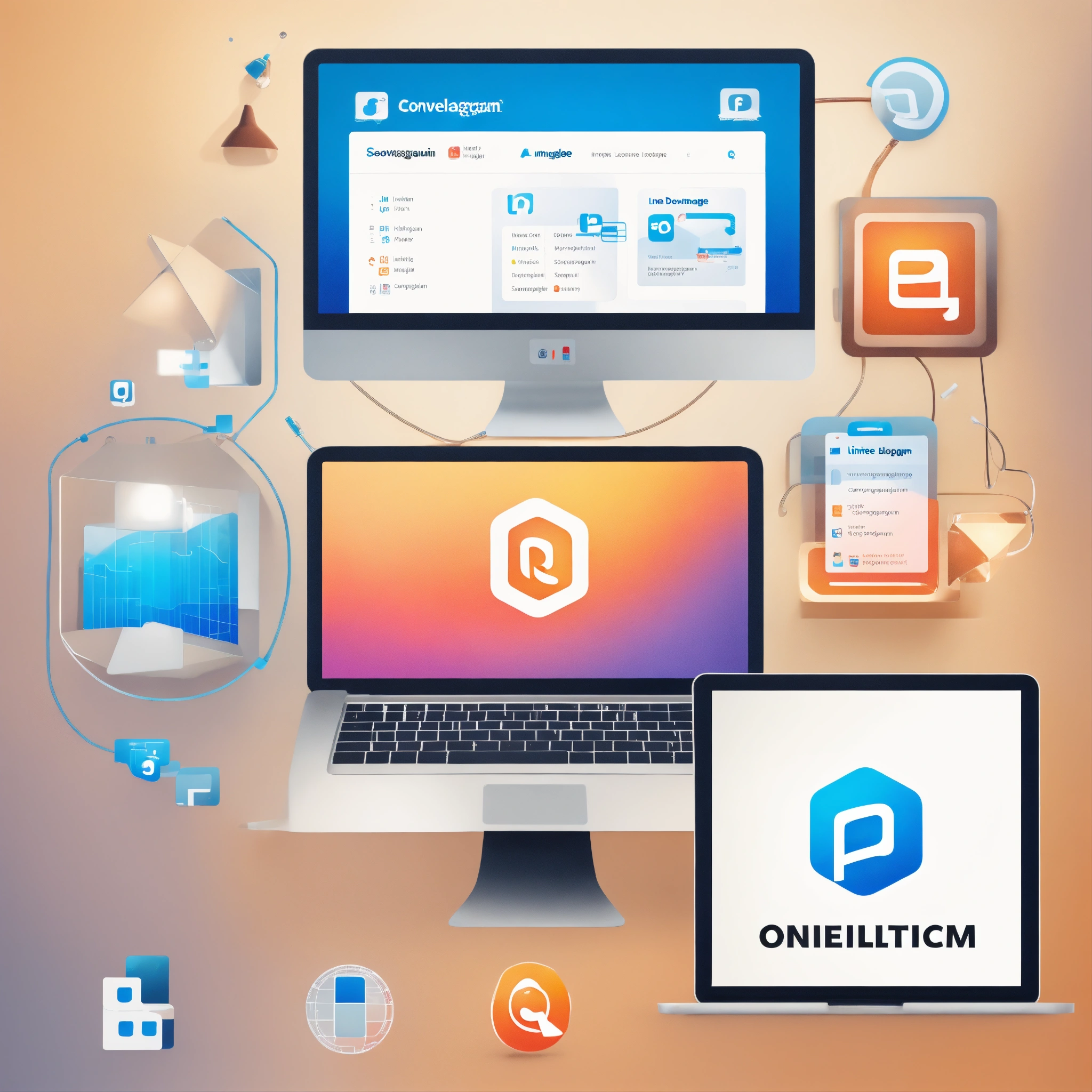 High resolution icon of a very simple simple, elegant and modern logo for consulting company in the area of software development process enhancement, logo looks similar to instagram, linkedin, telegram, or to perpetuum mobile symbols, conveying terms "logic", "software", "development" - one logo per page, on white background, name of the company is "backlogical".