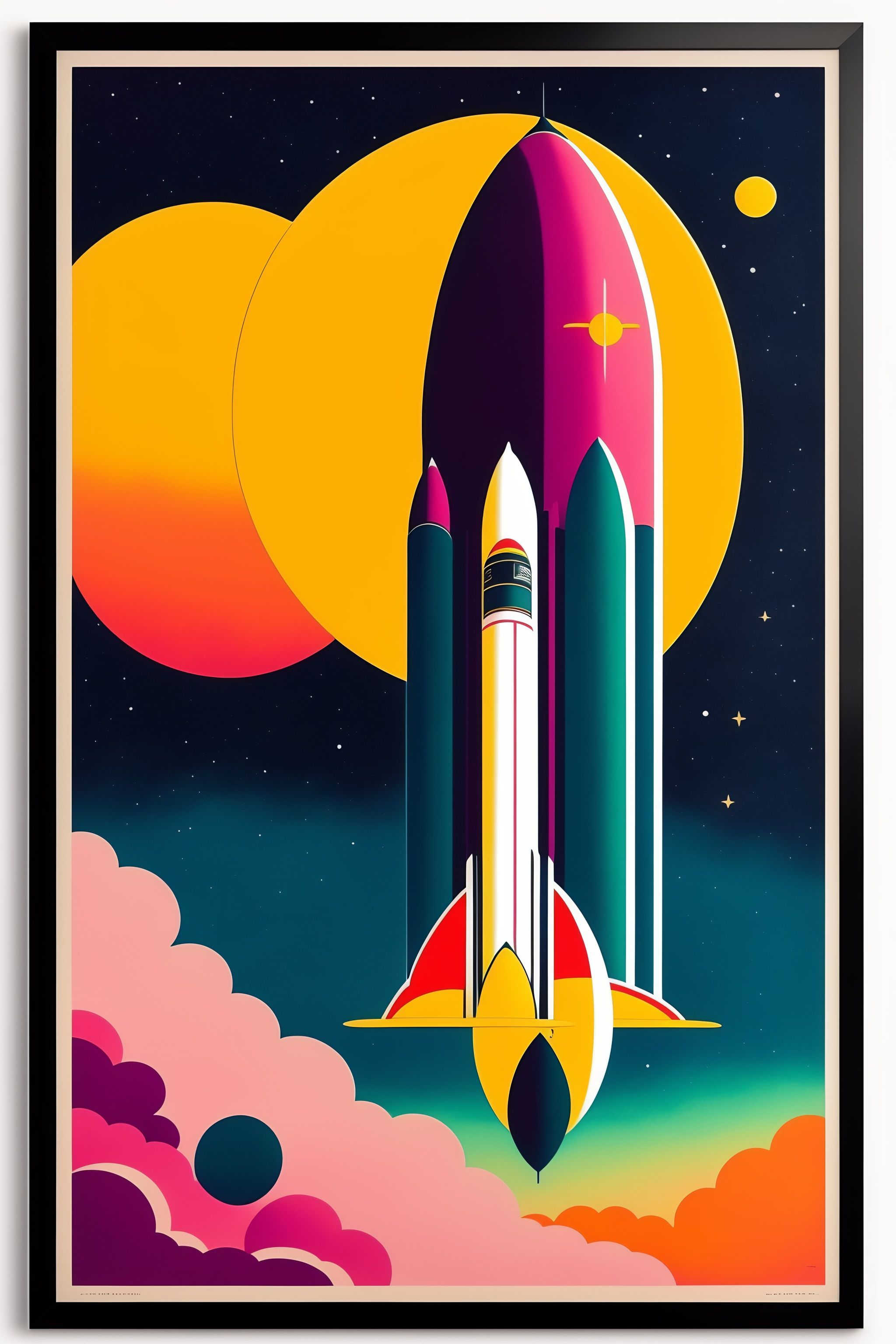 Space rocket mid century modern poster japanese art clean pastel 35mm
