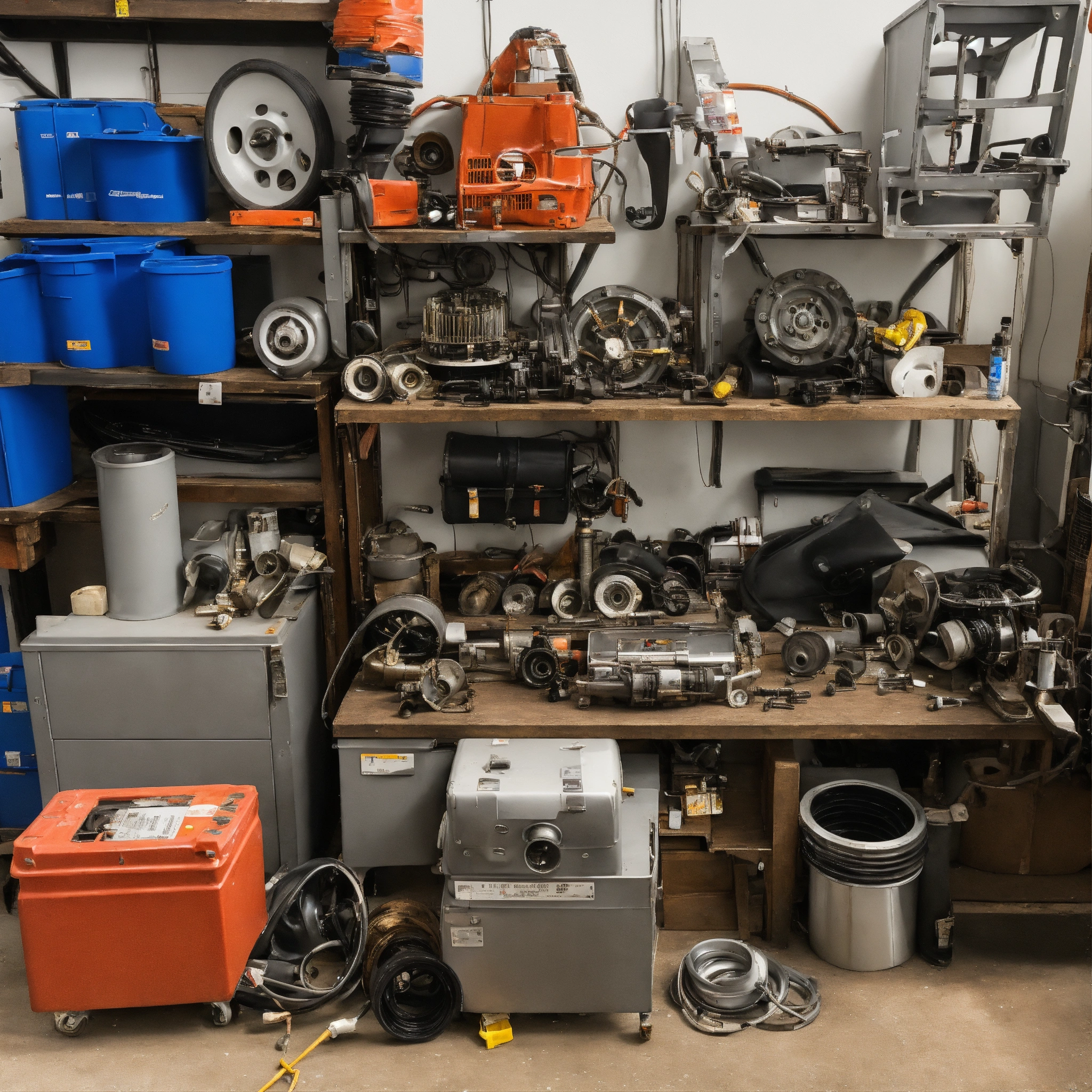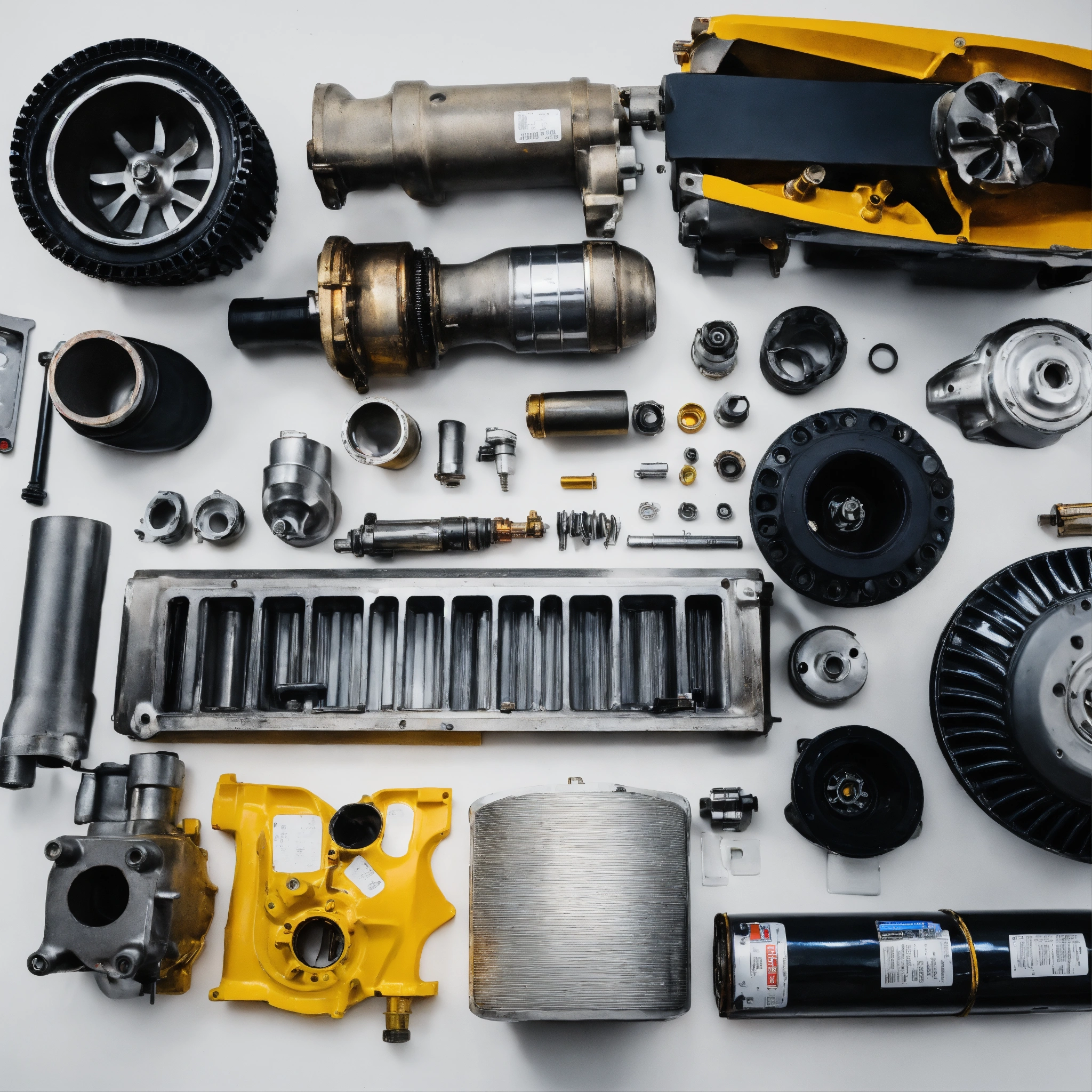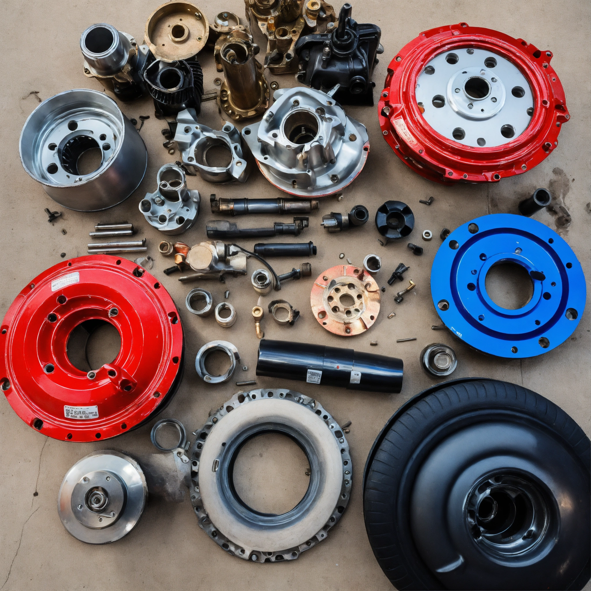 A photo of a variety of automotive parts, the parts are new and in good condition, the background is a white wall