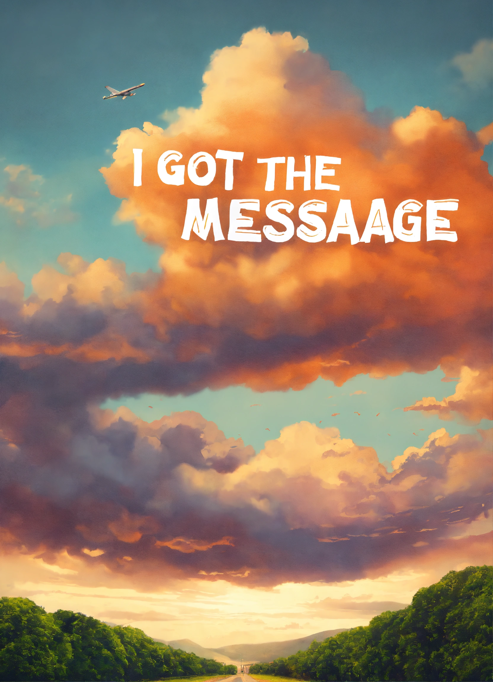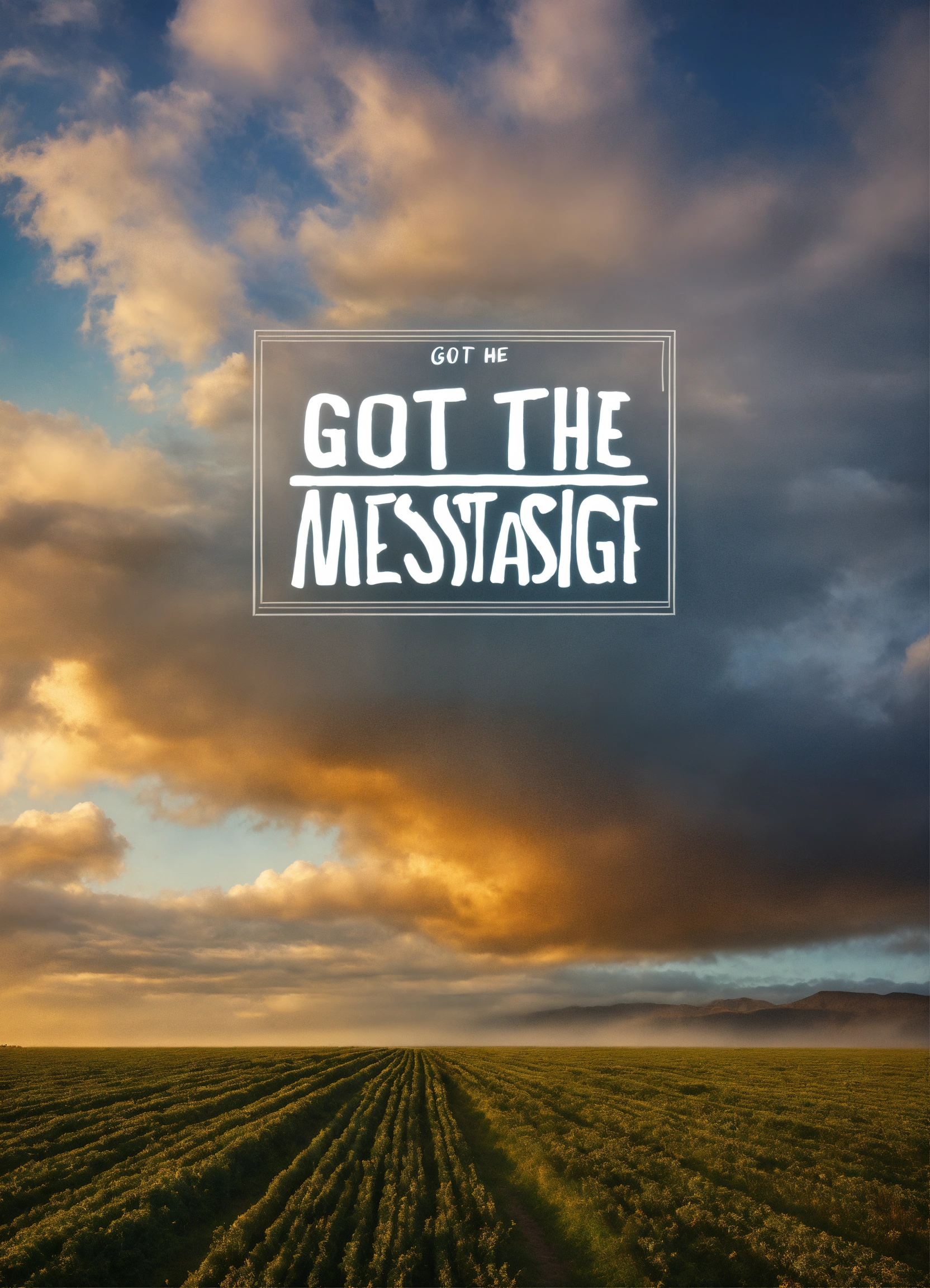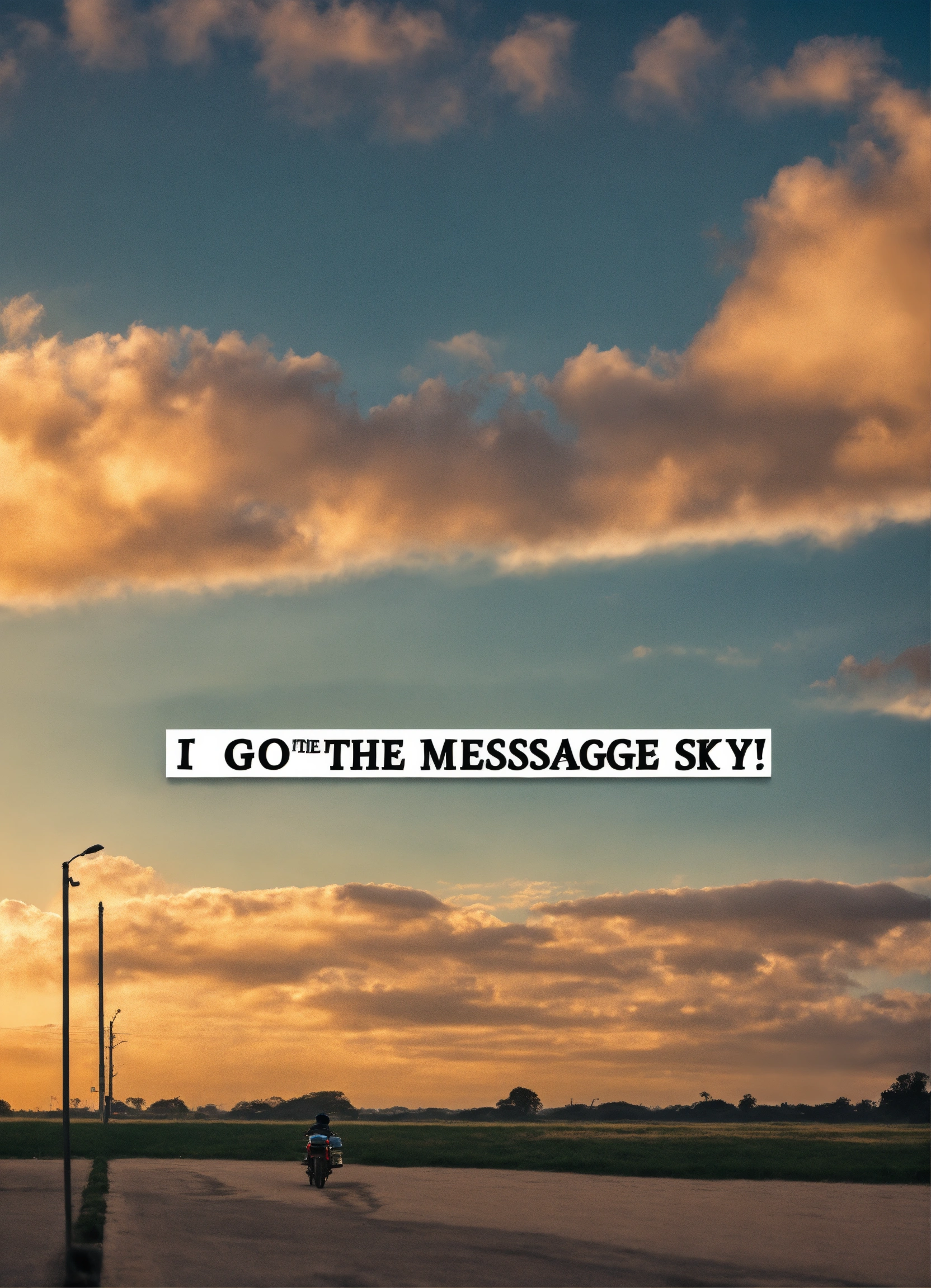 Genrate a cloudy sky with the words inside a banner saying "i got the message"