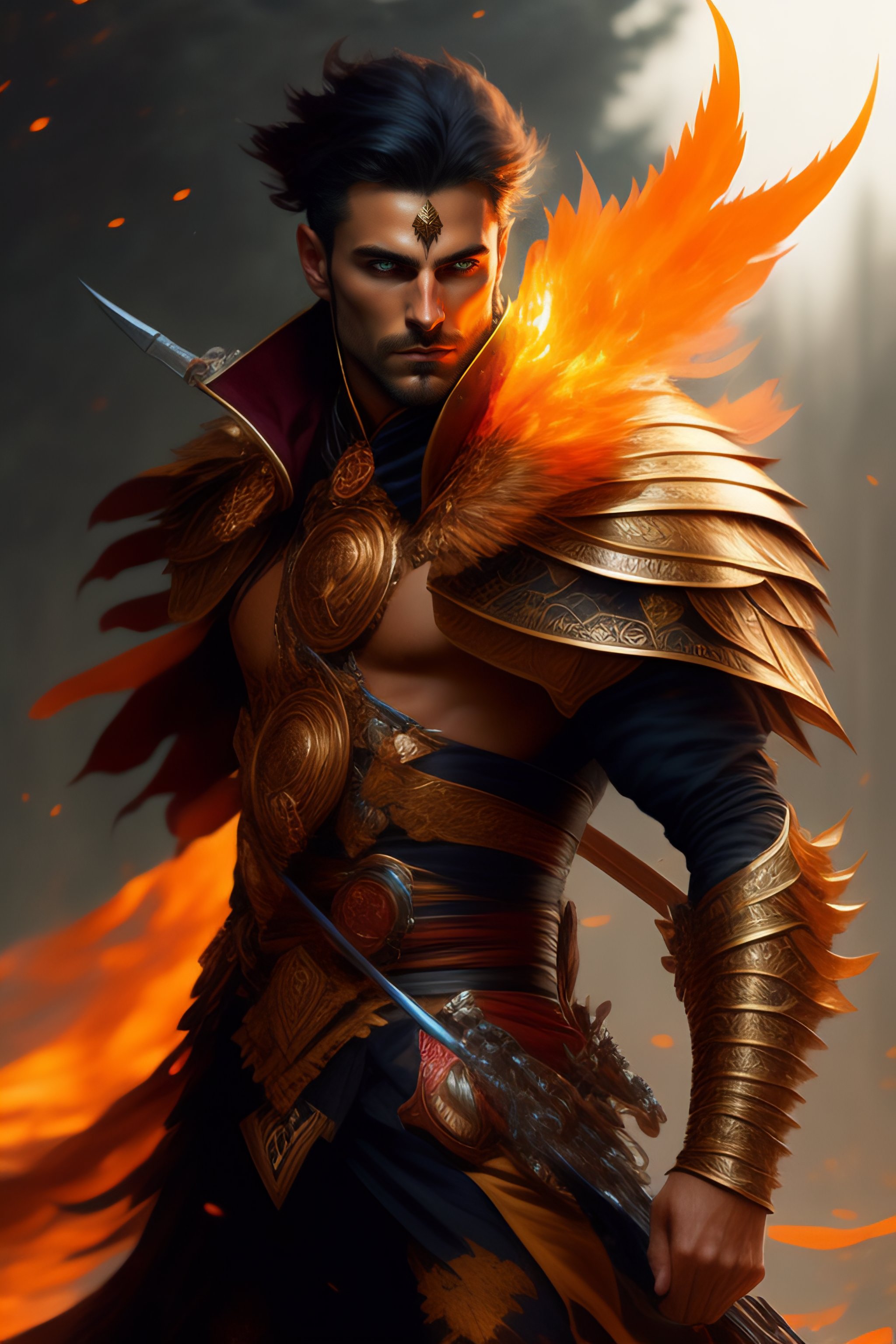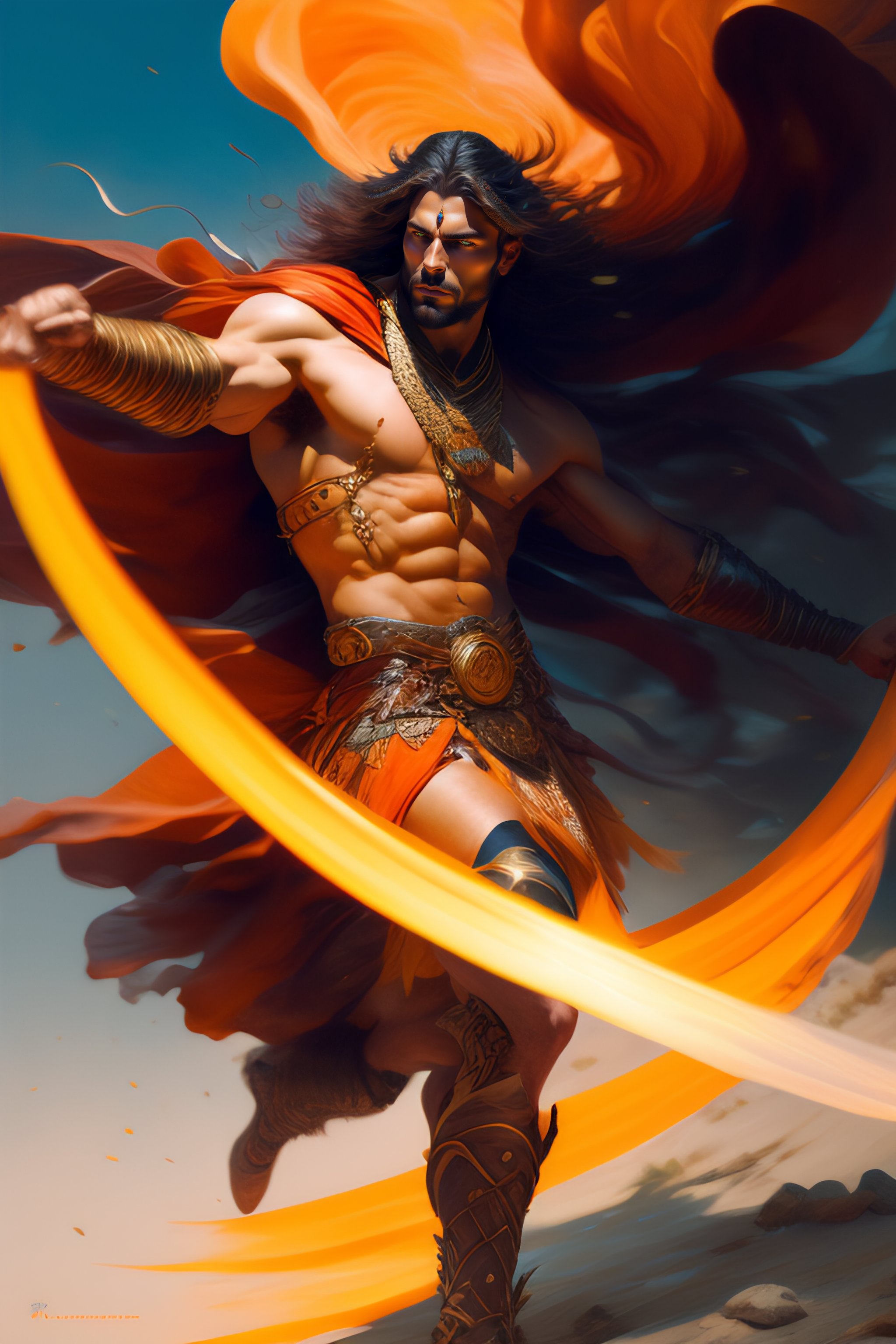 Western male caucasian warrior, orange spike aura in motion, damaged japanese clothes, floating pieces, painted by art by tsuyoshi nagano, greg rutkowski, artgerm, alphonse mucha, spike painting
