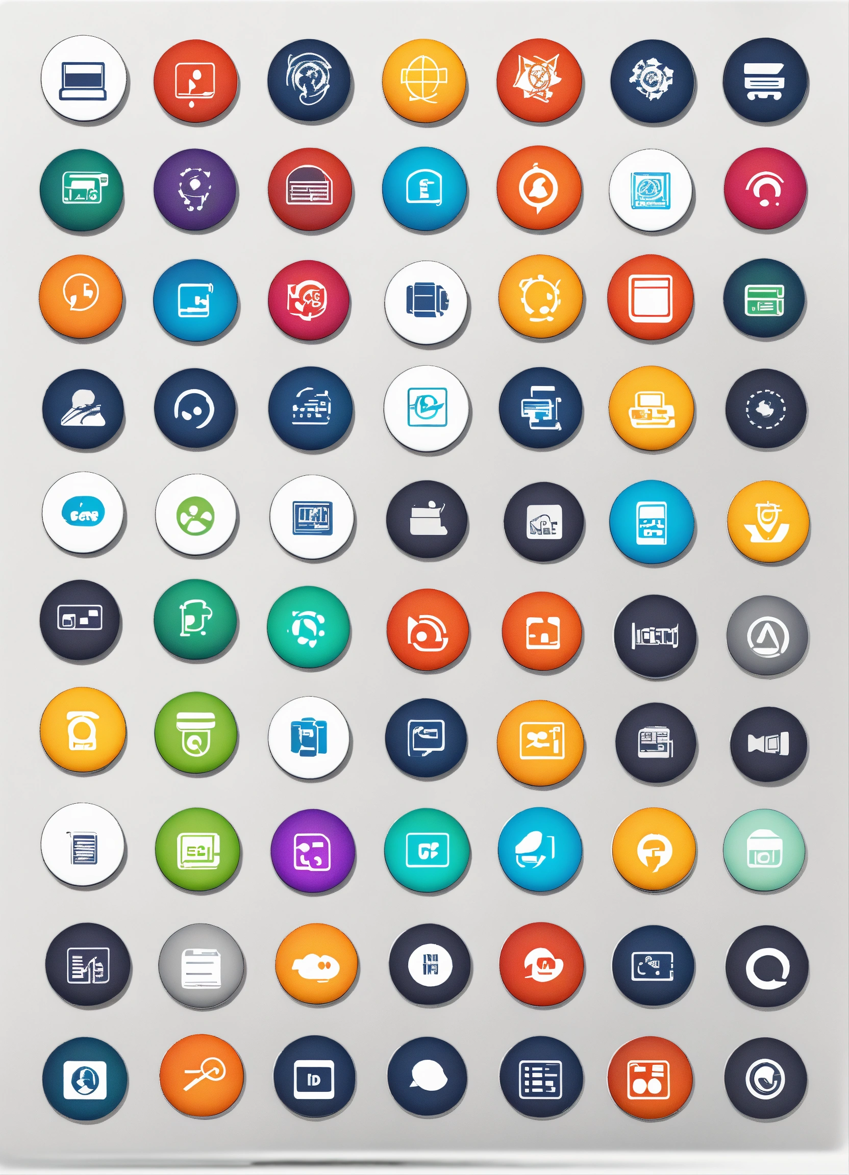 Product development button set internet. containing innovation, prototype, design, research, testing, product launch, conception and marketing icons. solid button collection. white backgroun