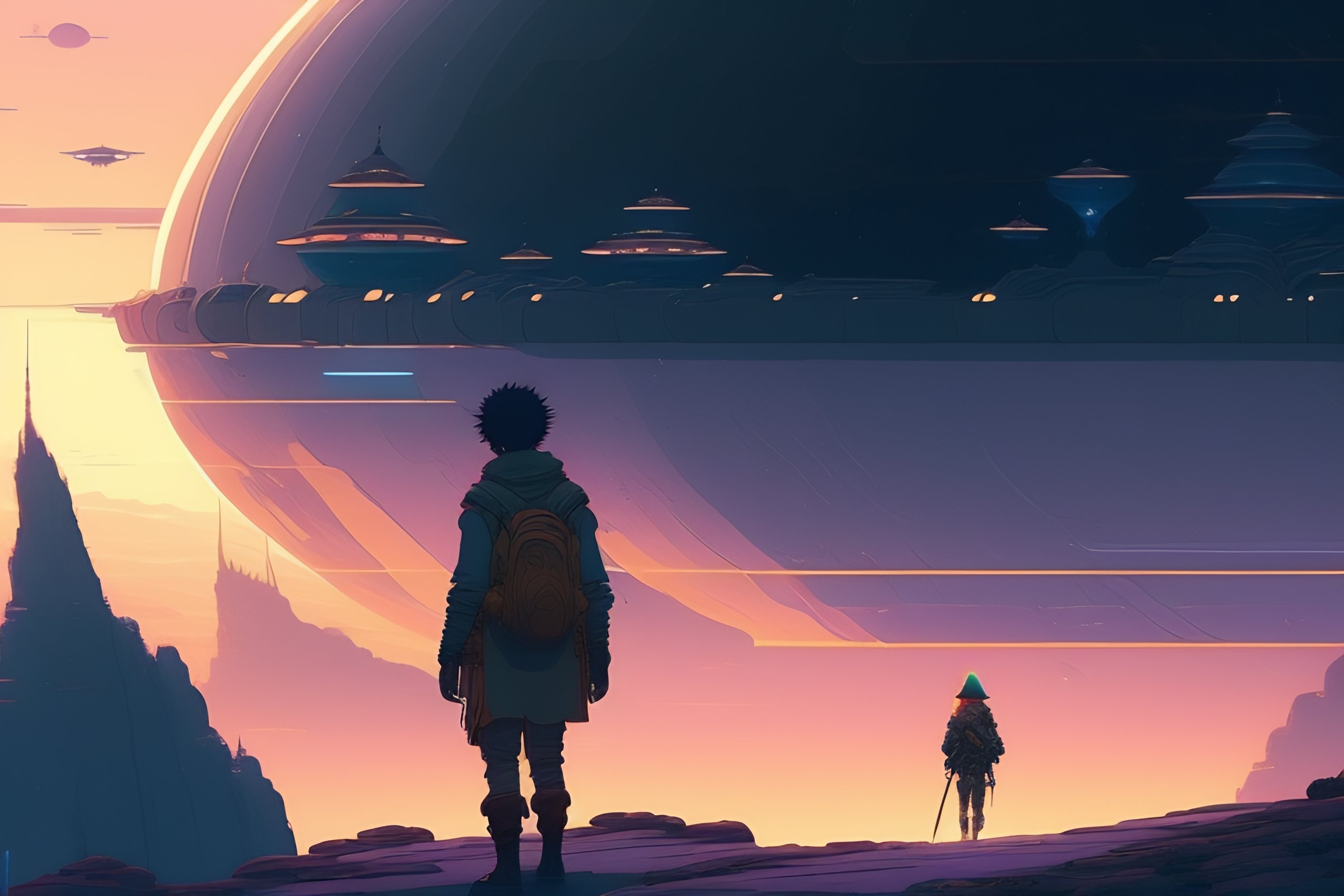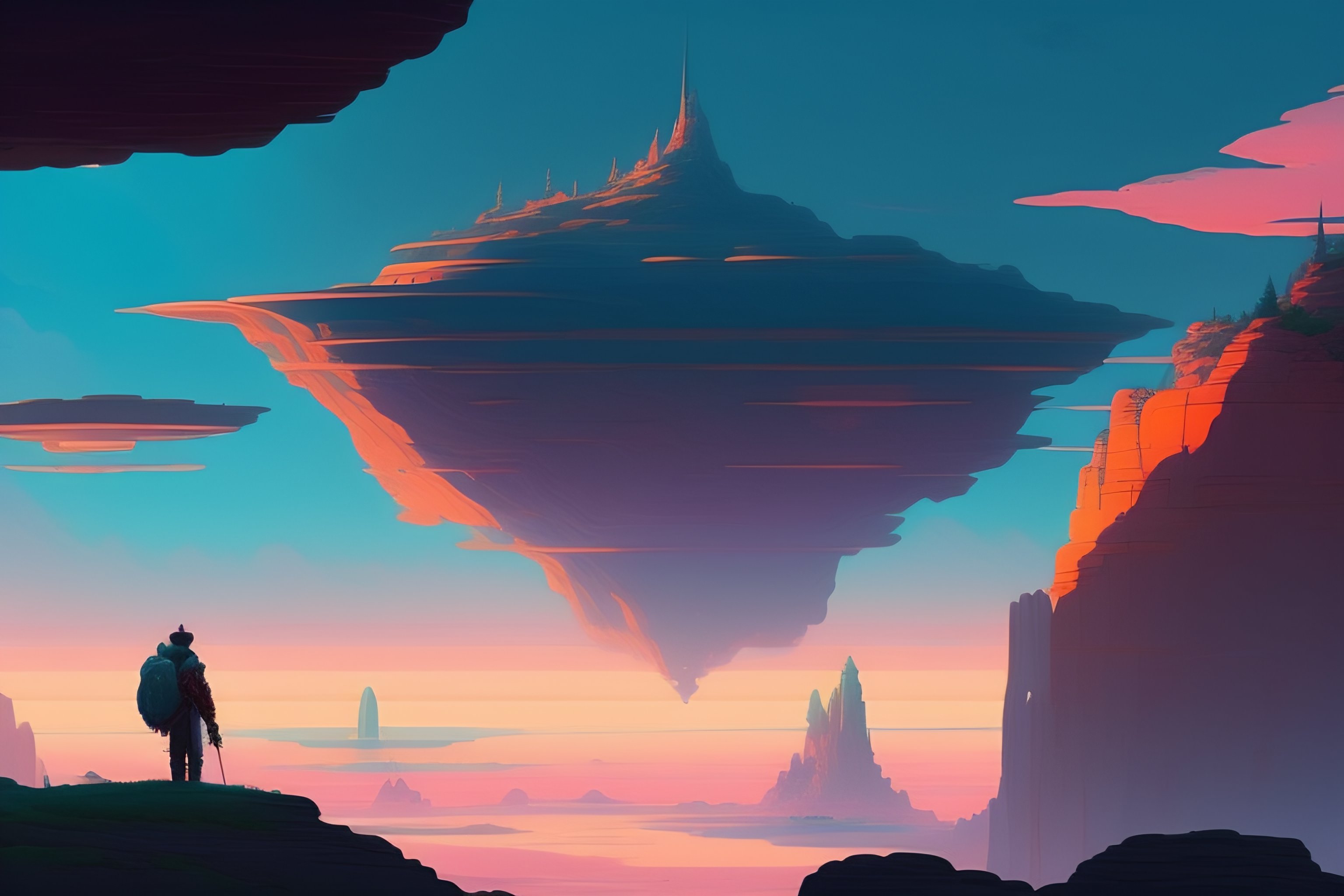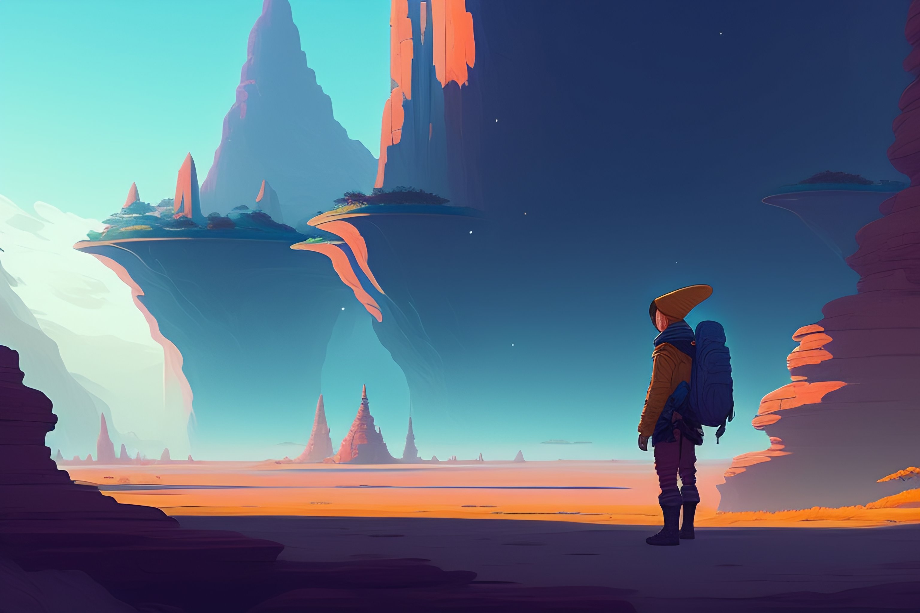 Struggling adventurer reaching because he is falling behind, alien landscape, illustration, wide shot, subtle colors, concept art by josan gonzales and wlop, laurie greasley, jordan grimmer and james jean, highly detailed, fantasy, magical realism, futuristic, sharp focus, trending on artstation, hq, deviantart, art by artgem, in the style of breath of the wild, ghibli