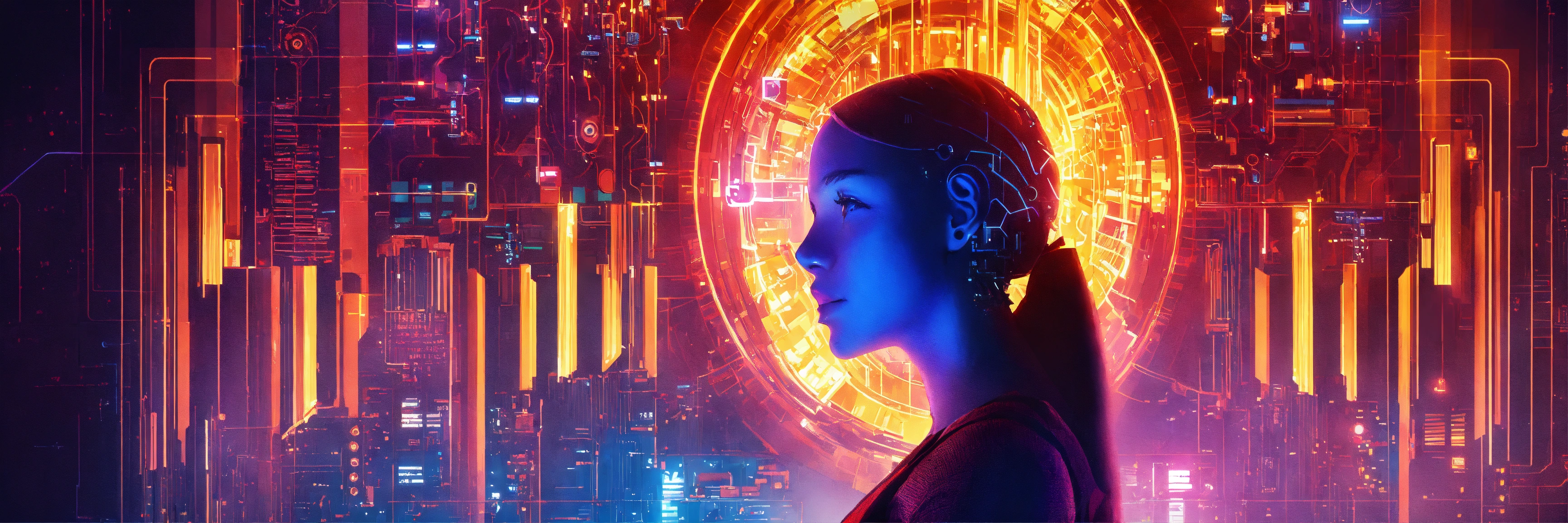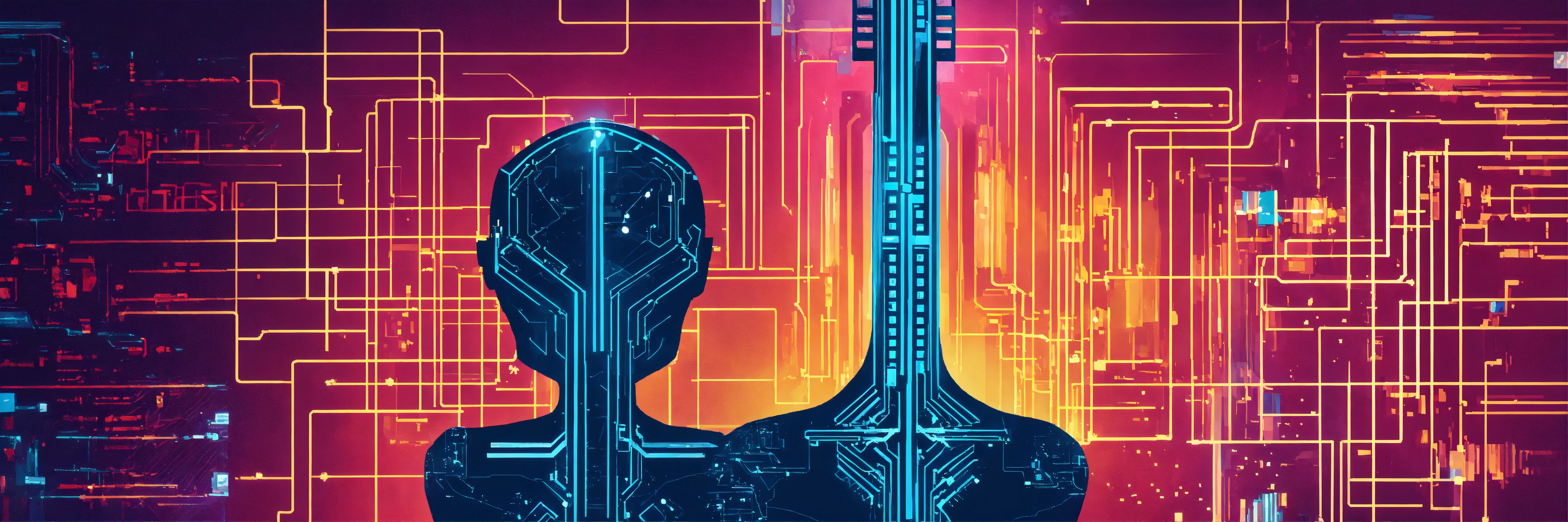 Design an eye-catching cover image for a blog titled 'unleash the power within how ai is revolutionizing every part of business.' the image should convey the idea of artificial intelligence (ai) as a catalyst for transformative change across different business departments, such as marketing, finance, supply chain, and hr. use a blend of technology symbols, business elements, and a futuristic touch to symbolize innovation and progress.