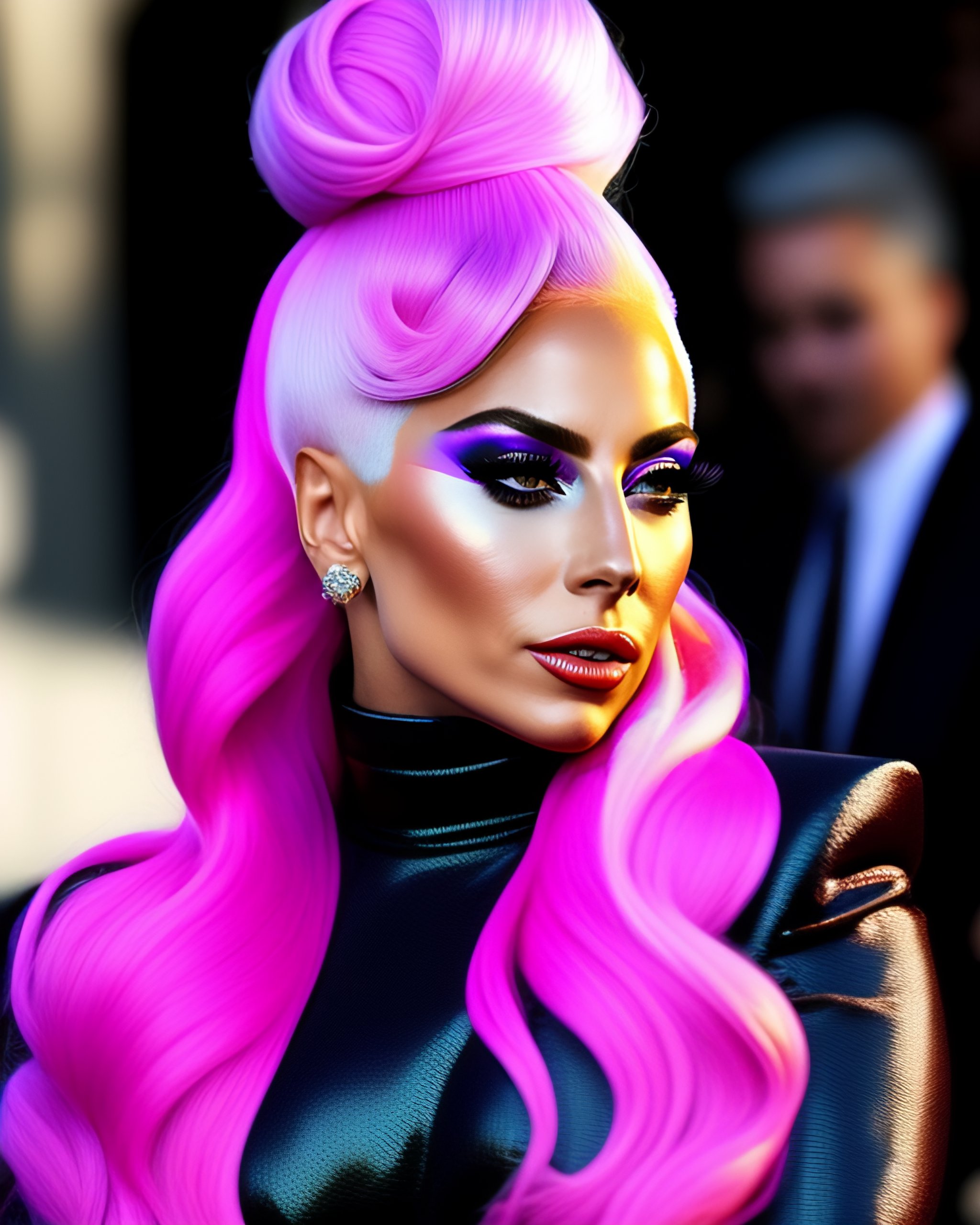 Lady gaga pink hair candid
