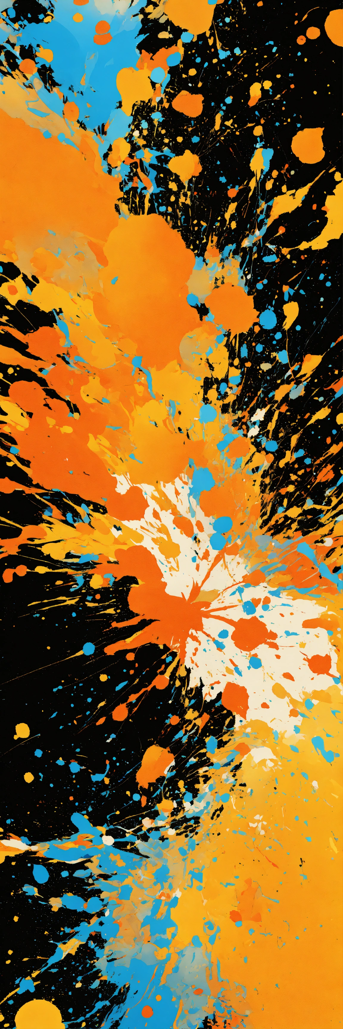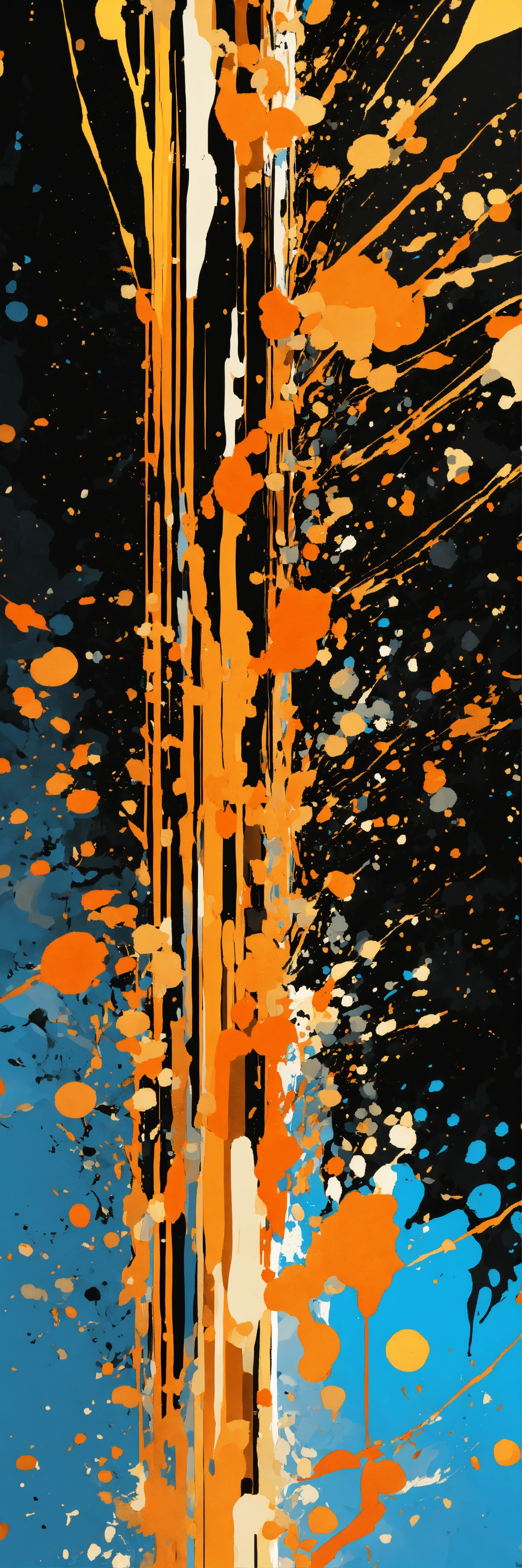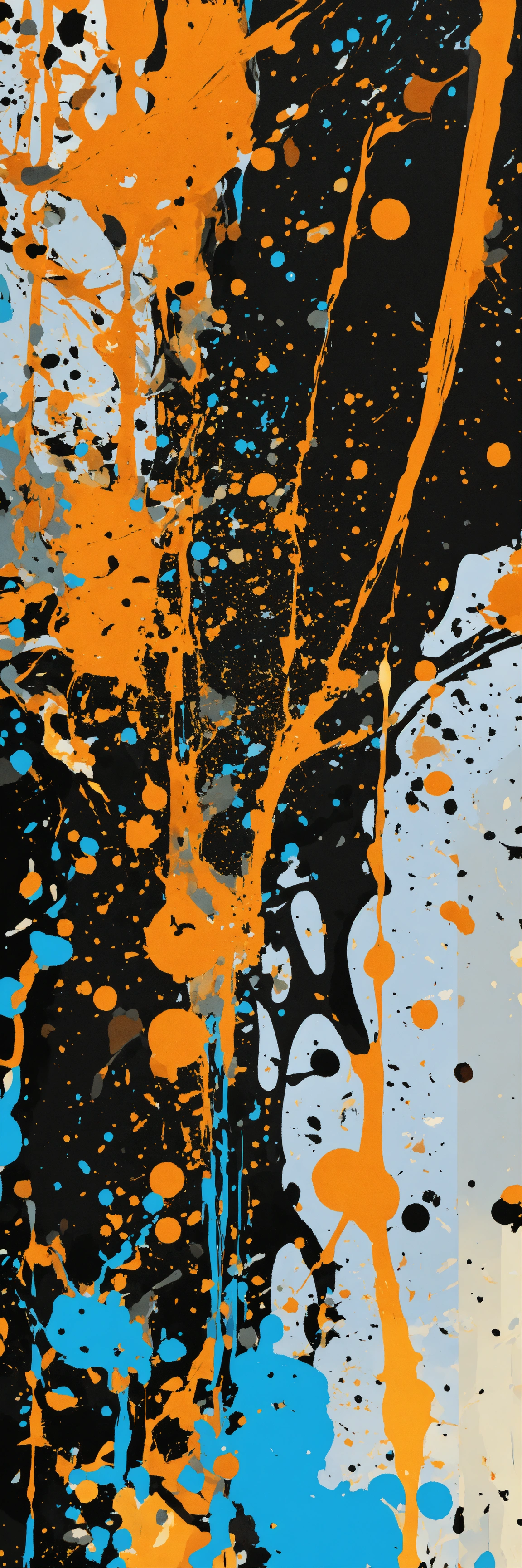 Futuristic paint splatter, panther black, look, creamy white, sky blue, orange colors, design, high-end designer look, vector, high resolution