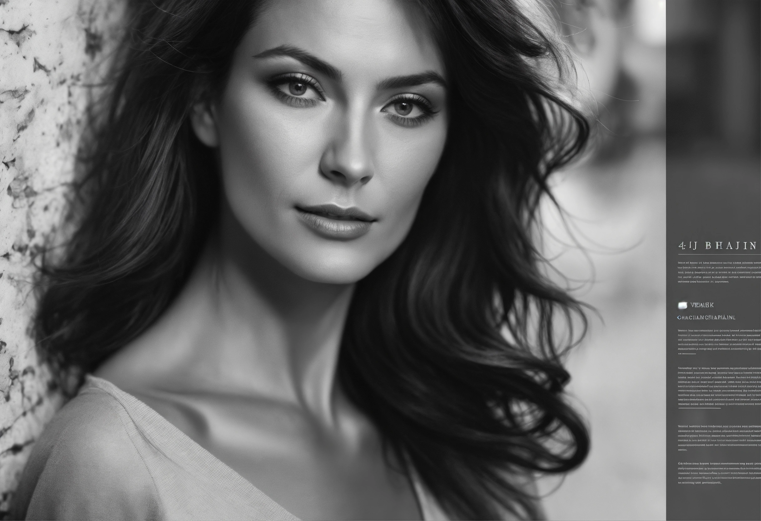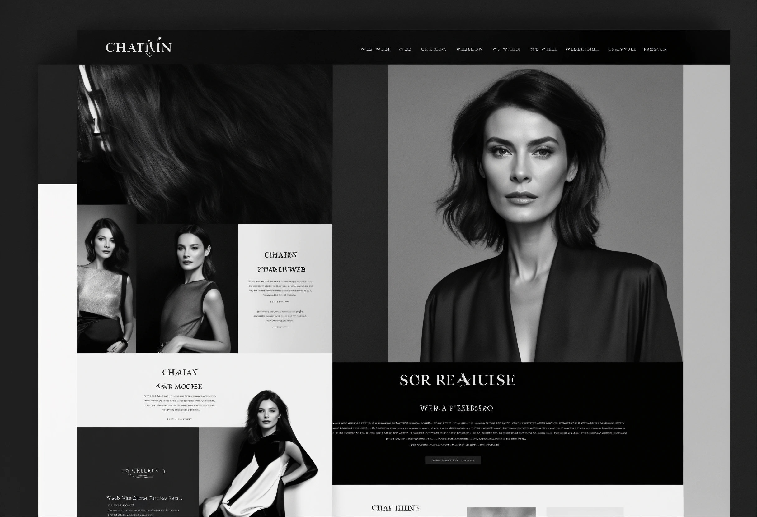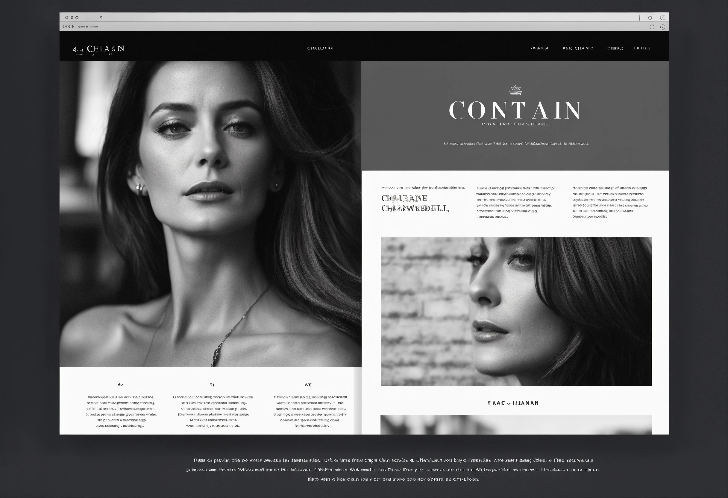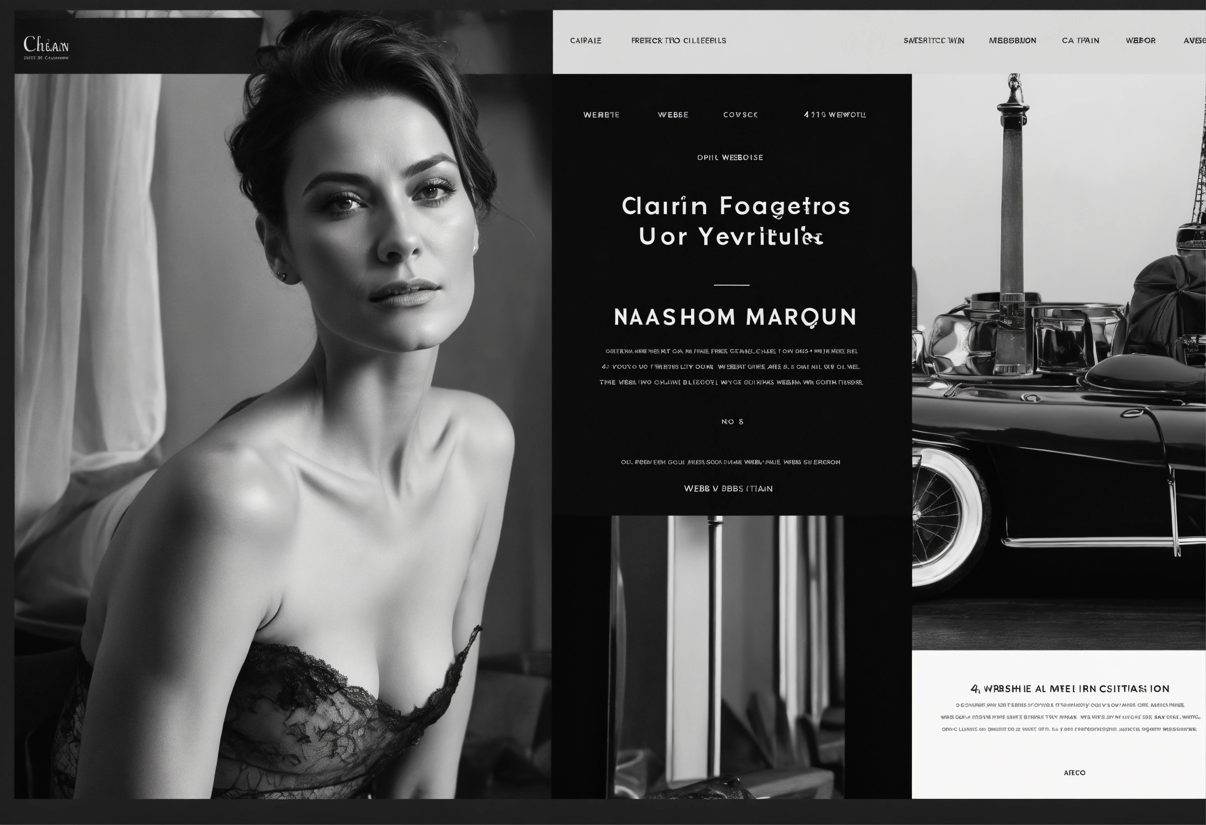 Variant, website template, 5 pages, online portfolio in black and white, with very classy 45-year-old french actress chatain fashion model, web design model representation