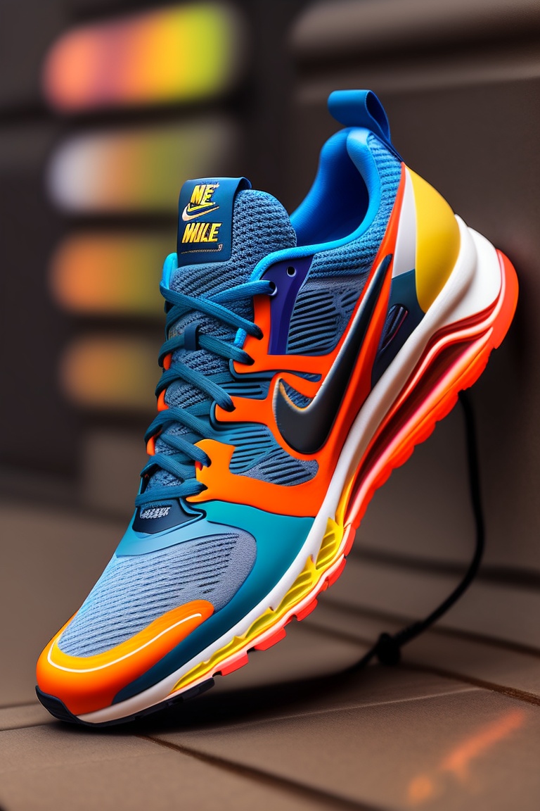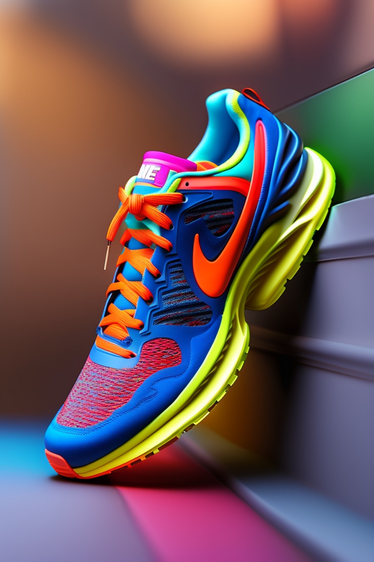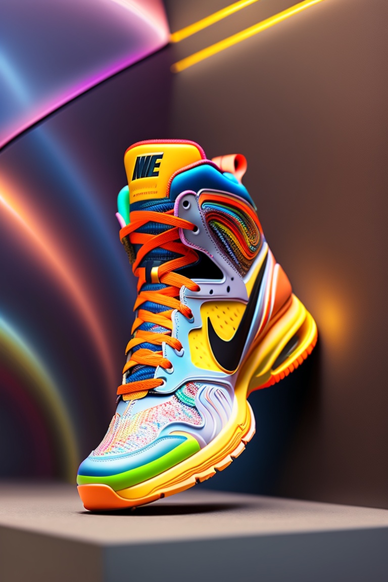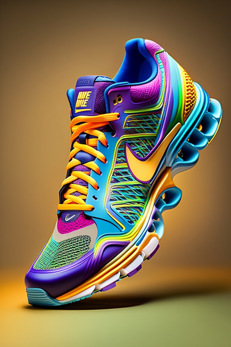 A stunning interpretation of nike runnig shoe sneakers, made of rubber, advertsiement, funky, highly detailed and intricate, very colorful, hypermaximalist, ornate, highly detailed