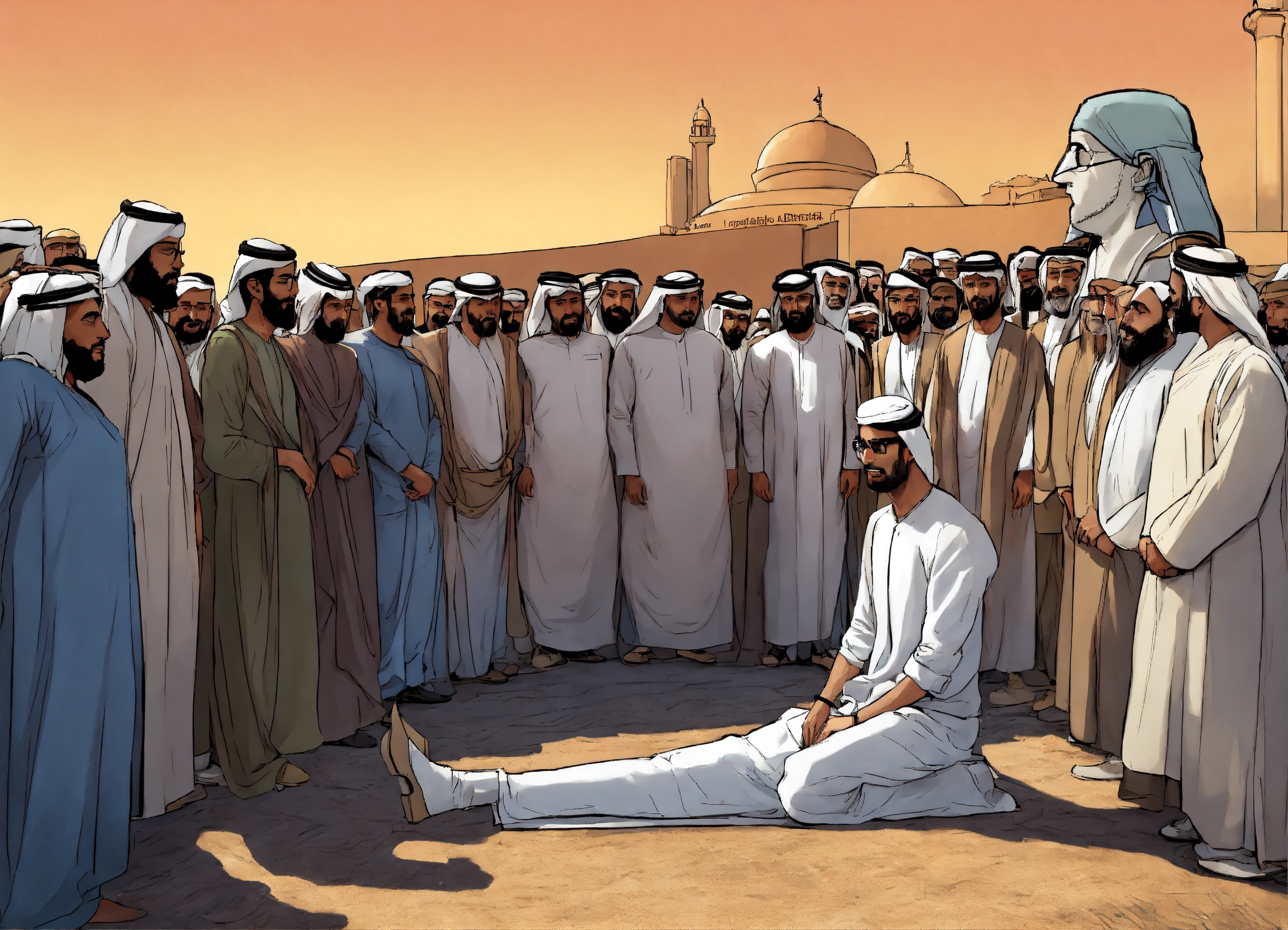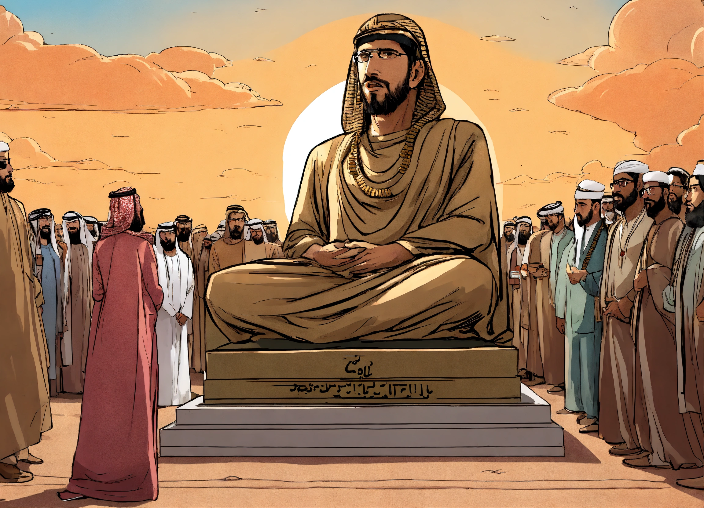 Sundar pichai comic strip of arabs prostrate themselves to the statue scene