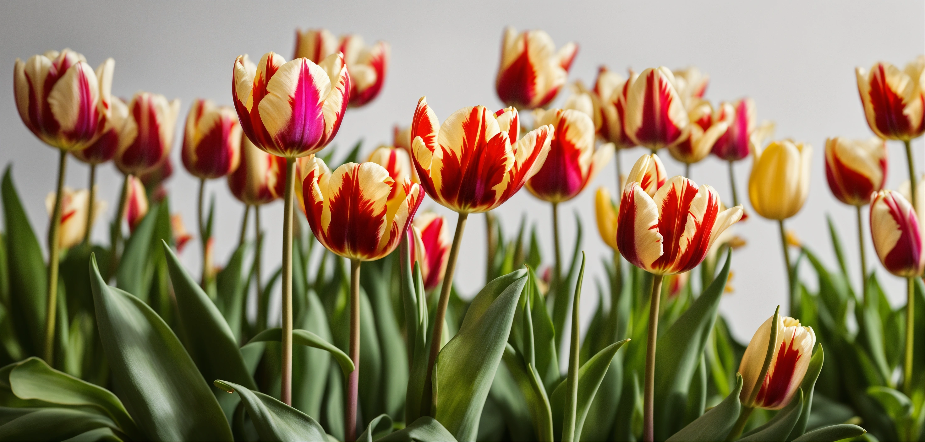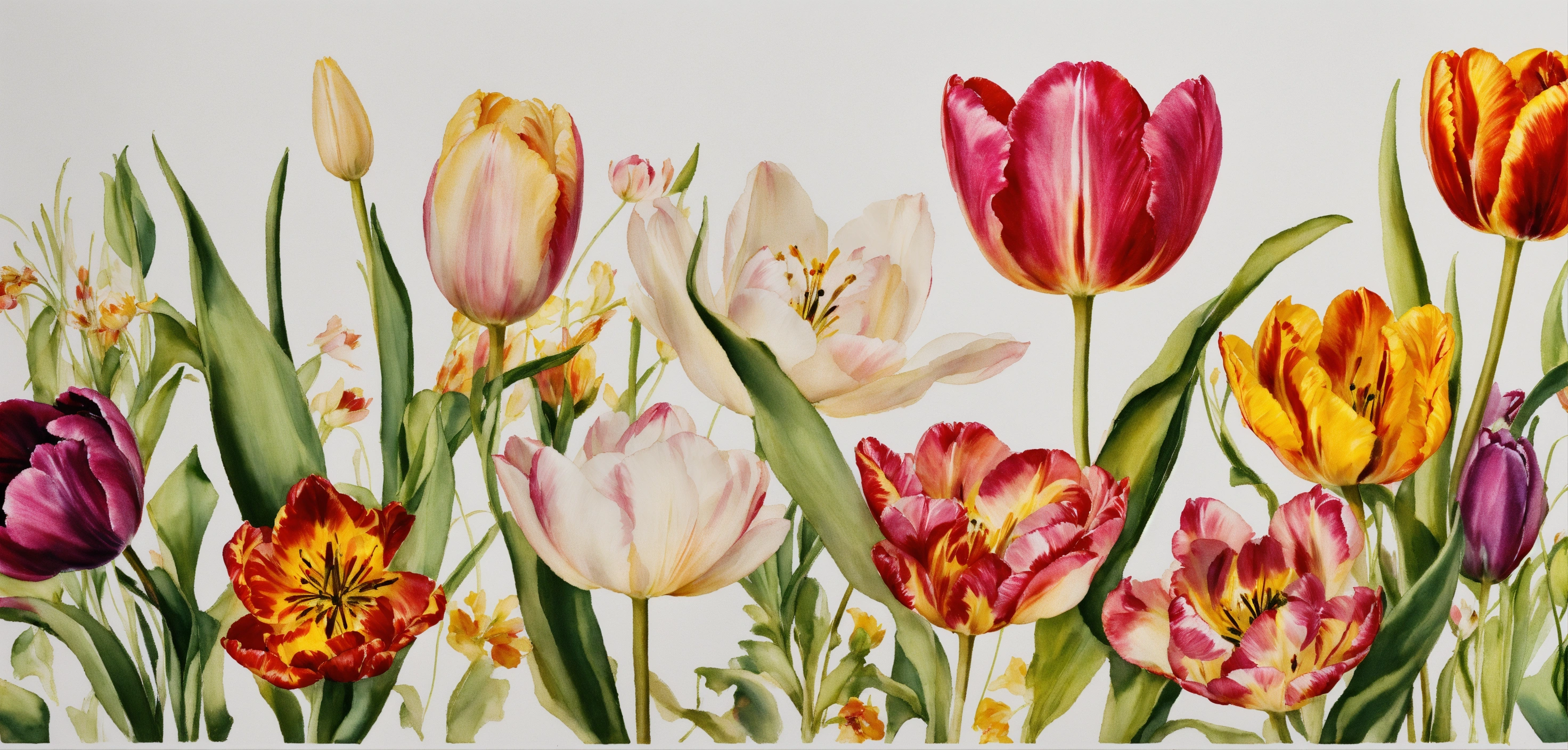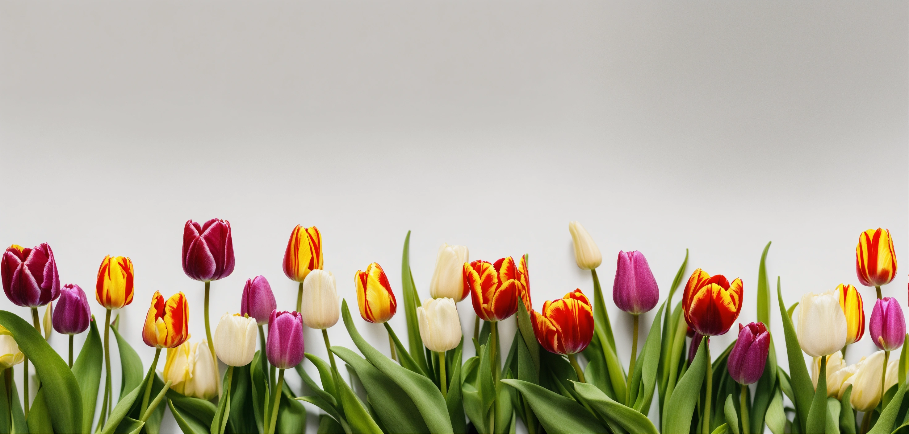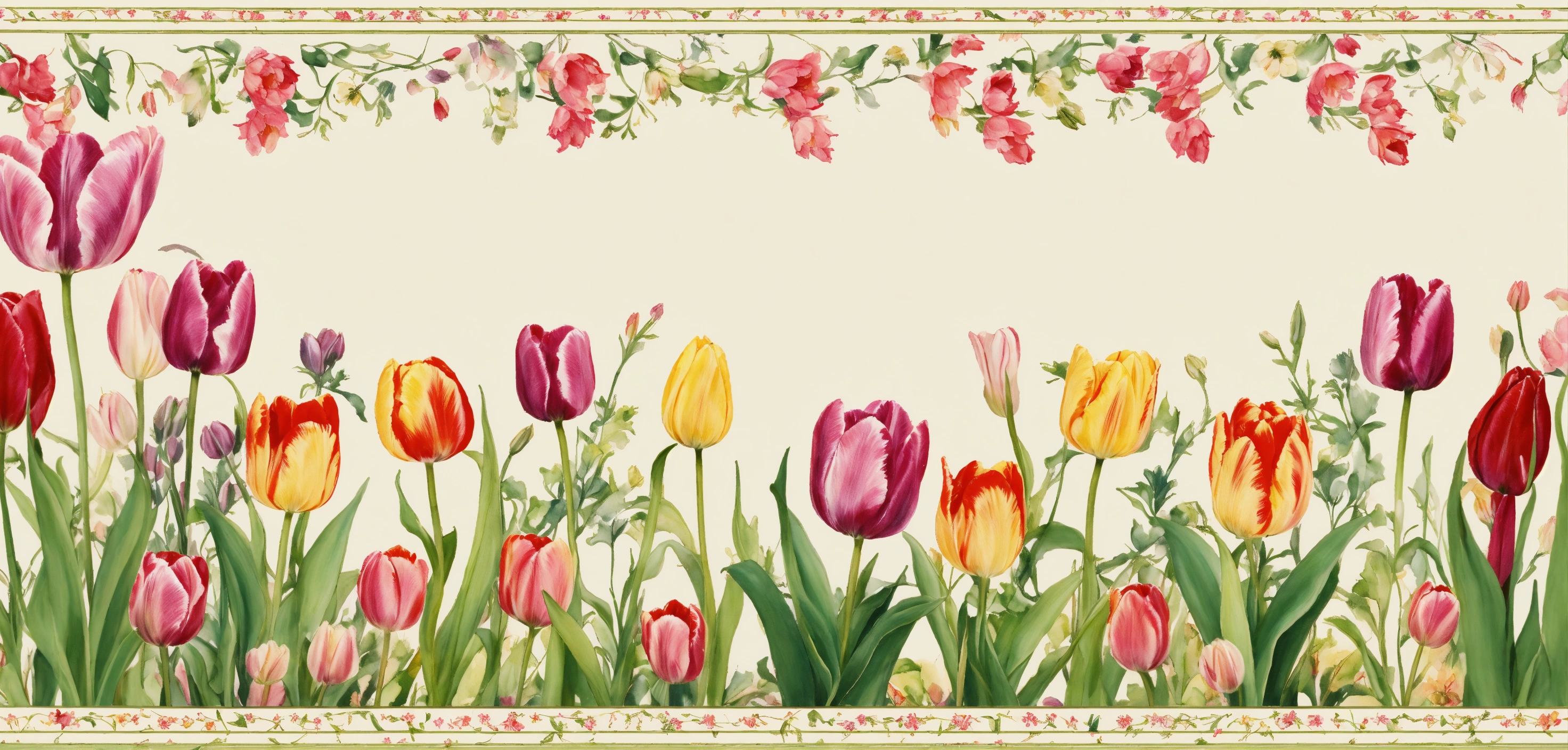White background with small floral tulip borders in the corners