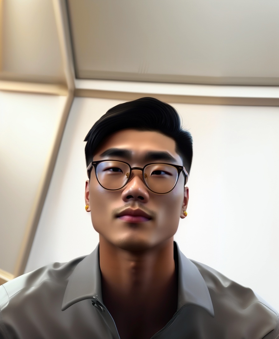 29 years old male, asian, smart, glasses black, short slightly curly hair, height 173cm, slim, vietnamese, face small