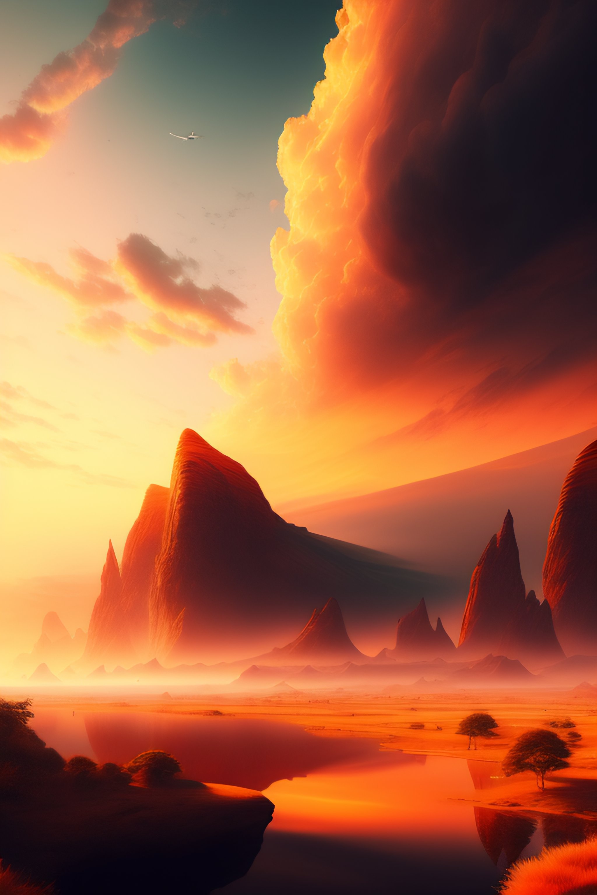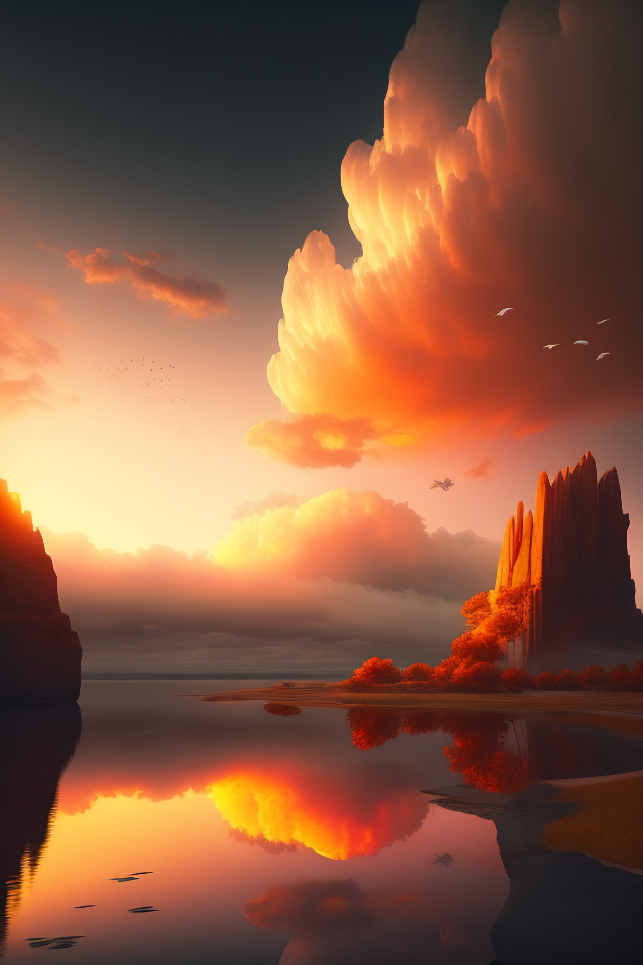 A poster, cover, 2000s, marketing, magazine, photography, backgound with clouds in white, orange, beige, tan colored sky, old school, detailed, artstation, digital painting, post-processing, masterpiece, vibrant deep colors, 8k octane beautifully detailed render
