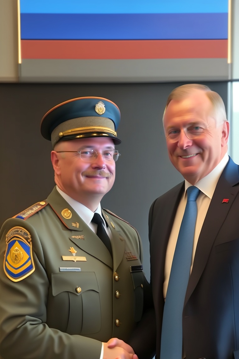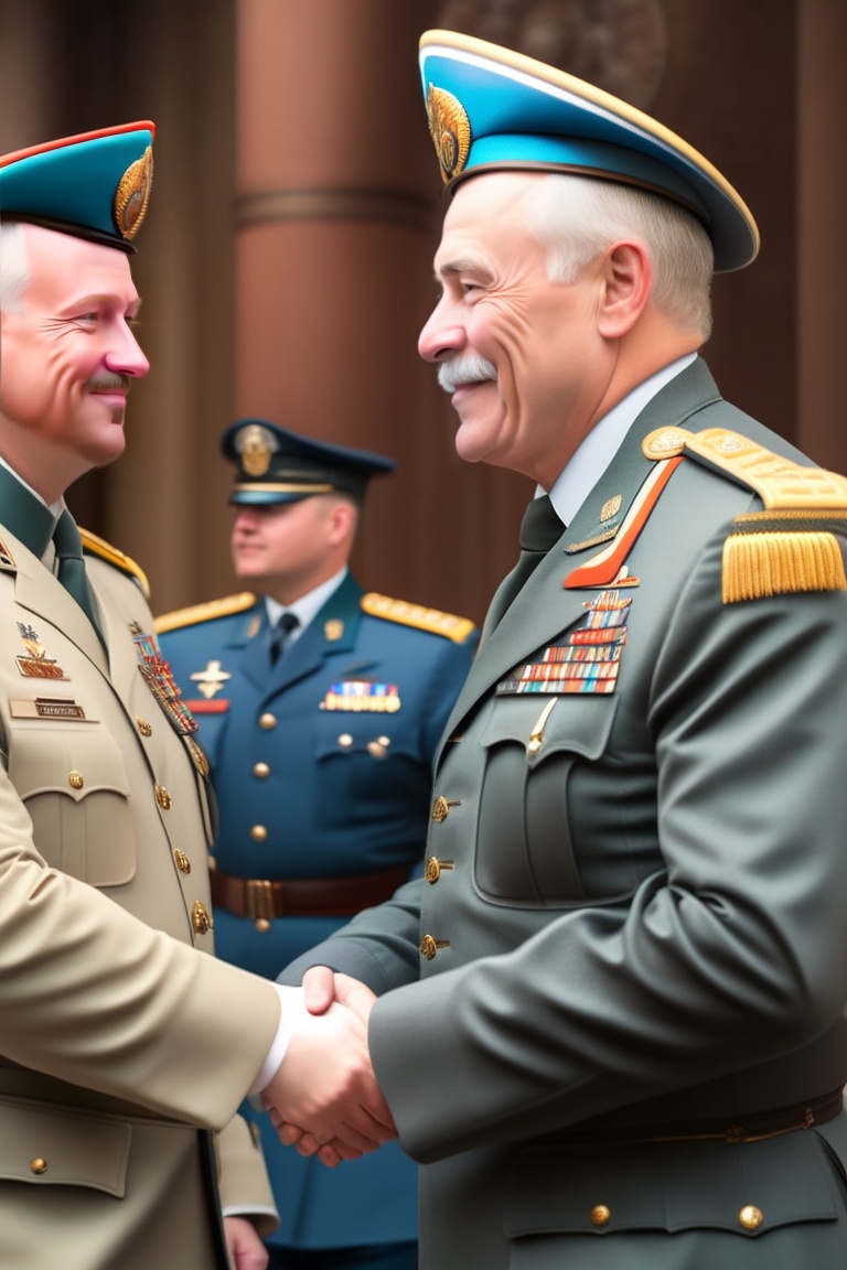 A photograph of russian intelligence officers shaking hands with wagner group members, symbolizing their close cooperation.