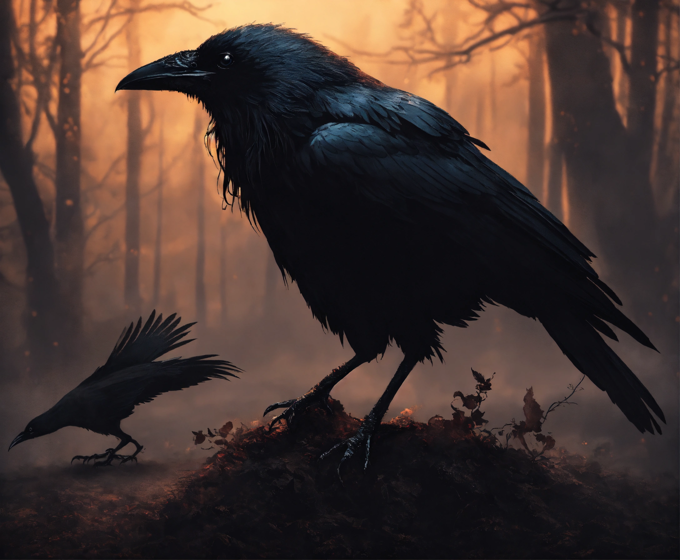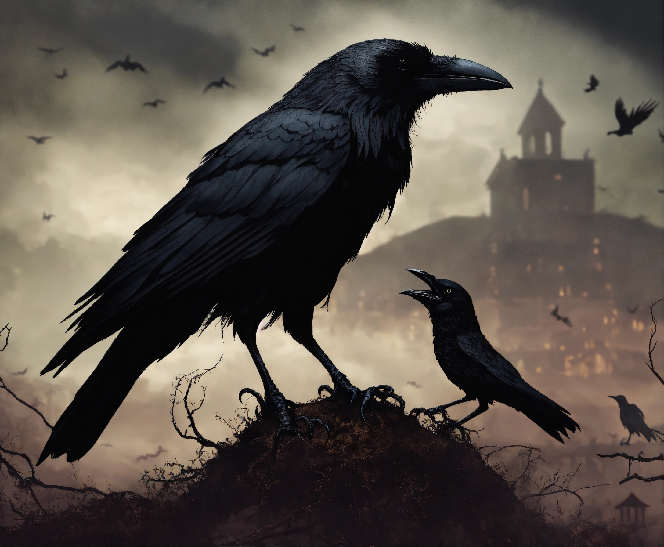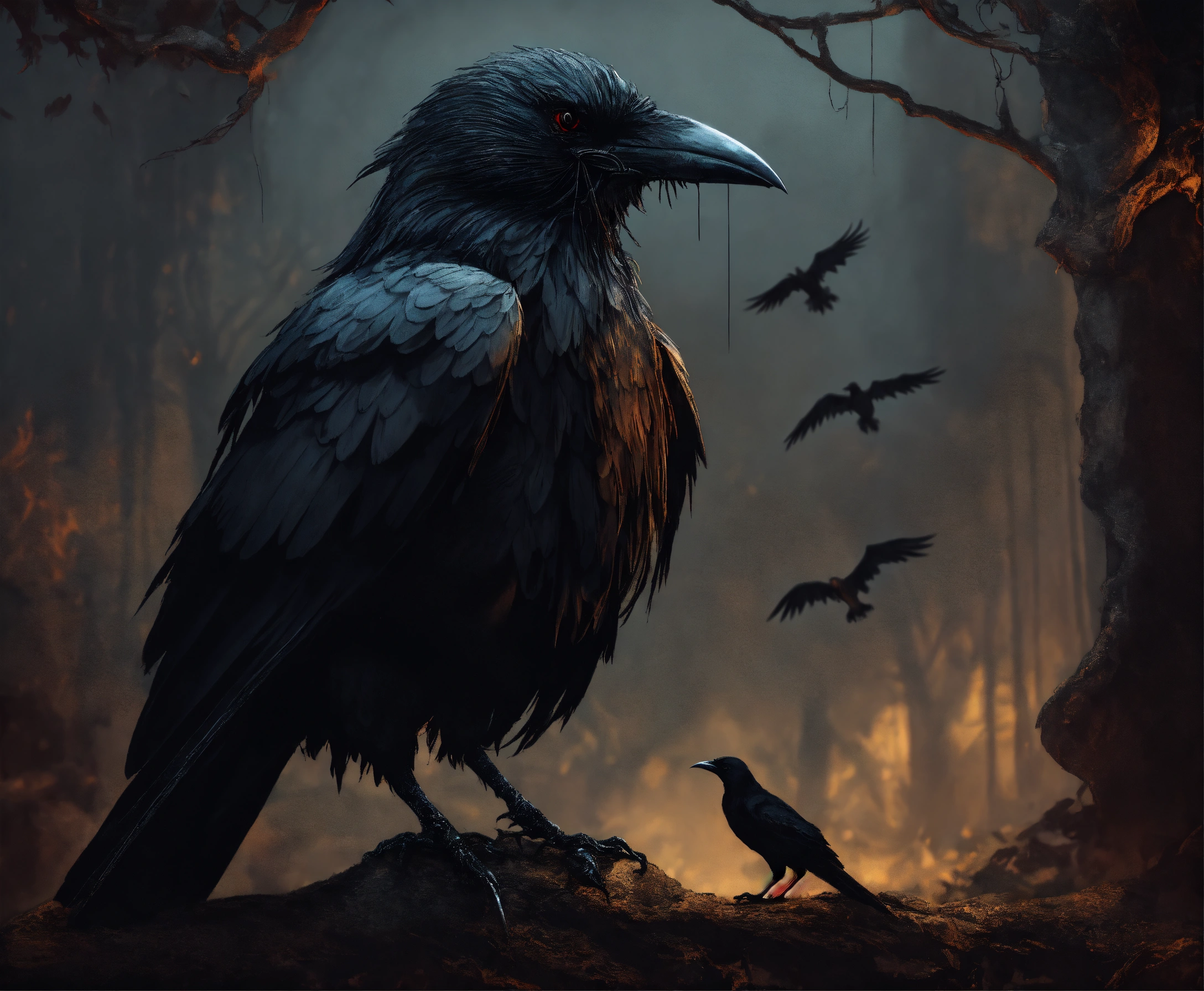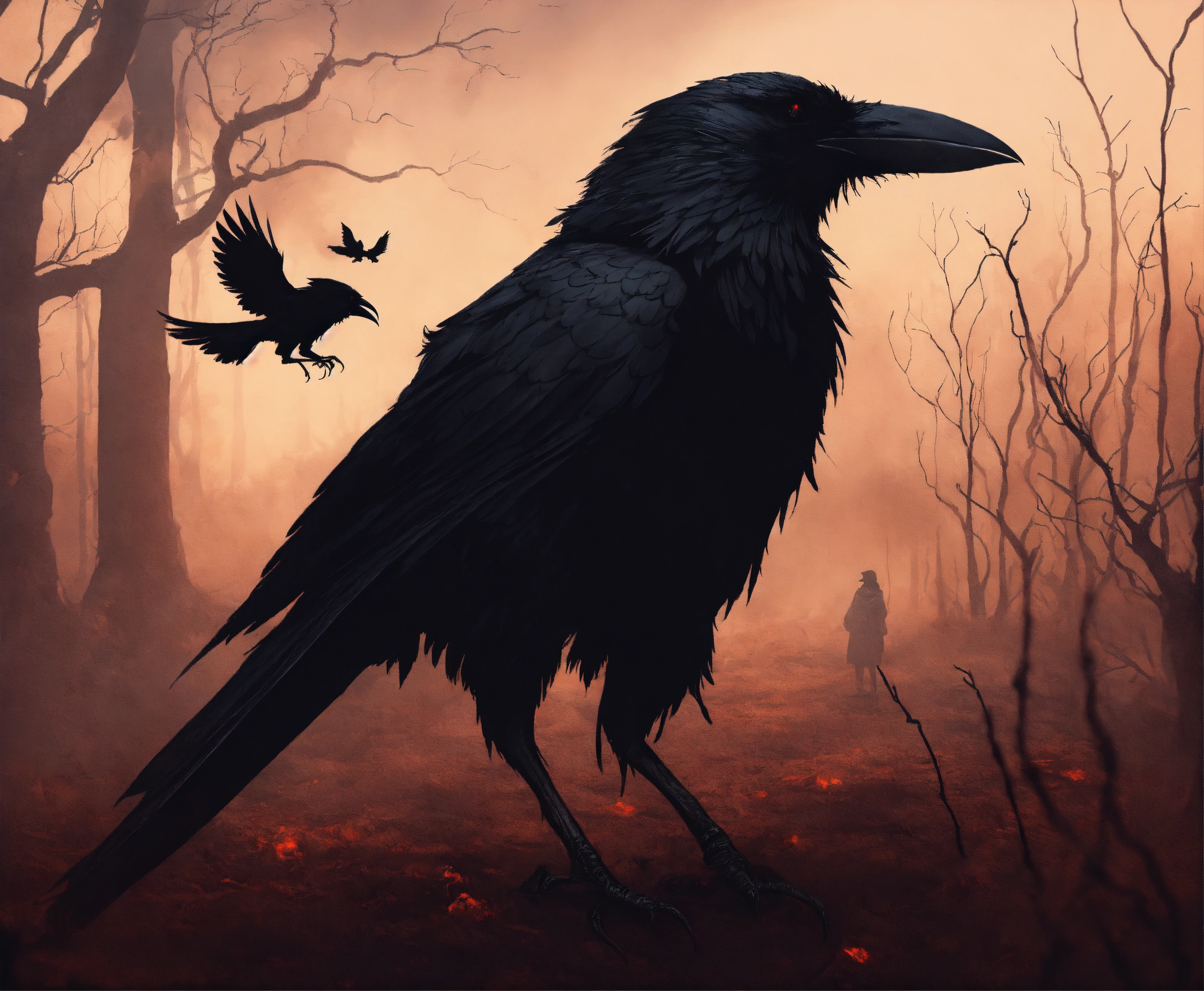 Dark aesthetic, a macabre shadow creature, holding a black crow, scary, eerie, stunning fantasy illustration, dark details, attention to detail, fantasy.