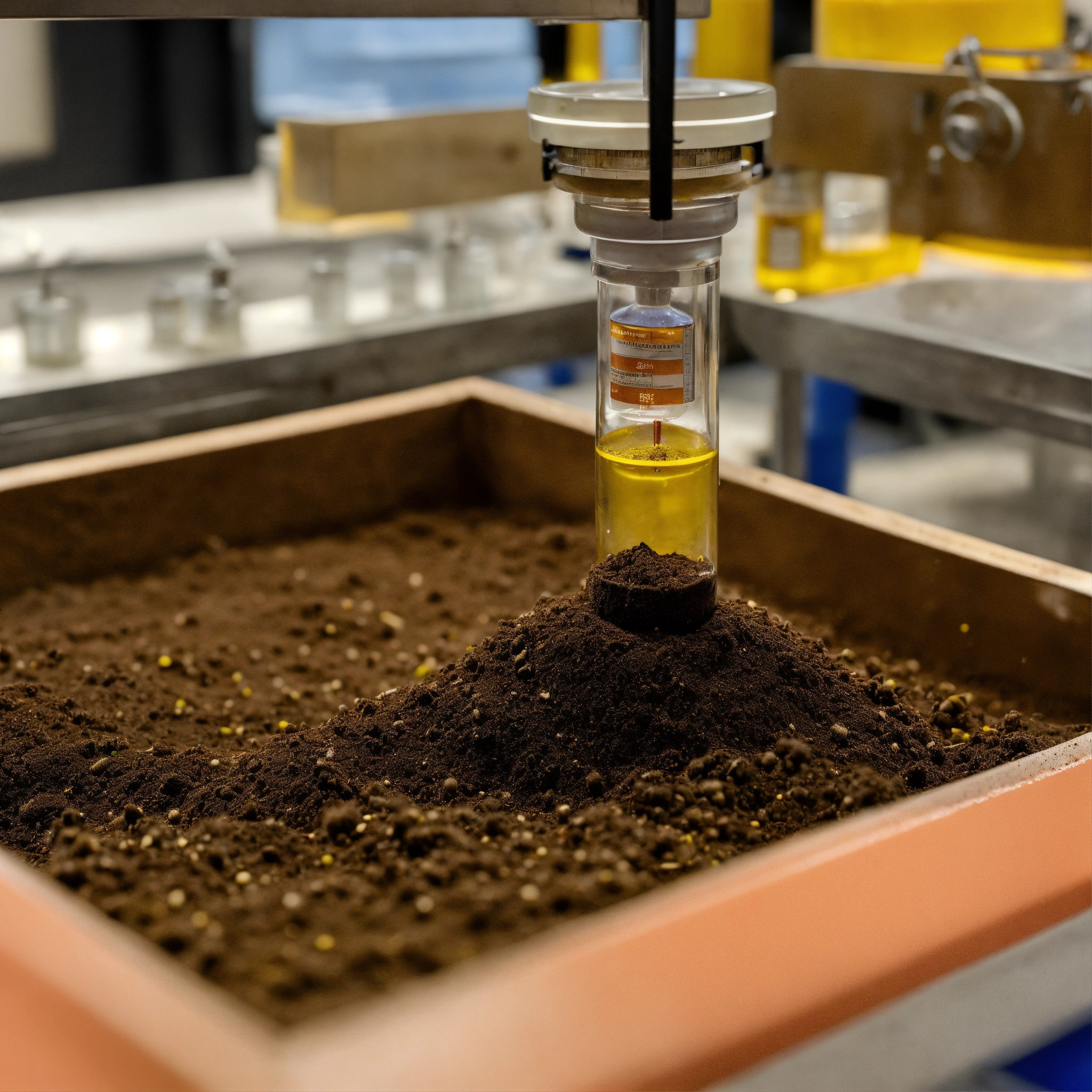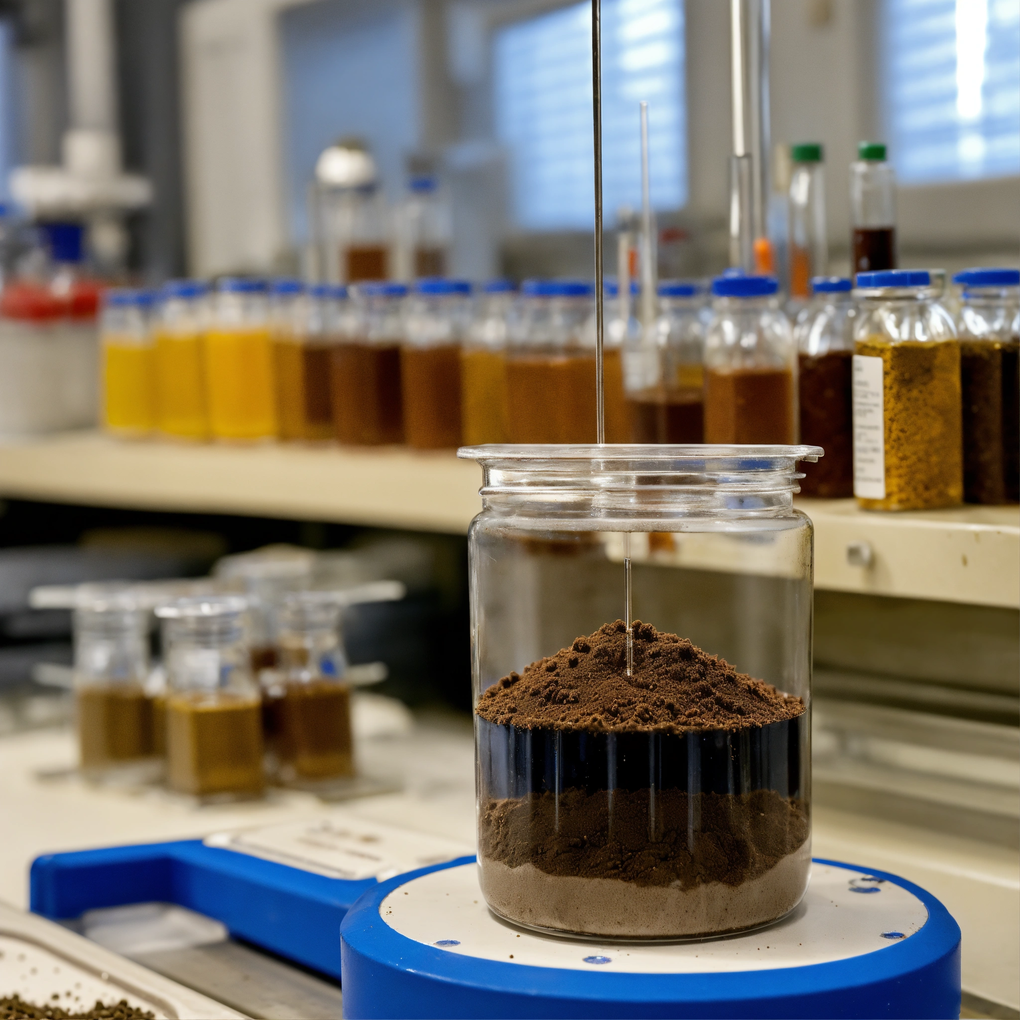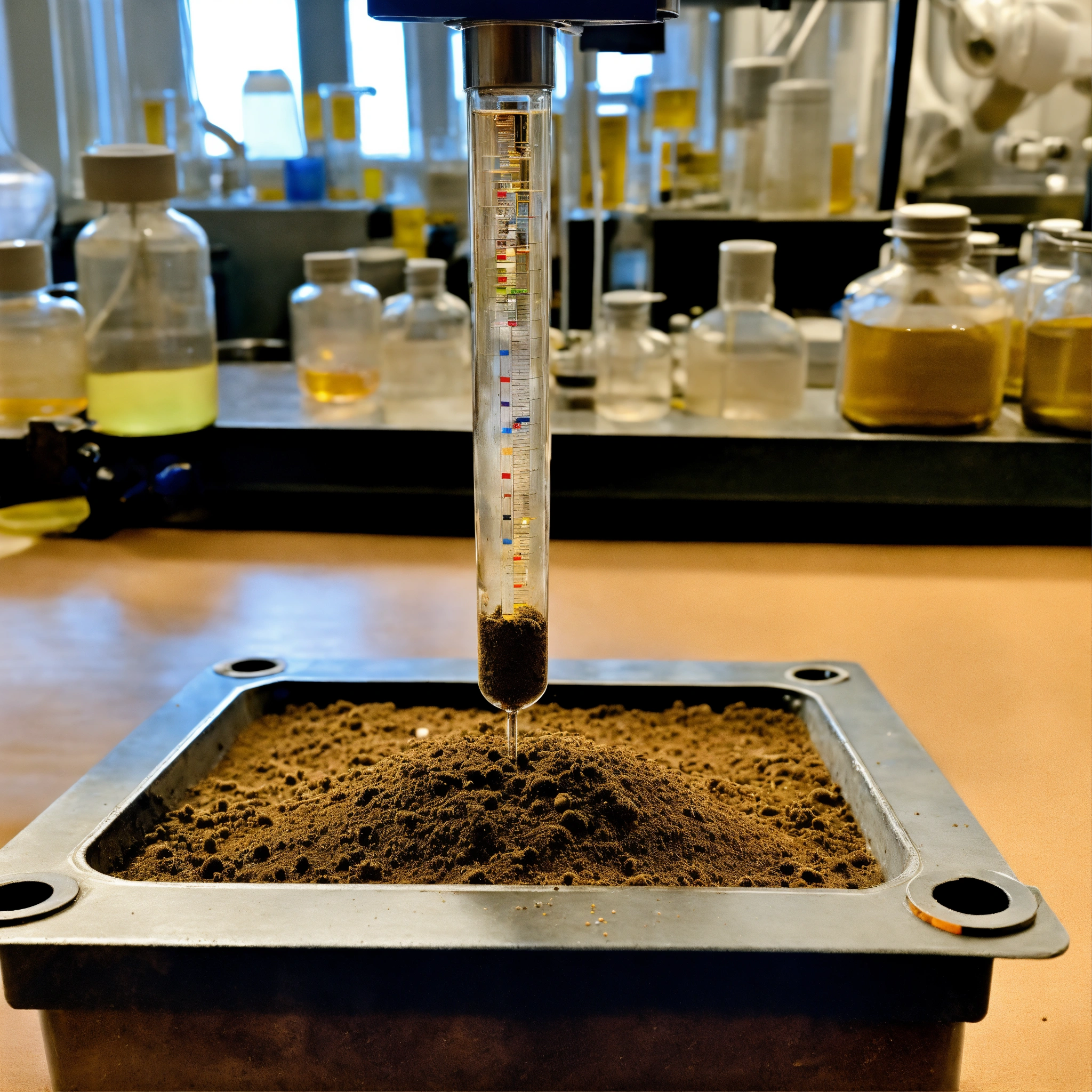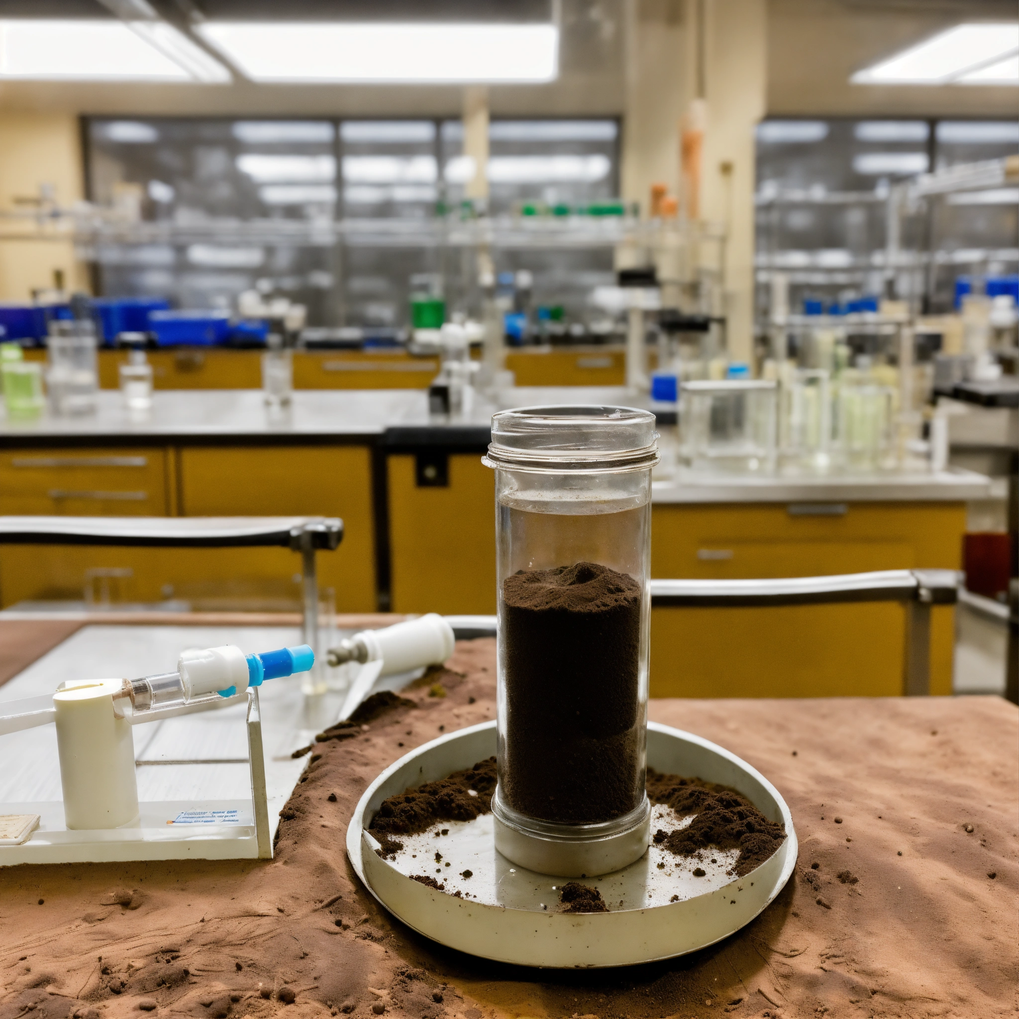 A photo of a soil sample being tested in a lab. the lab is clean and well-organized. the soil sample is being tested for various properties, such as ph, moisture content, and nutrient levels.