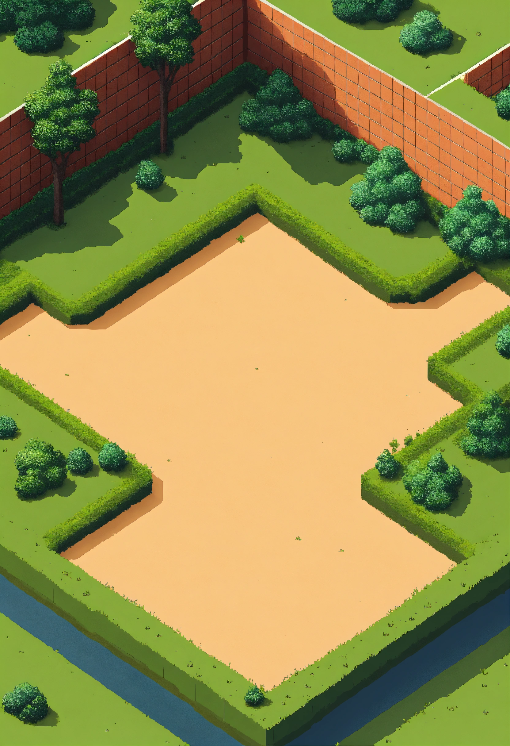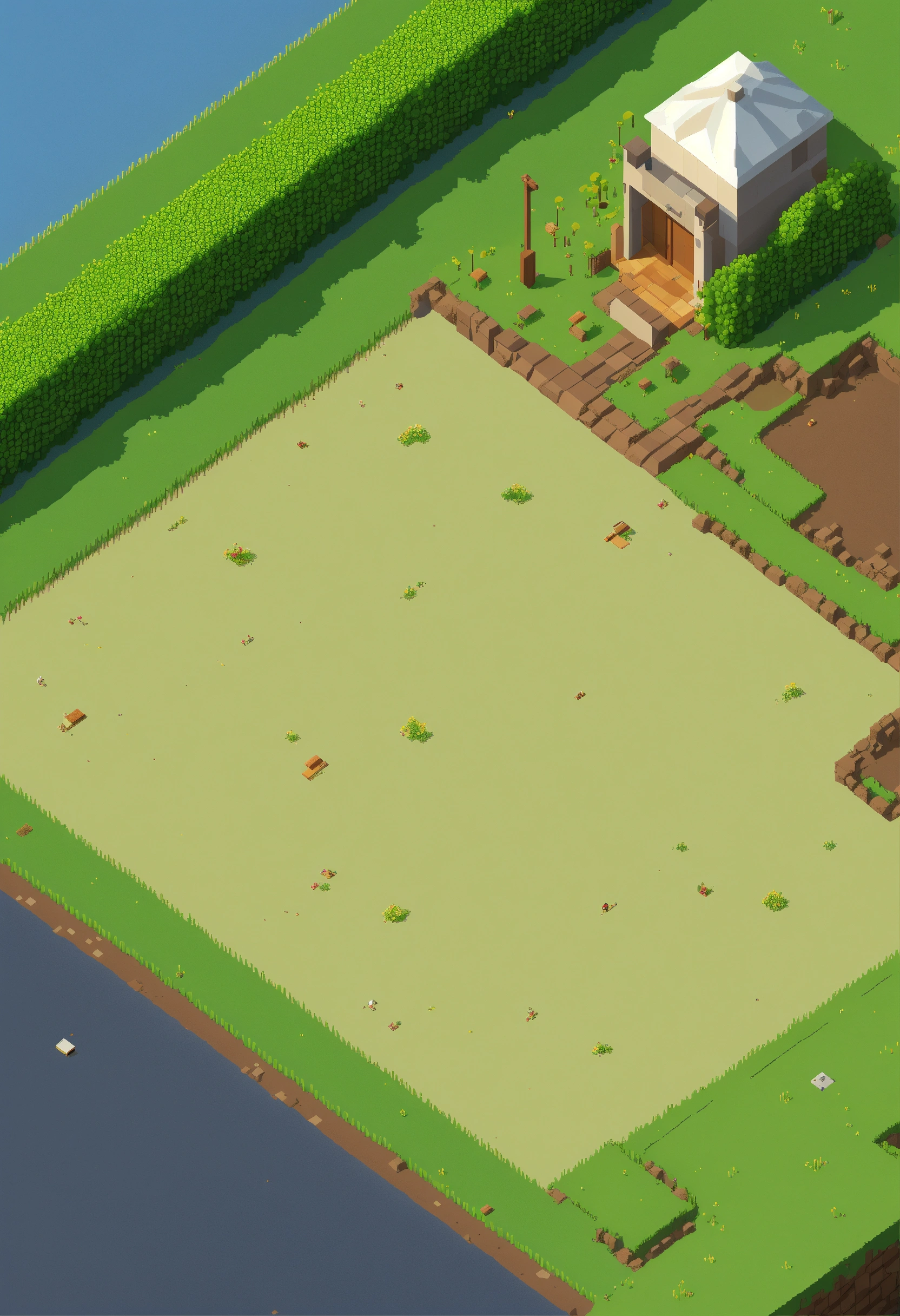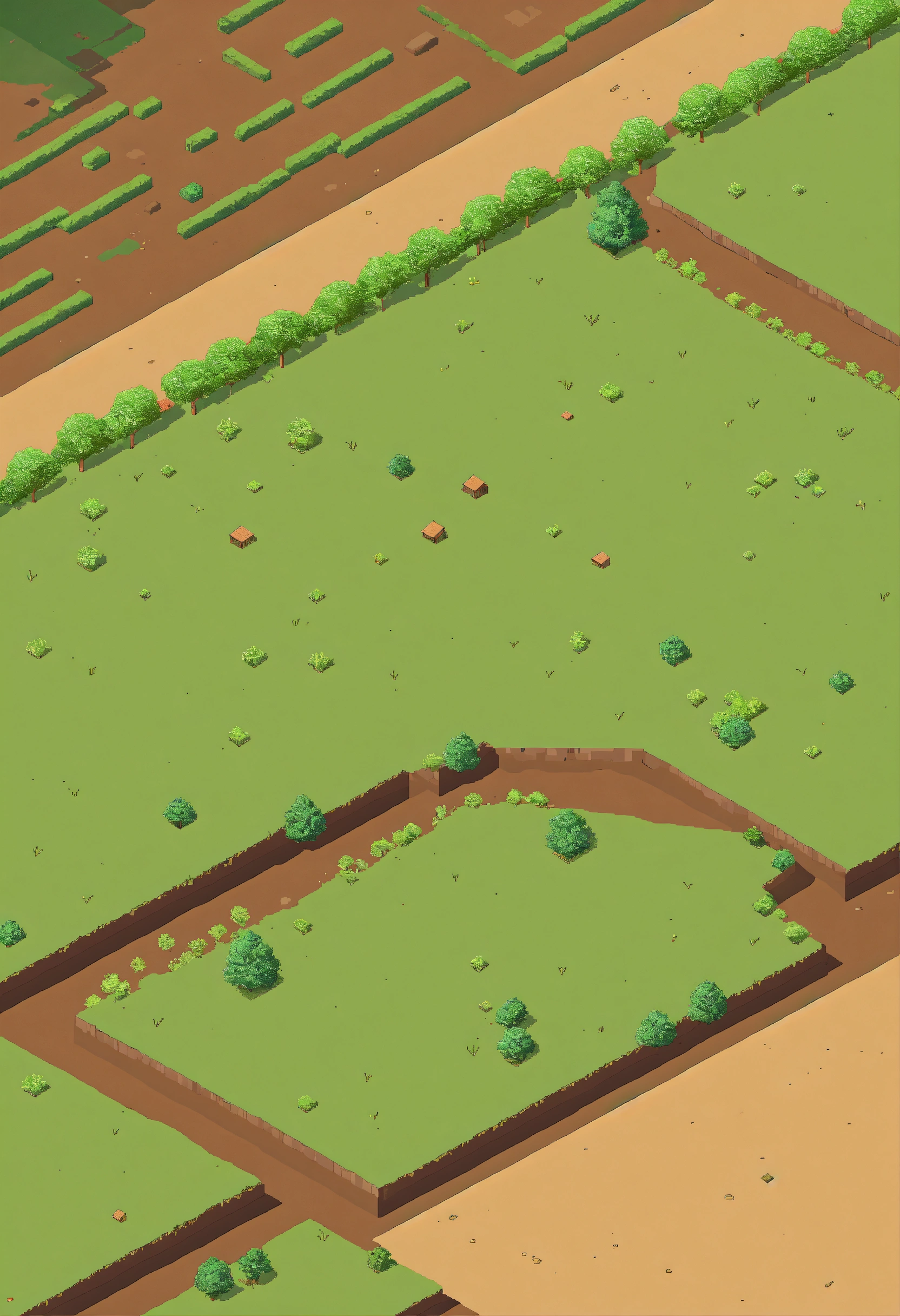 Simple pixel 2d flat empty plain dirt grassy landscape from above isometric