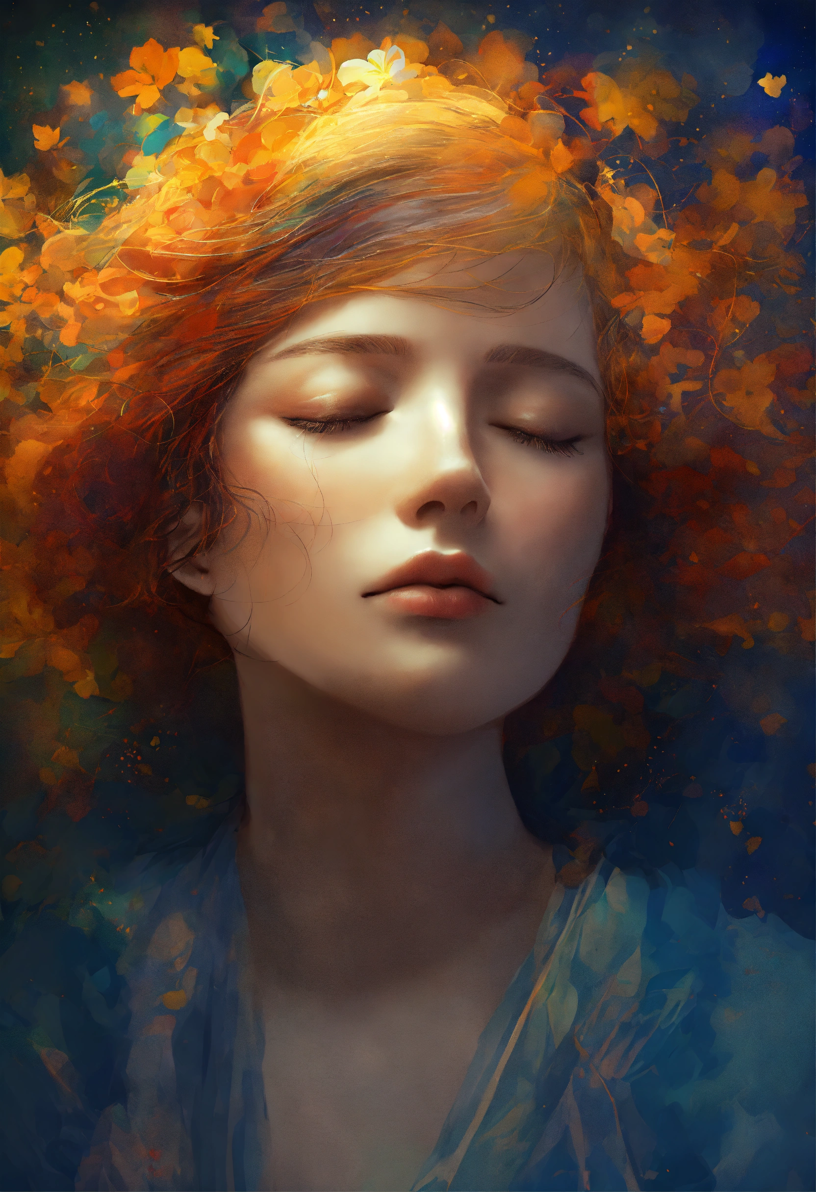 A closed eyes sleeping person digital art