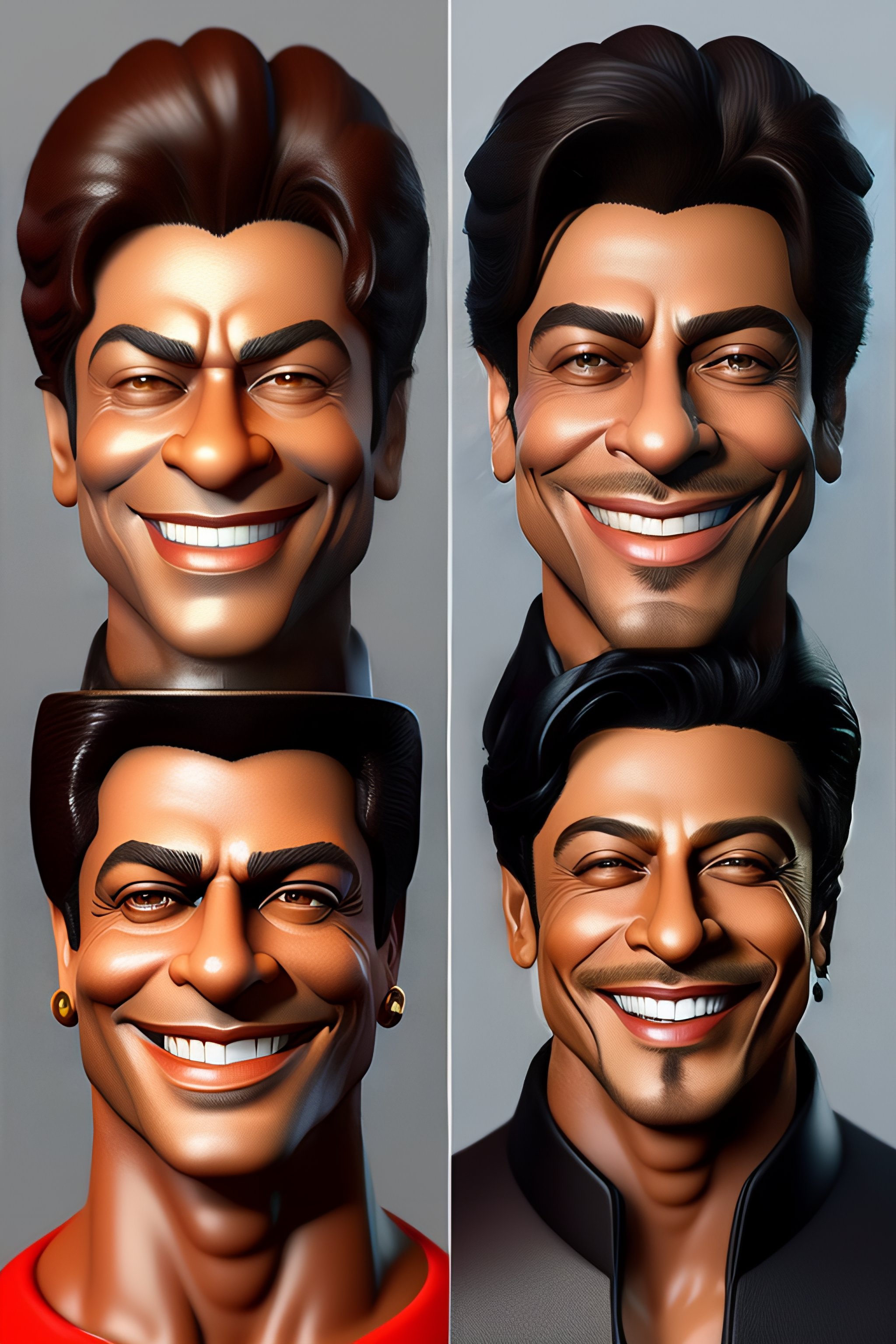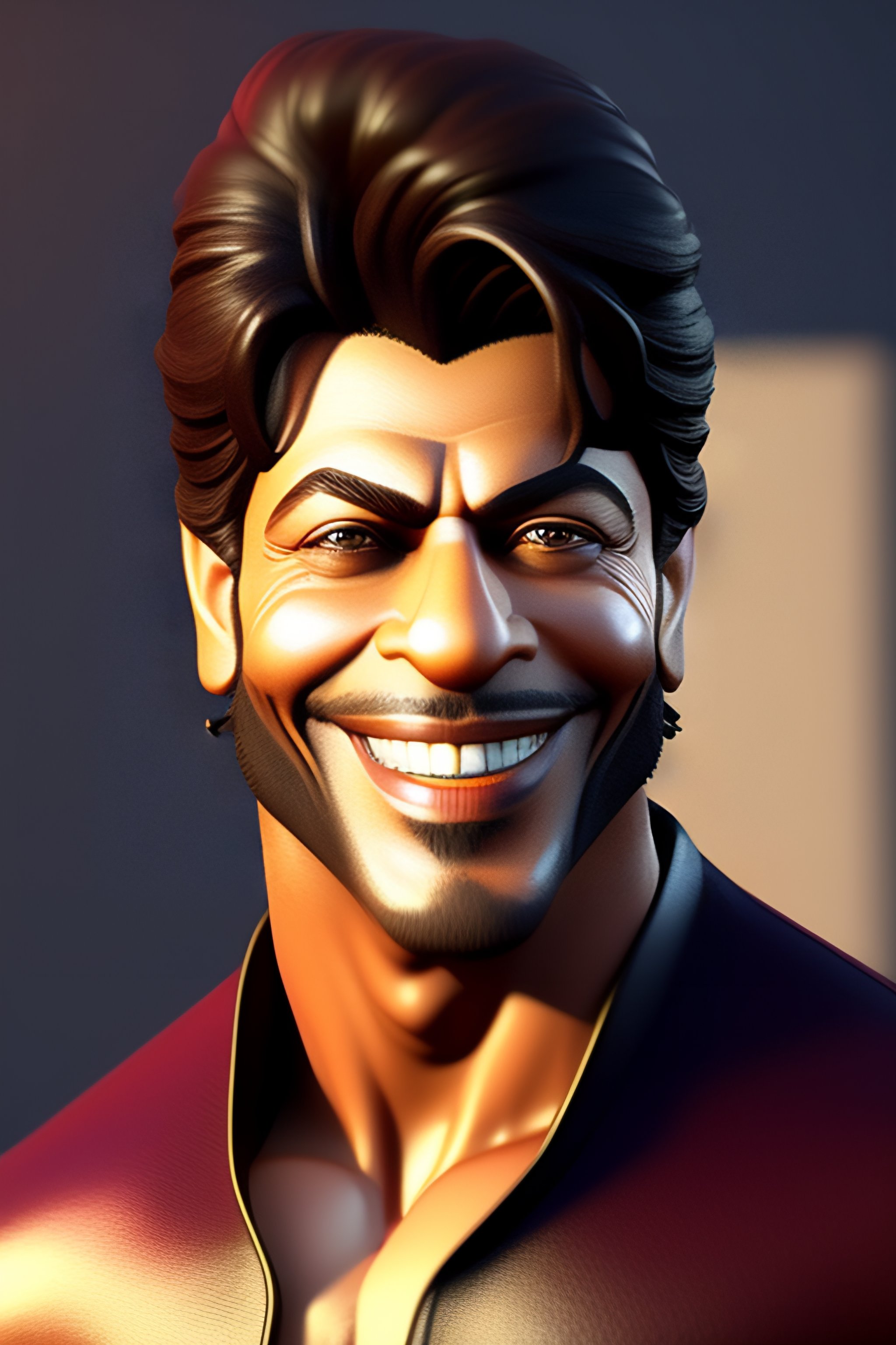 Caricature 3d render of shah rukh khan smiling, extremely exaggerated features, highly detailed, arnold render, zbrush artwork by gabriel soares, instagram, artstation