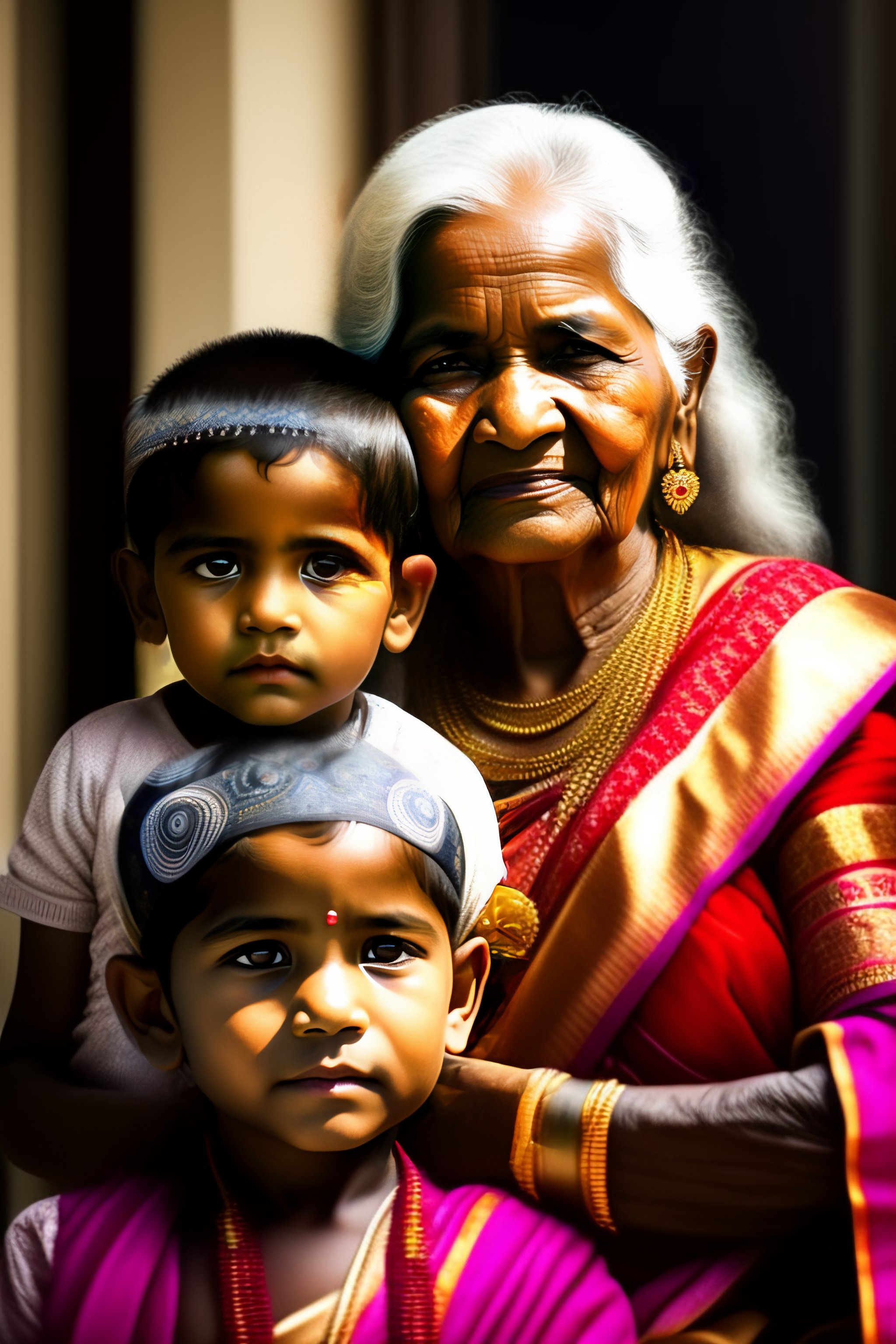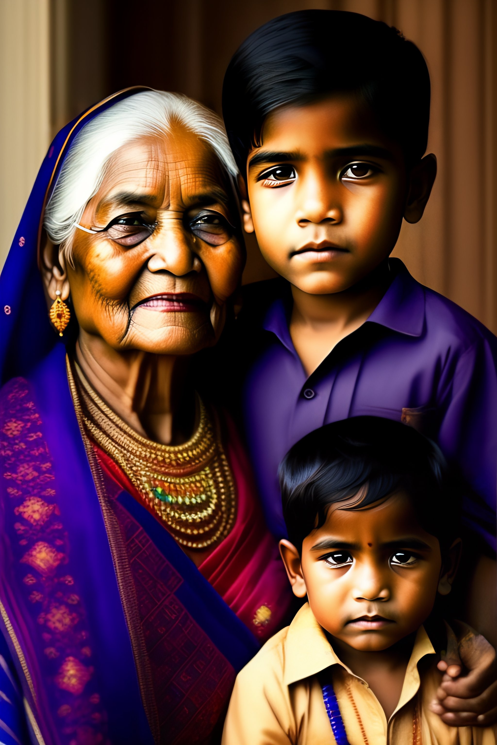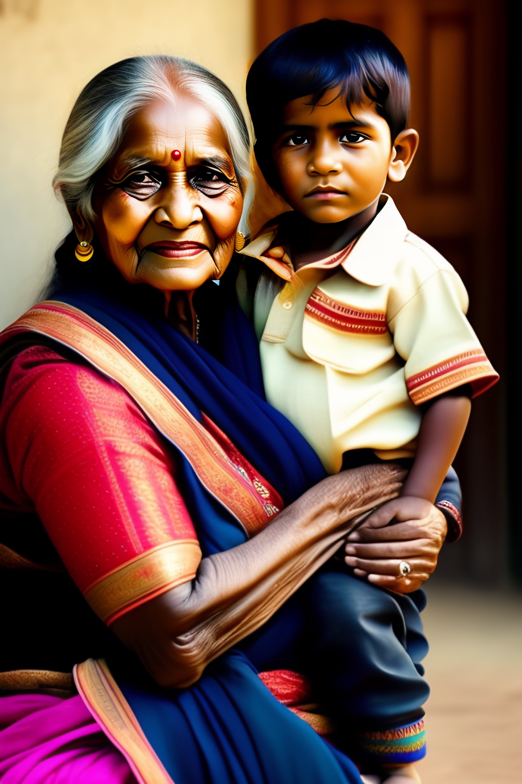 Indian grand mother and grand son