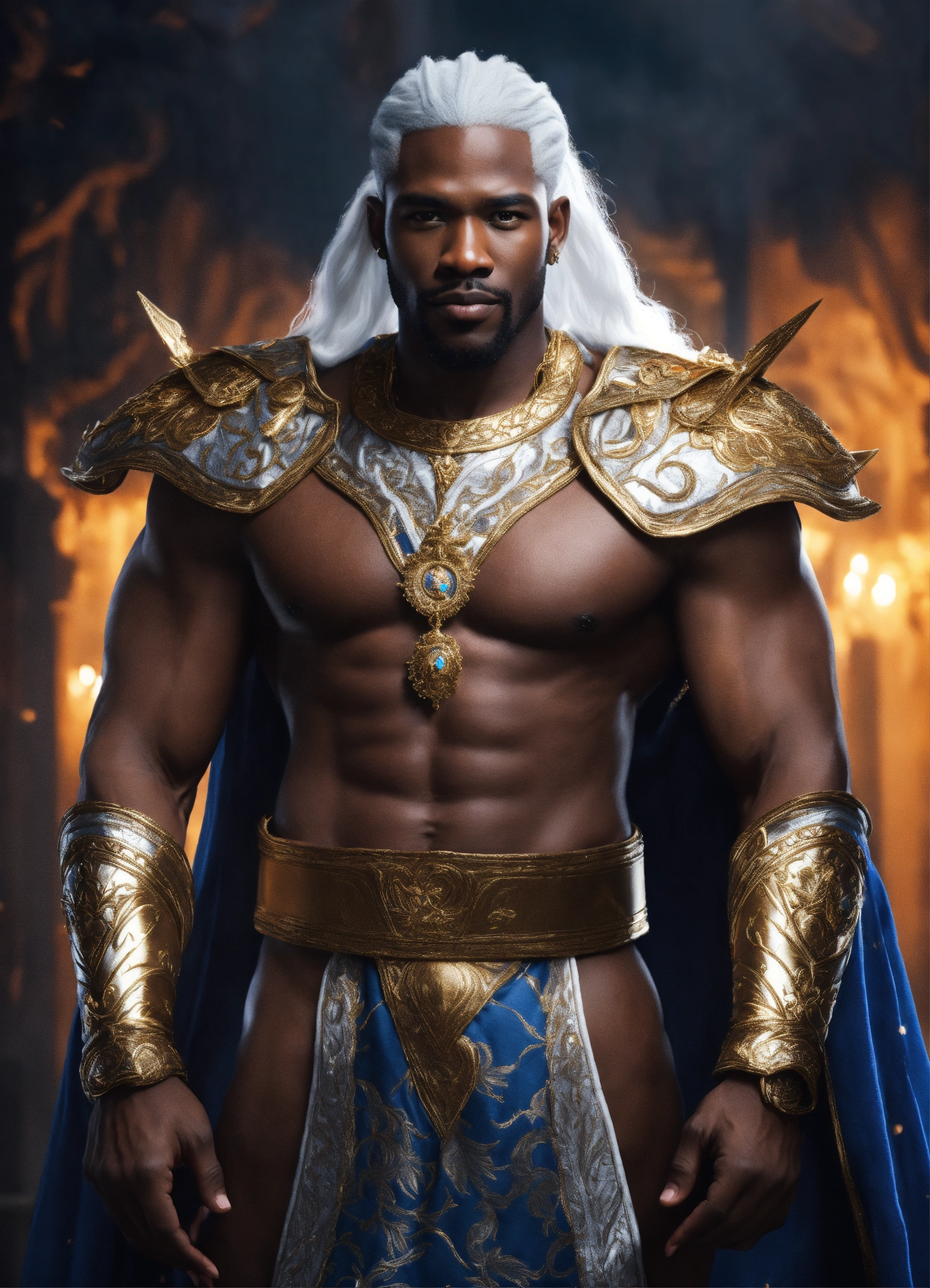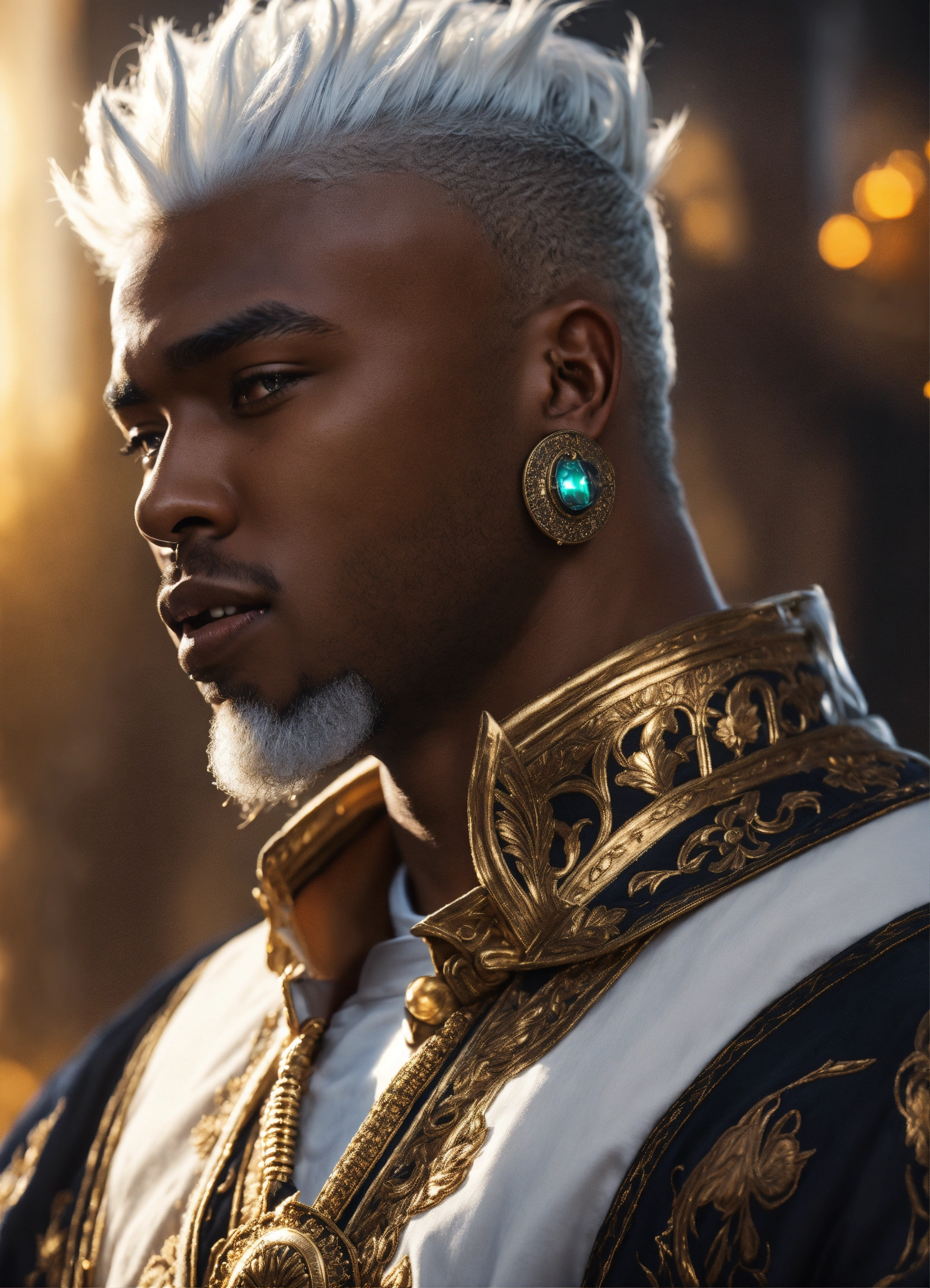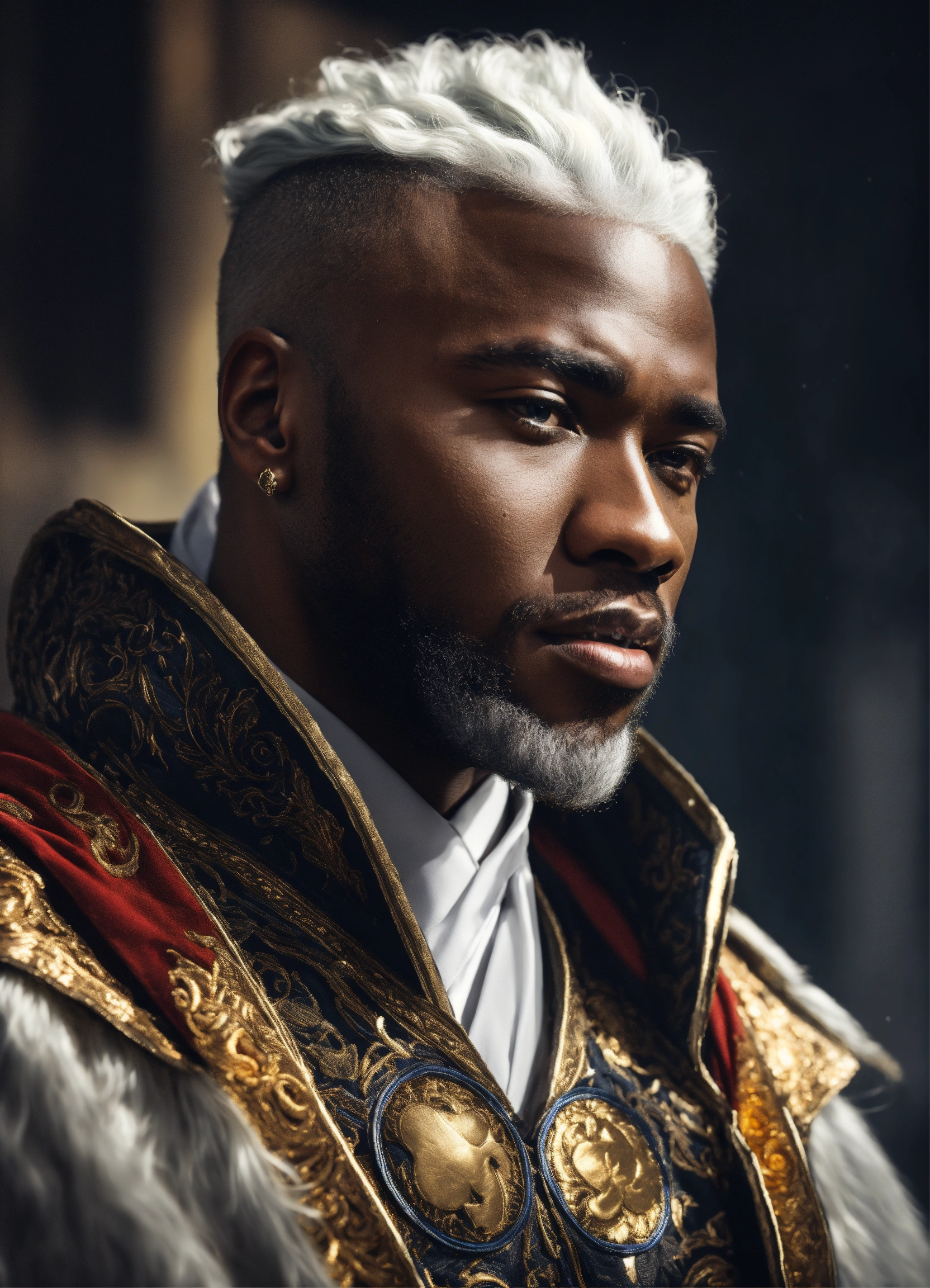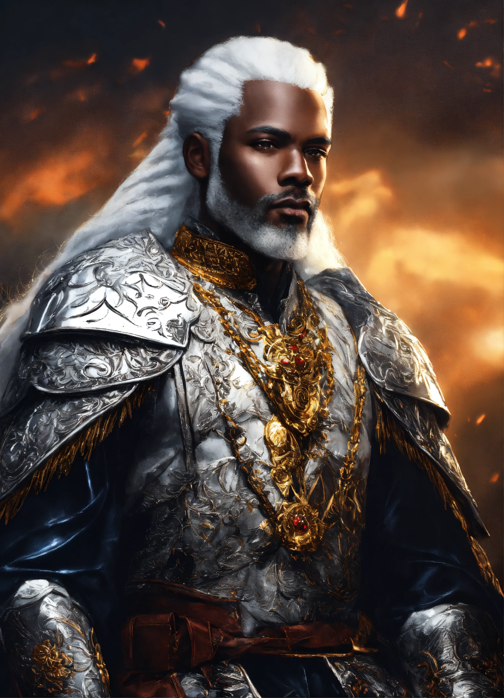 Black man white hair king fantasy 4k