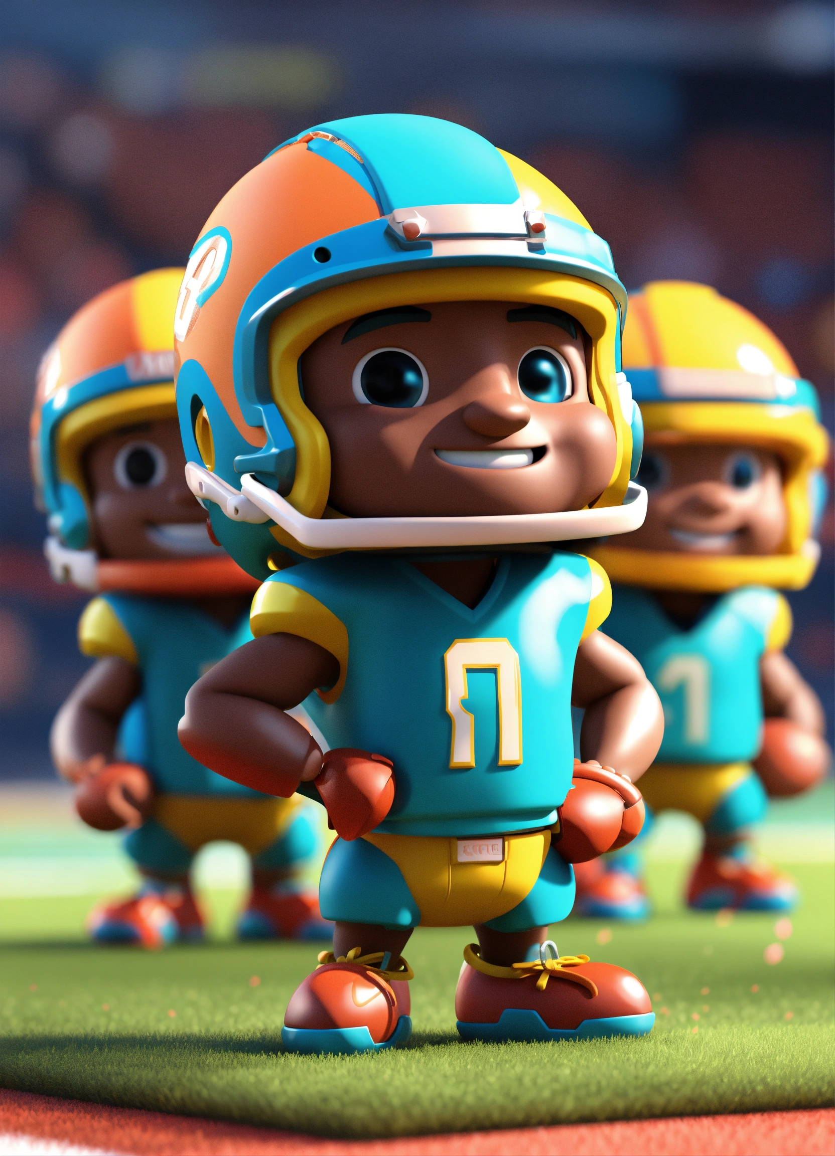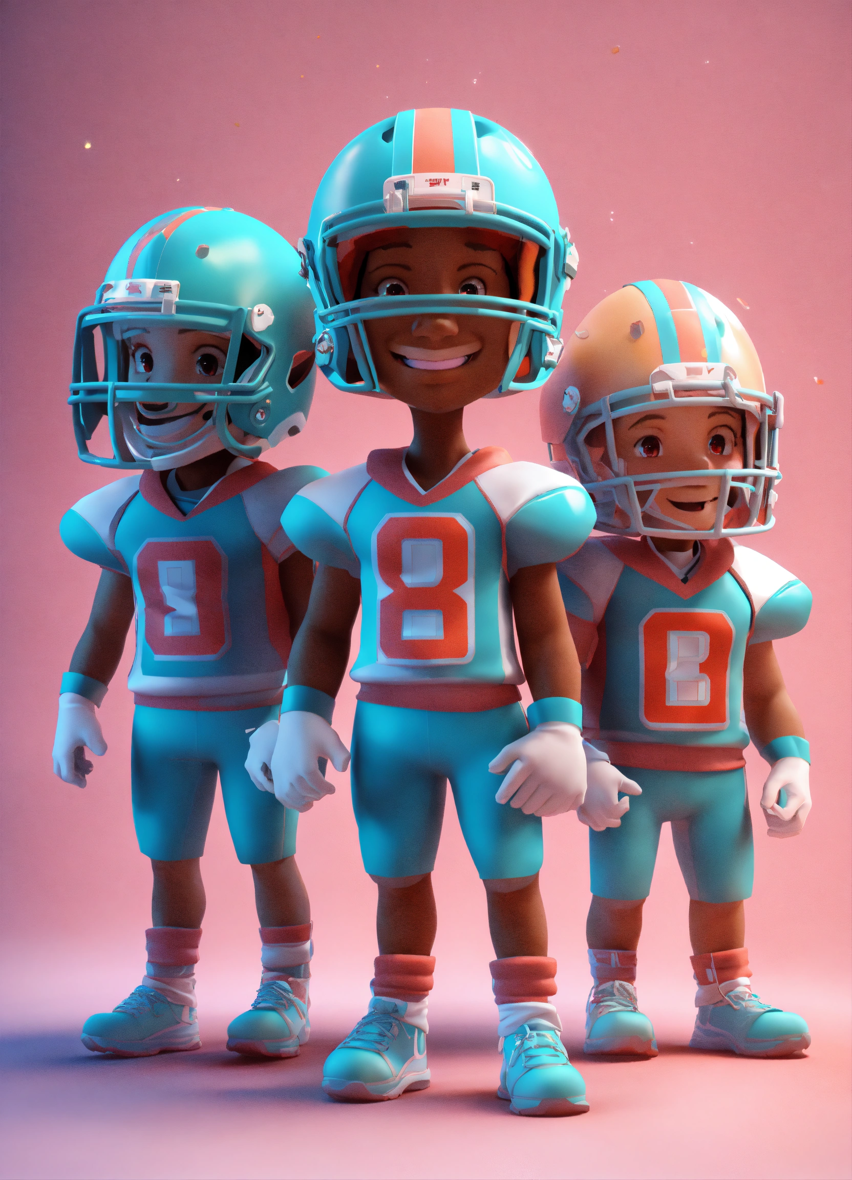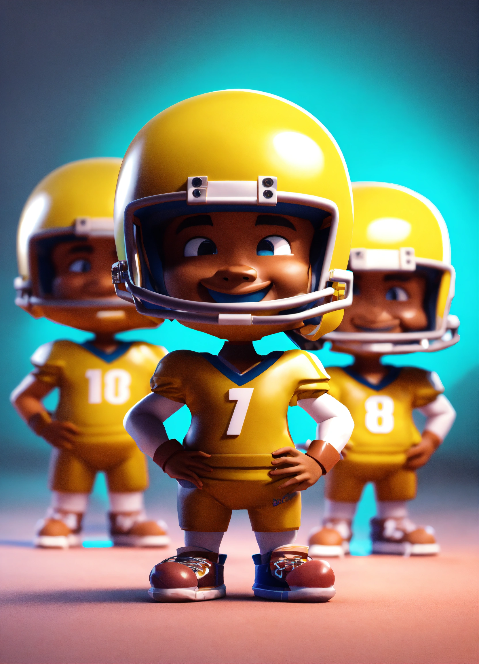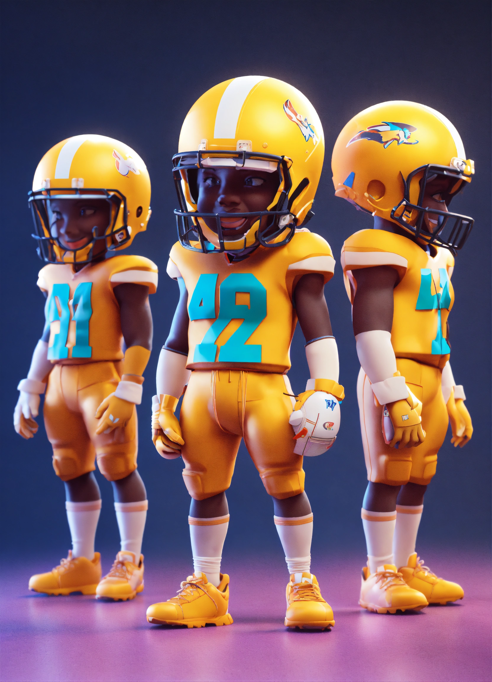 Group of 4 american football player, smiling, standing character, soft smooth lighting, soft pastel colors, skottie young, 3d blender render, polycount, modular constructivism, pop surrealism, physically based rendering, square image